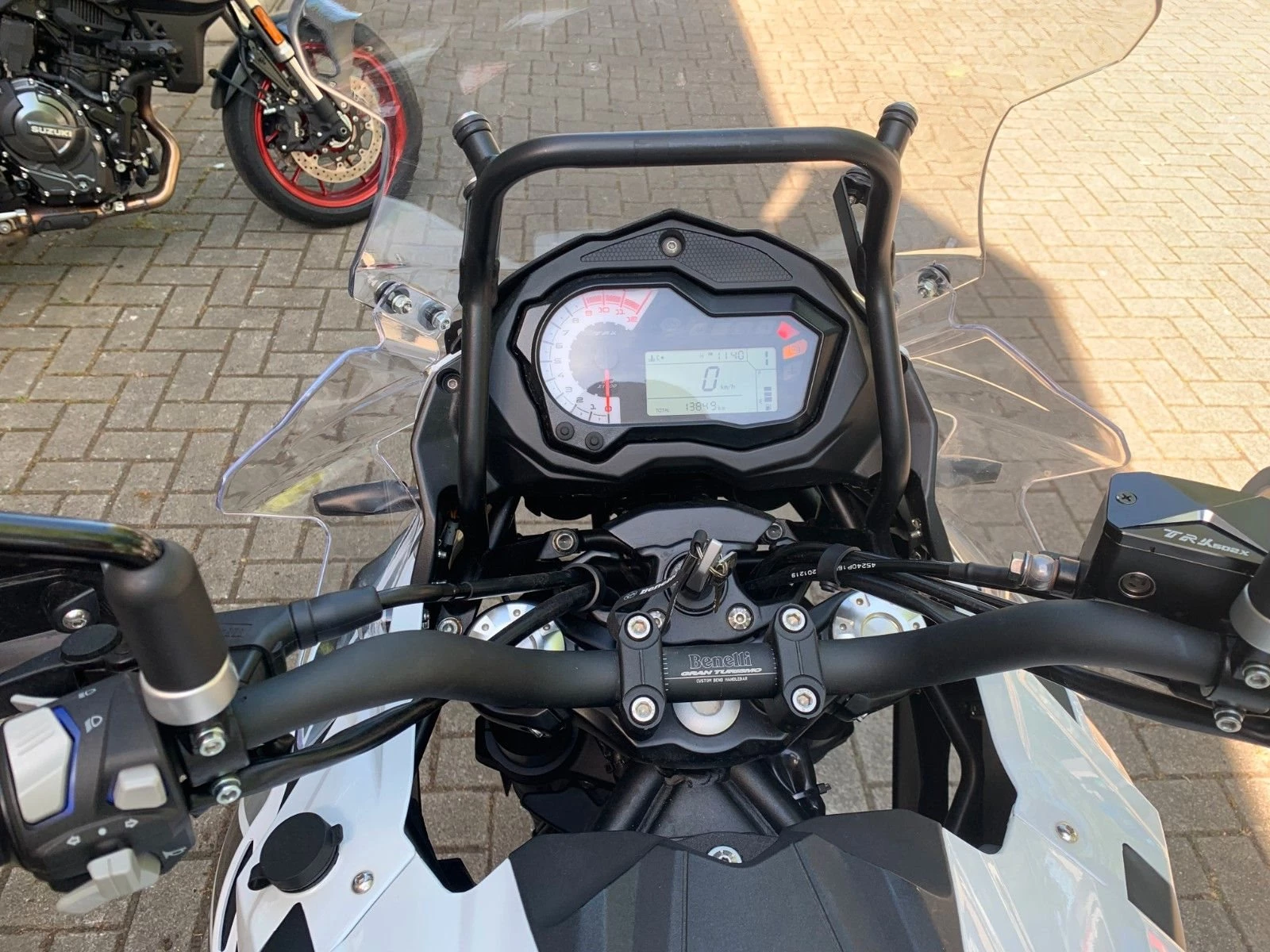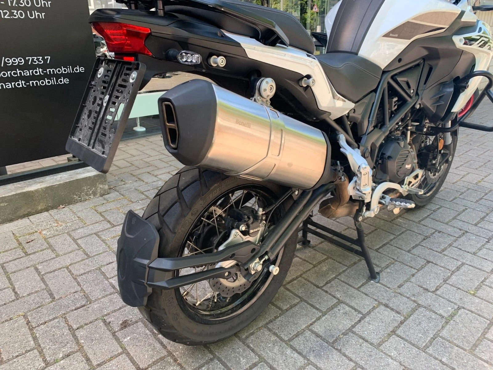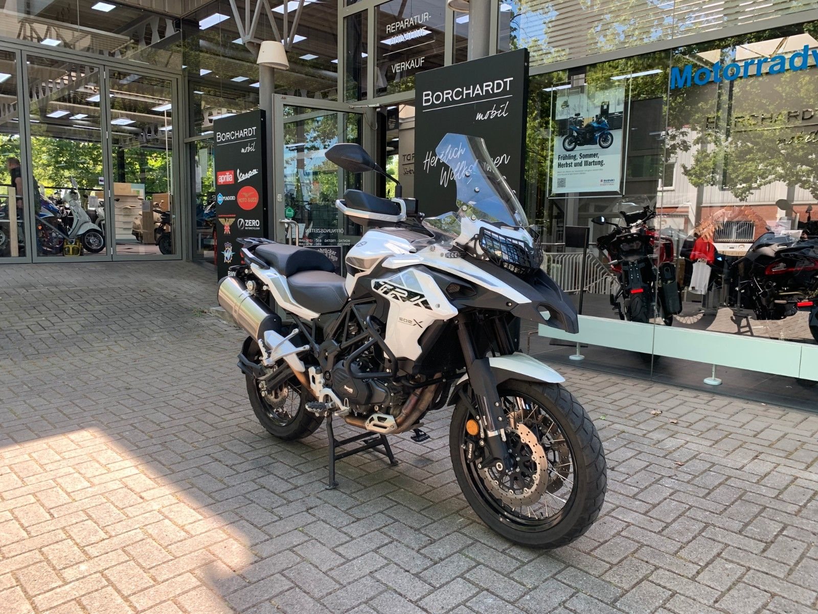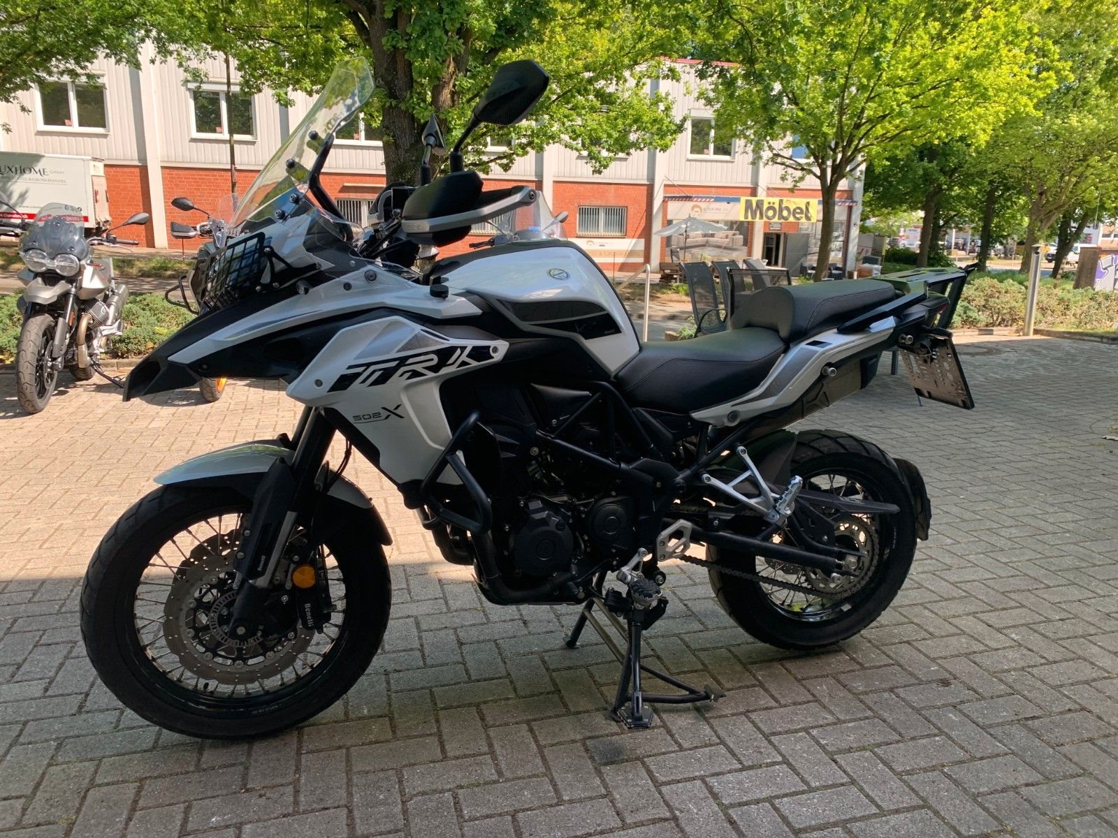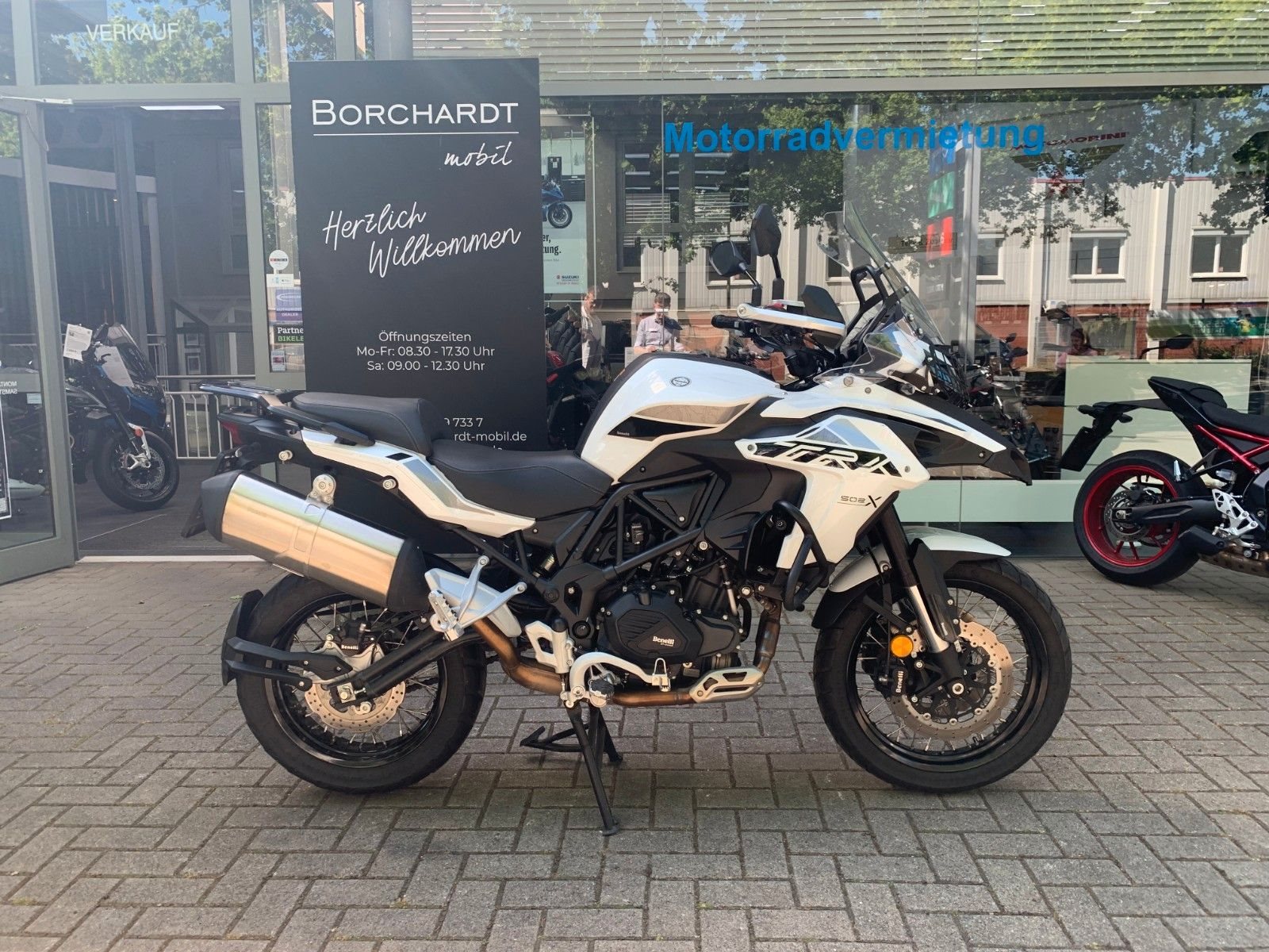 - Im November 2015 präsentierte Benelli auf der EICMA-Messe in Mailand zwei Motorräder, die Leoncino 500 und den Prototyp der TRK, einer Straßenenduro mit mittlerem Hubraum, das heißt einem 500-cm-Motor. Ein Jahr später, wiederum auf der EICMA 2016, wurde die endgültige Version des Motorrads mit dem Namen TRK 502 vorgestellt. Auf der EICMA 2017 feierte die geländegängigere Version unter der Bezeichnung TRK 502 X ihr Debüt, die Mitte 2018 auf den Markt kam. Im Jahr 2021 wurden beide Versionen leicht abgeändert, unter anderem mit einem Sekundärluftsystem, einem neuen Katalysator sowie einer neu abgestimmten Motorsteuerung.[ ...] Die Benelli TRK 502 wird von einem flüssigkeitsgekühlten Zweizylinder-Reihenmotor mit einem Hubraum von 499,6 cm angetrieben. Der Motor leistet etwa 47 PS (35 kW) bei 8500/min und bietet ein maximales Drehmoment von 46 Nm bei 6000/min. Vier Ventile pro Zylinder werden von zwei obenliegenden Nockenwellen (DOHC) gesteuert. Das Verdichtungsverhältnis beträgt 11,5 : 1. Der Motor erfüllt die Euro-5-Abgasnorm. Die Höchstgeschwindigkeit beträgt 165 km/h.[...]Die TRK 502 hat hydraulisch betätigte Scheibenbremsen. Vorn sind es zwei 320 mm große Bremsscheiben mit Vierkolben-Festsätteln, hinten ist es eine einzelne 260-mm-Bremsscheibe mit einem Einkolben-Schwimmsattel. [...]Das Fahrwerk der TRK 502 besteht aus einem Stahlrohrrahmen, vorderer Upside-Down-Teleskopgabel mit einem Durchmesser von 50 mm und einem Federweg von etwa 140 mm sowie einer hinteren Zweiarmschwinge mit Monoshock-Federbein, Federweg rund 135 mm. Der Tankinhalt der TRK 502 beträgt 20 Liter, der durchschnittliche Verbrauch 4,4 Liter je 100 km. [...]Die Kraft wird über ein Sechsganggetriebe und Kette an das Hinterrad übertragen. Die Elektrik der TRK 502 umfasst LED-Beleuchtung, ein LC-Display sowie ABS (Antiblockiersystem) zur Verbesserung der Sicherheit beim Bremsen.[...]Die Benelli TRK 502 war 2020, 2021 und 2022 das meistverkaufte Motorrad in Italien. (Quelle: Wikipedia)