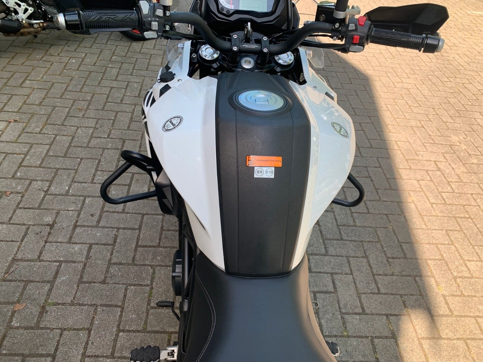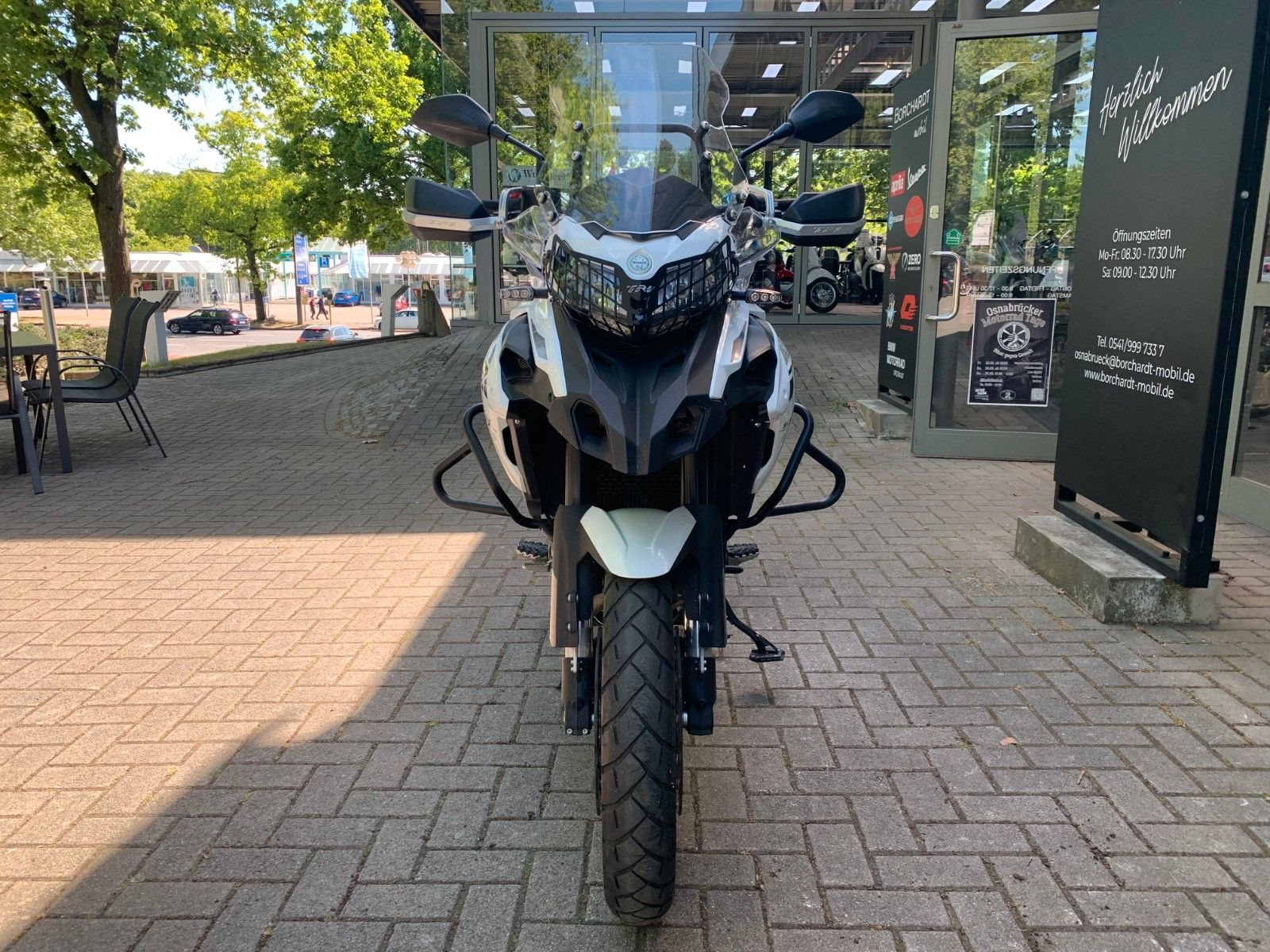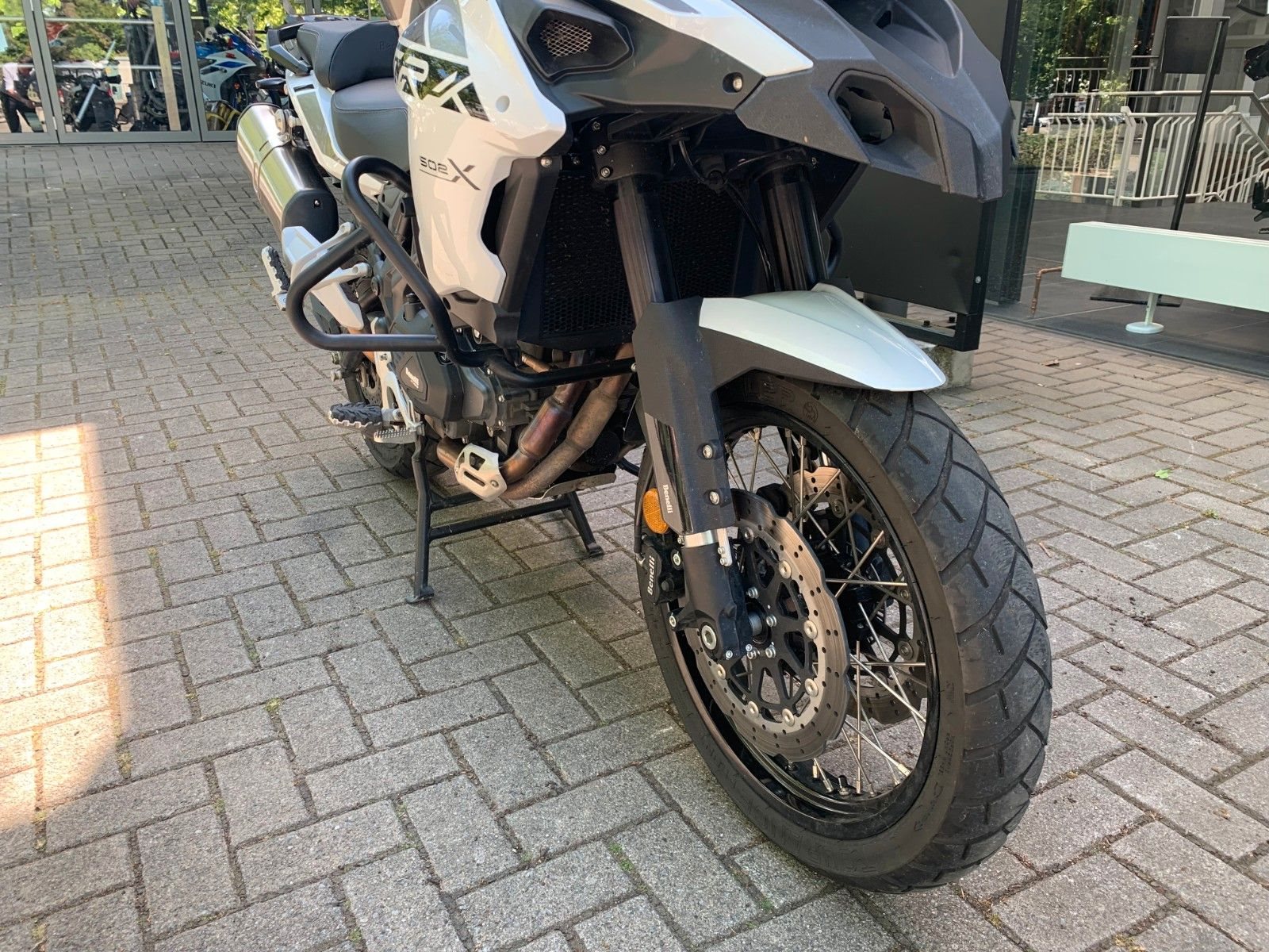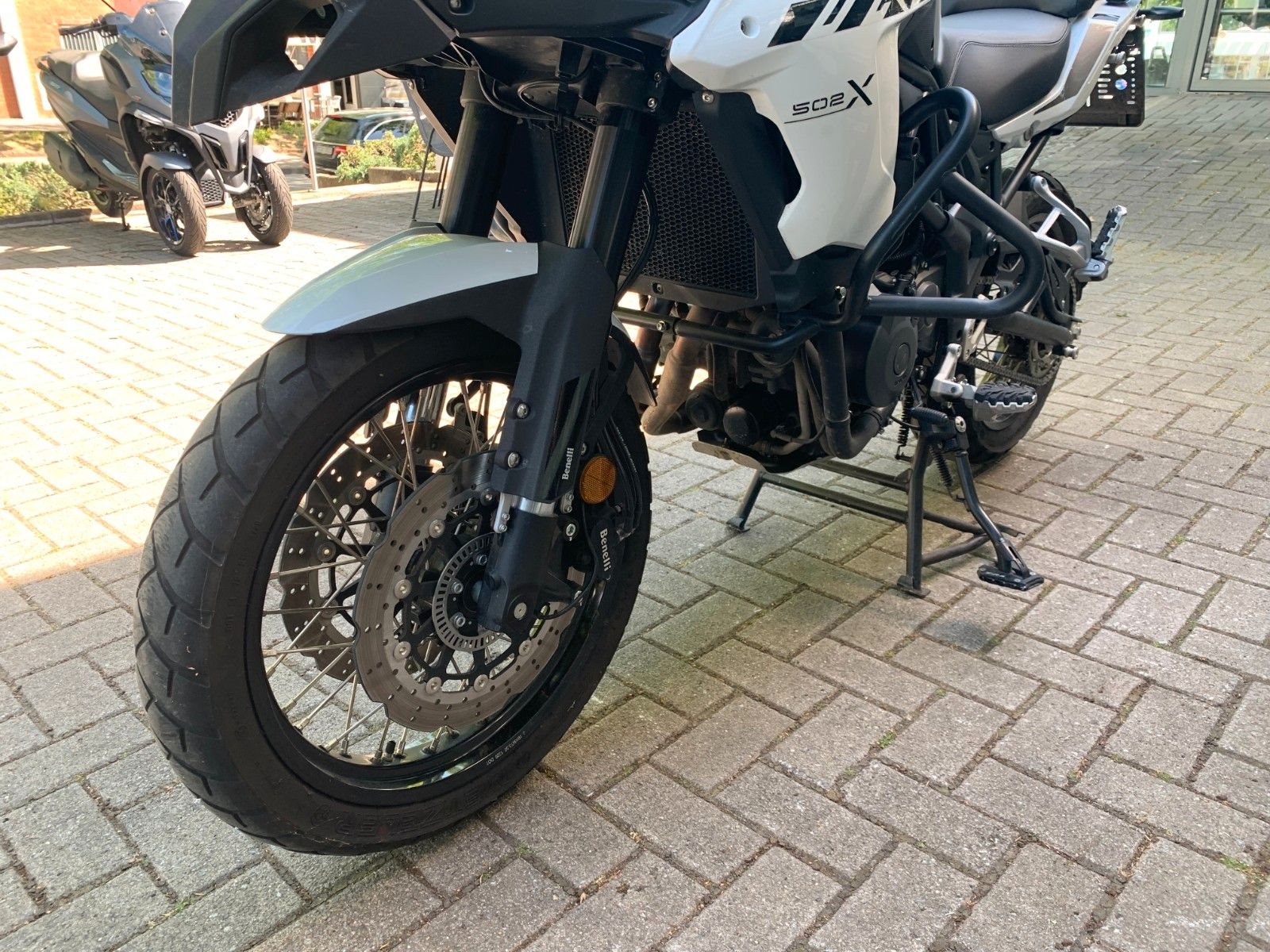 - Im November 2015 präsentierte Benelli auf der EICMA-Messe in Mailand zwei Motorräder, die Leoncino 500 und den Prototyp der TRK, einer Straßenenduro mit mittlerem Hubraum, das heißt einem 500-cm-Motor. Ein Jahr später, wiederum auf der EICMA 2016, wurde die endgültige Version des Motorrads mit dem Namen TRK 502 vorgestellt. Auf der EICMA 2017 feierte die geländegängigere Version unter der Bezeichnung TRK 502 X ihr Debüt, die Mitte 2018 auf den Markt kam. Im Jahr 2021 wurden beide Versionen leicht abgeändert, unter anderem mit einem Sekundärluftsystem, einem neuen Katalysator sowie einer neu abgestimmten Motorsteuerung.[ ...] Die Benelli TRK 502 wird von einem flüssigkeitsgekühlten Zweizylinder-Reihenmotor mit einem Hubraum von 499,6 cm angetrieben. Der Motor leistet etwa 47 PS (35 kW) bei 8500/min und bietet ein maximales Drehmoment von 46 Nm bei 6000/min. Vier Ventile pro Zylinder werden von zwei obenliegenden Nockenwellen (DOHC) gesteuert. Das Verdichtungsverhältnis beträgt 11,5 : 1. Der Motor erfüllt die Euro-5-Abgasnorm. Die Höchstgeschwindigkeit beträgt 165 km/h.[...]Die TRK 502 hat hydraulisch betätigte Scheibenbremsen. Vorn sind es zwei 320 mm große Bremsscheiben mit Vierkolben-Festsätteln, hinten ist es eine einzelne 260-mm-Bremsscheibe mit einem Einkolben-Schwimmsattel. [...]Das Fahrwerk der TRK 502 besteht aus einem Stahlrohrrahmen, vorderer Upside-Down-Teleskopgabel mit einem Durchmesser von 50 mm und einem Federweg von etwa 140 mm sowie einer hinteren Zweiarmschwinge mit Monoshock-Federbein, Federweg rund 135 mm. Der Tankinhalt der TRK 502 beträgt 20 Liter, der durchschnittliche Verbrauch 4,4 Liter je 100 km. [...]Die Kraft wird über ein Sechsganggetriebe und Kette an das Hinterrad übertragen. Die Elektrik der TRK 502 umfasst LED-Beleuchtung, ein LC-Display sowie ABS (Antiblockiersystem) zur Verbesserung der Sicherheit beim Bremsen.[...]Die Benelli TRK 502 war 2020, 2021 und 2022 das meistverkaufte Motorrad in Italien. (Quelle: Wikipedia)