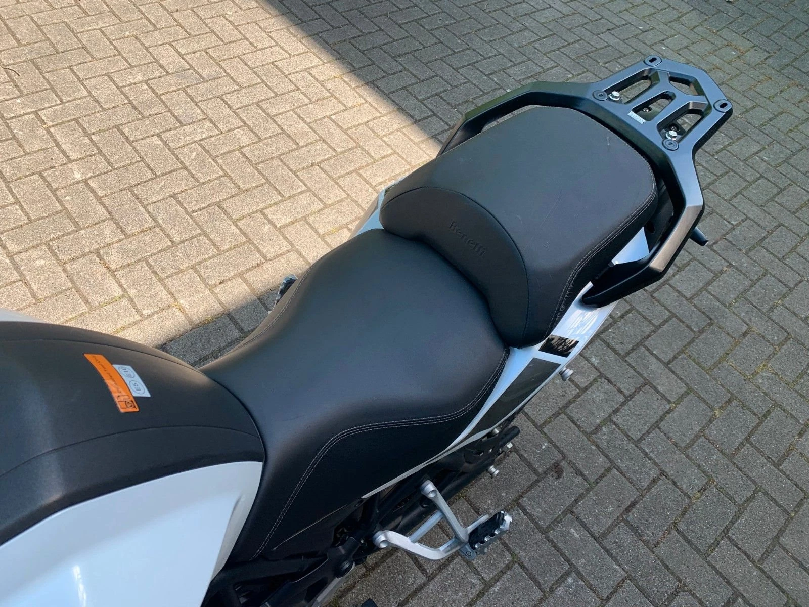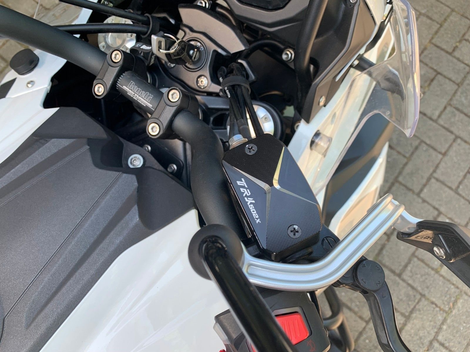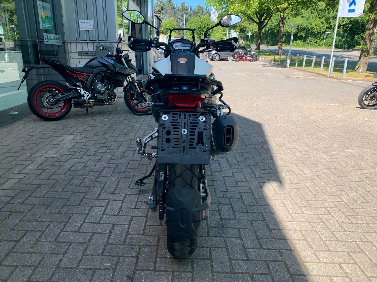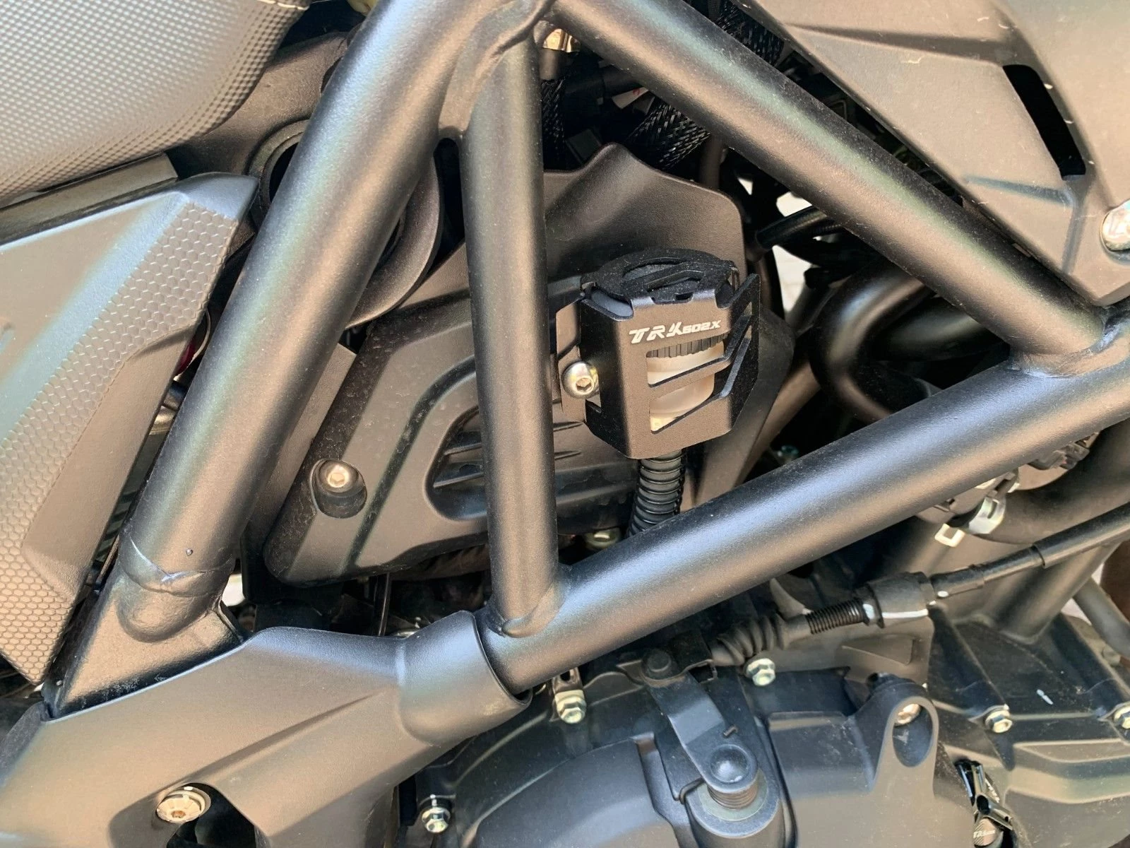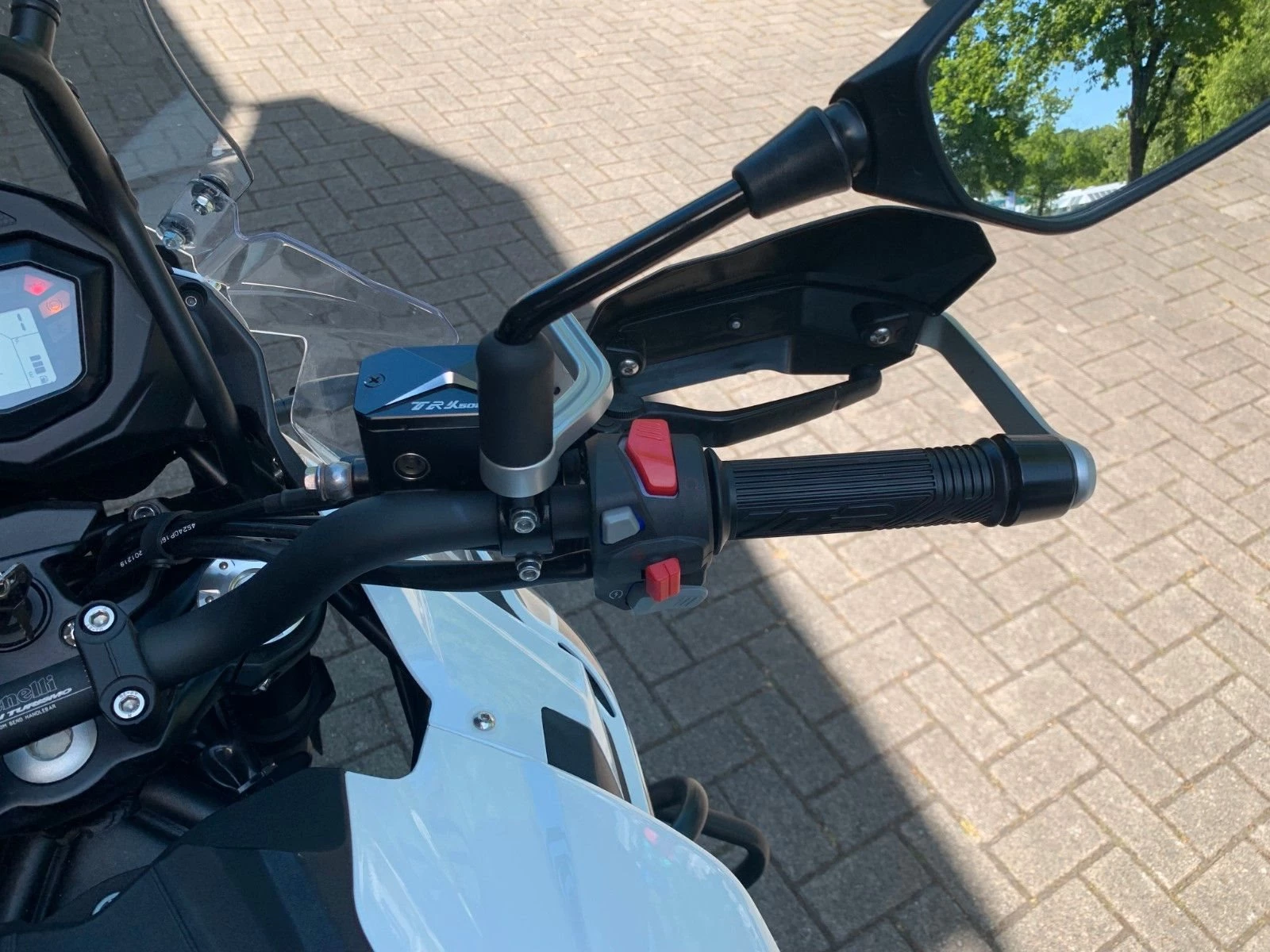 - Im November 2015 präsentierte Benelli auf der EICMA-Messe in Mailand zwei Motorräder, die Leoncino 500 und den Prototyp der TRK, einer Straßenenduro mit mittlerem Hubraum, das heißt einem 500-cm-Motor. Ein Jahr später, wiederum auf der EICMA 2016, wurde die endgültige Version des Motorrads mit dem Namen TRK 502 vorgestellt. Auf der EICMA 2017 feierte die geländegängigere Version unter der Bezeichnung TRK 502 X ihr Debüt, die Mitte 2018 auf den Markt kam. Im Jahr 2021 wurden beide Versionen leicht abgeändert, unter anderem mit einem Sekundärluftsystem, einem neuen Katalysator sowie einer neu abgestimmten Motorsteuerung.[ ...] Die Benelli TRK 502 wird von einem flüssigkeitsgekühlten Zweizylinder-Reihenmotor mit einem Hubraum von 499,6 cm angetrieben. Der Motor leistet etwa 47 PS (35 kW) bei 8500/min und bietet ein maximales Drehmoment von 46 Nm bei 6000/min. Vier Ventile pro Zylinder werden von zwei obenliegenden Nockenwellen (DOHC) gesteuert. Das Verdichtungsverhältnis beträgt 11,5 : 1. Der Motor erfüllt die Euro-5-Abgasnorm. Die Höchstgeschwindigkeit beträgt 165 km/h.[...]Die TRK 502 hat hydraulisch betätigte Scheibenbremsen. Vorn sind es zwei 320 mm große Bremsscheiben mit Vierkolben-Festsätteln, hinten ist es eine einzelne 260-mm-Bremsscheibe mit einem Einkolben-Schwimmsattel. [...]Das Fahrwerk der TRK 502 besteht aus einem Stahlrohrrahmen, vorderer Upside-Down-Teleskopgabel mit einem Durchmesser von 50 mm und einem Federweg von etwa 140 mm sowie einer hinteren Zweiarmschwinge mit Monoshock-Federbein, Federweg rund 135 mm. Der Tankinhalt der TRK 502 beträgt 20 Liter, der durchschnittliche Verbrauch 4,4 Liter je 100 km. [...]Die Kraft wird über ein Sechsganggetriebe und Kette an das Hinterrad übertragen. Die Elektrik der TRK 502 umfasst LED-Beleuchtung, ein LC-Display sowie ABS (Antiblockiersystem) zur Verbesserung der Sicherheit beim Bremsen.[...]Die Benelli TRK 502 war 2020, 2021 und 2022 das meistverkaufte Motorrad in Italien. (Quelle: Wikipedia)