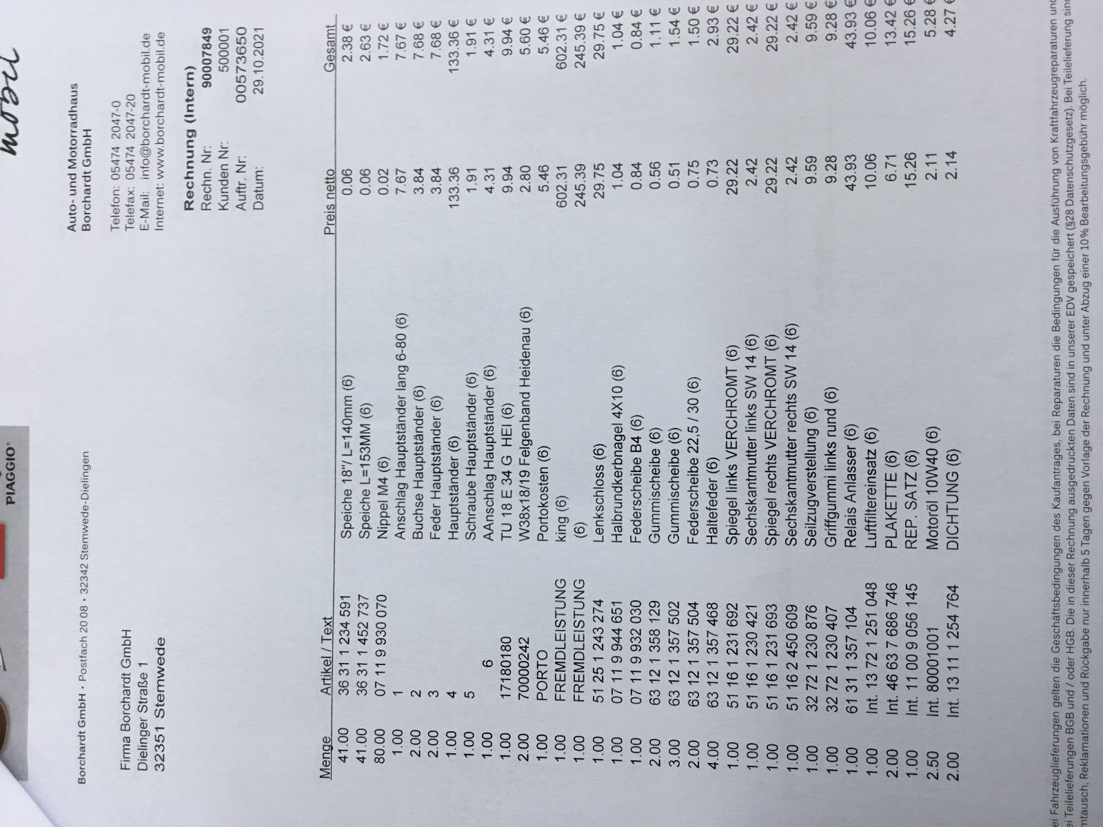 - Für 2-Räder haben wir einen bundesweiten Transportservice für ca. 260,-€.