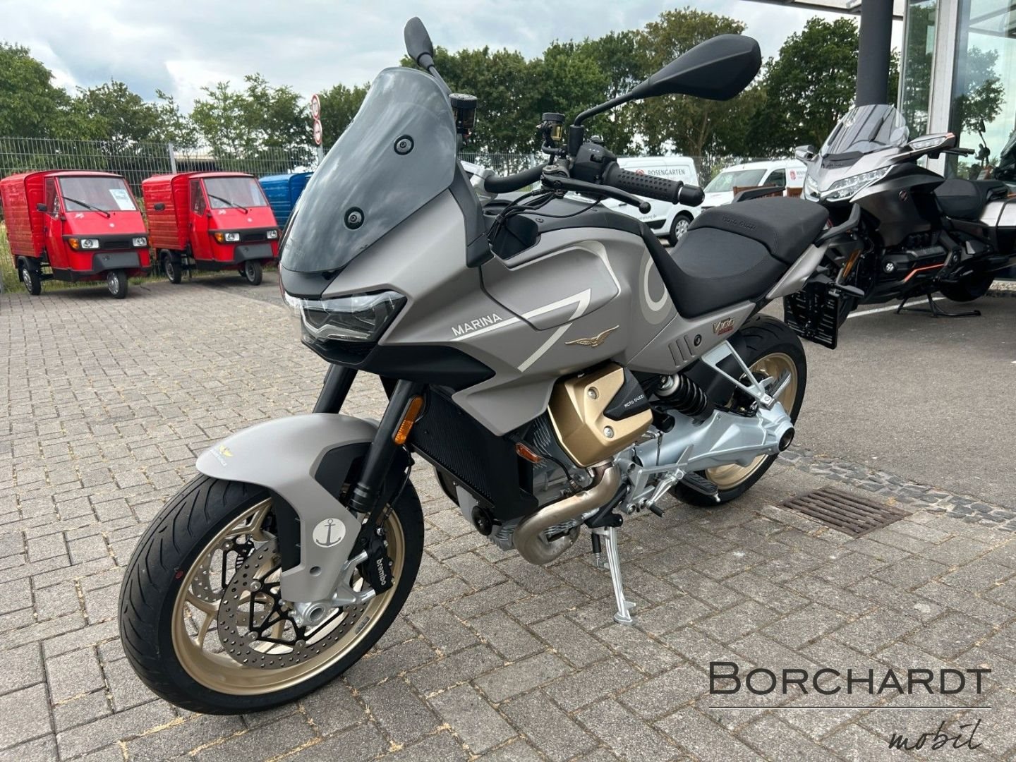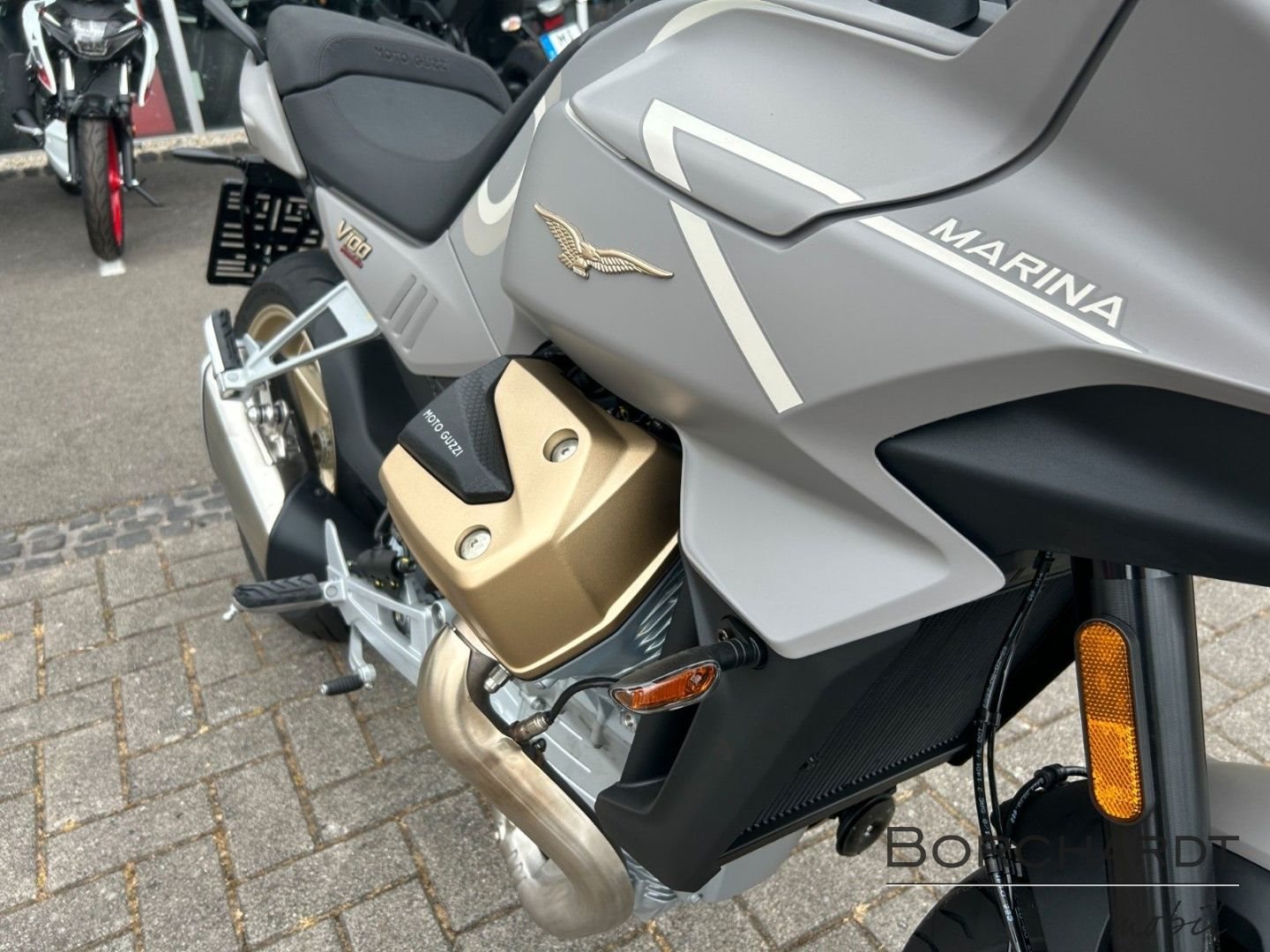 Dank ihrer innovativen adaptiven Aerodynamik, die die Position der Deflektoren an die Geschwindigkeit und den gewählten Fahrmodus anpasst, meistert die V100 Mandello Aviazione Navale jeden Fahrstil mit Bravour. Mit ihrem flüssigkeitsgekühlten längseingebauten 90°-V2-Motor, ihrem kompakten Design und ihrer außergewöhnlichen Vielseitigkeit eignet sich die V100 Mandello Aviazione Navale sowohl für lange Touren als auch für sportliche Fahrten.