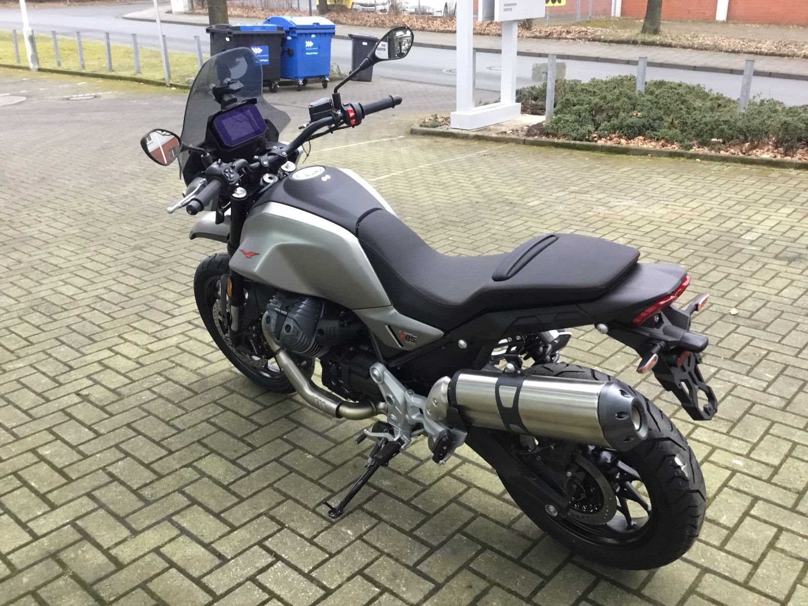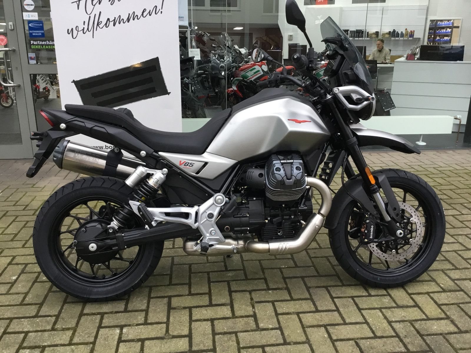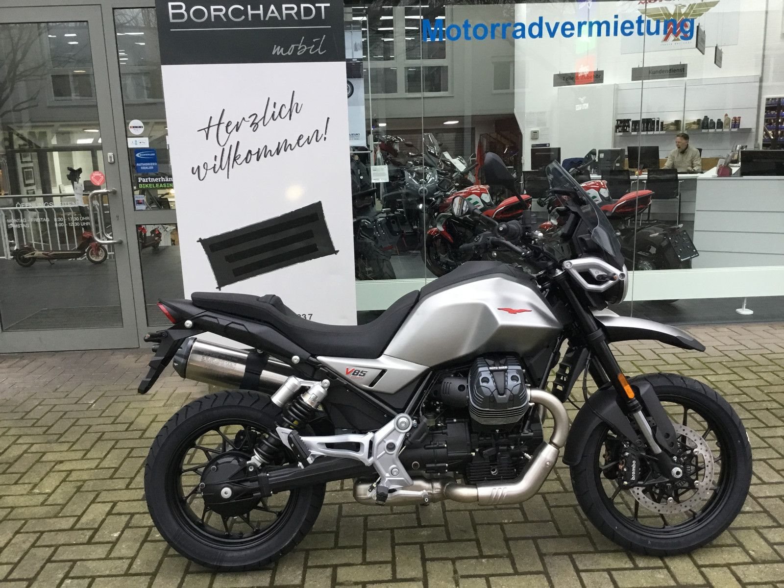 Die V85 vereint das Potenzial moderner Adventure-Bikes mit dem unverwechselbaren Stil, der für die in Mandello del Lario gebauten Fahrzeuge charakteristisch ist. Der luftgekühlte V2-Motor und das unverwechselbare Tagfahrlicht in Form eines Adlers repräsentieren die DNA von Moto Guzzi. Das Abenteuer geht in neuer Form weiter, aber die Authentizität der V85 bleibt erhalten.