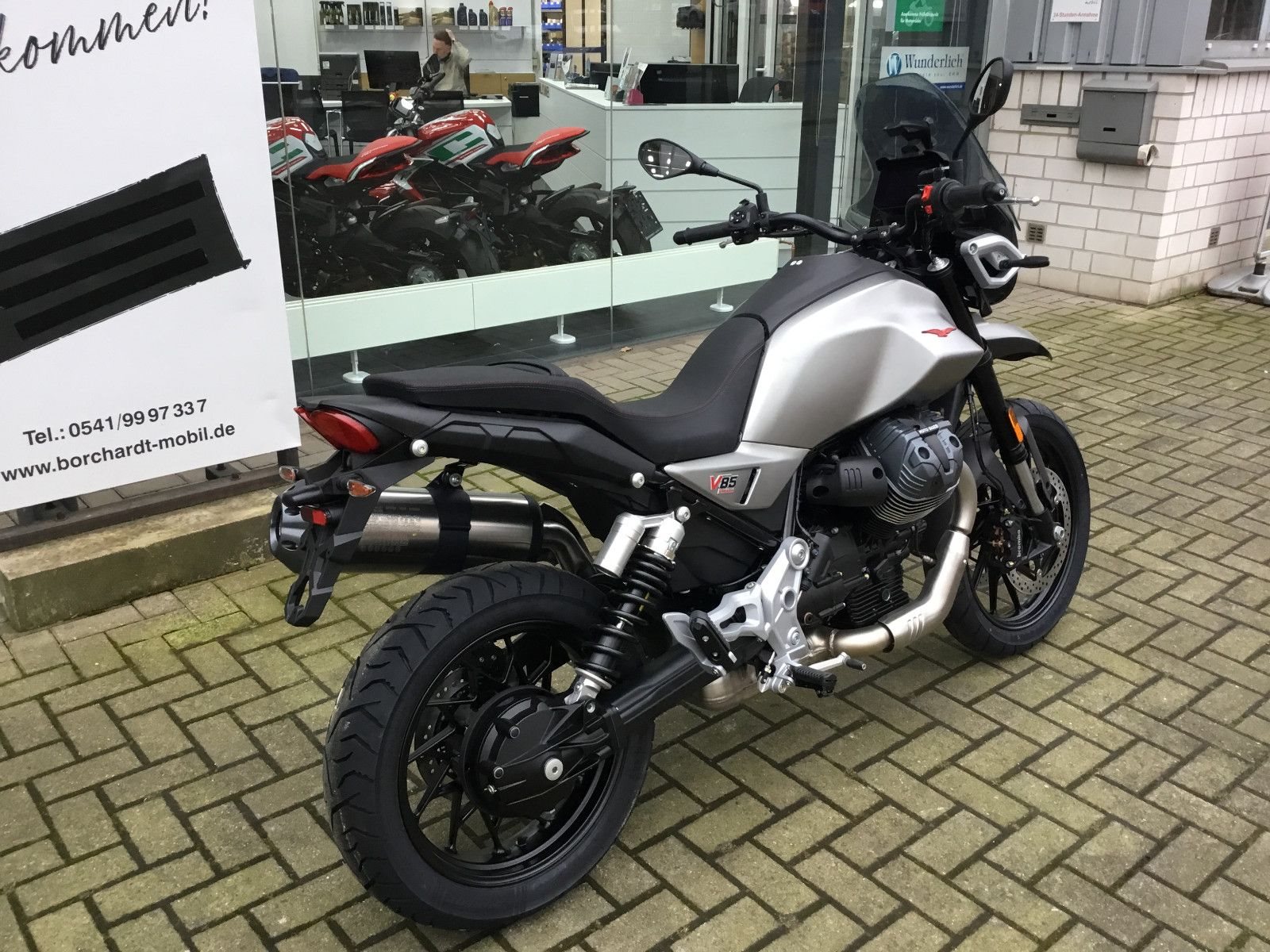 - Reifen Speichenräder mit 17" und 19" Tubeless-Reifen mit geländetauglichem Profil sorgen dafür, dass die V85 TT auf jedem Untergrund mächtig Spaß macht.