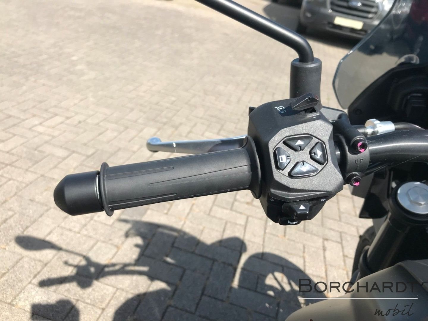 - High-Tech Cockpit Neben dem gut ablesbaren, benutzerfreundlichen 5-Zoll-TFT-Farbdisplay und Full-LED bietet die V85 TT vier Fahrmodi (Sport, Road, Rain und Offroad), eine 6-Achsen-Inertialplattform, Kurven-ABS und Traktionskontrolle. Und nicht zuletzt können Sie per Cruise Control eine Geschwindigkeit einstellen, die per Knopfdruck aktiviert und dann beibehalten wird, ohne dass Sie das Gas betät