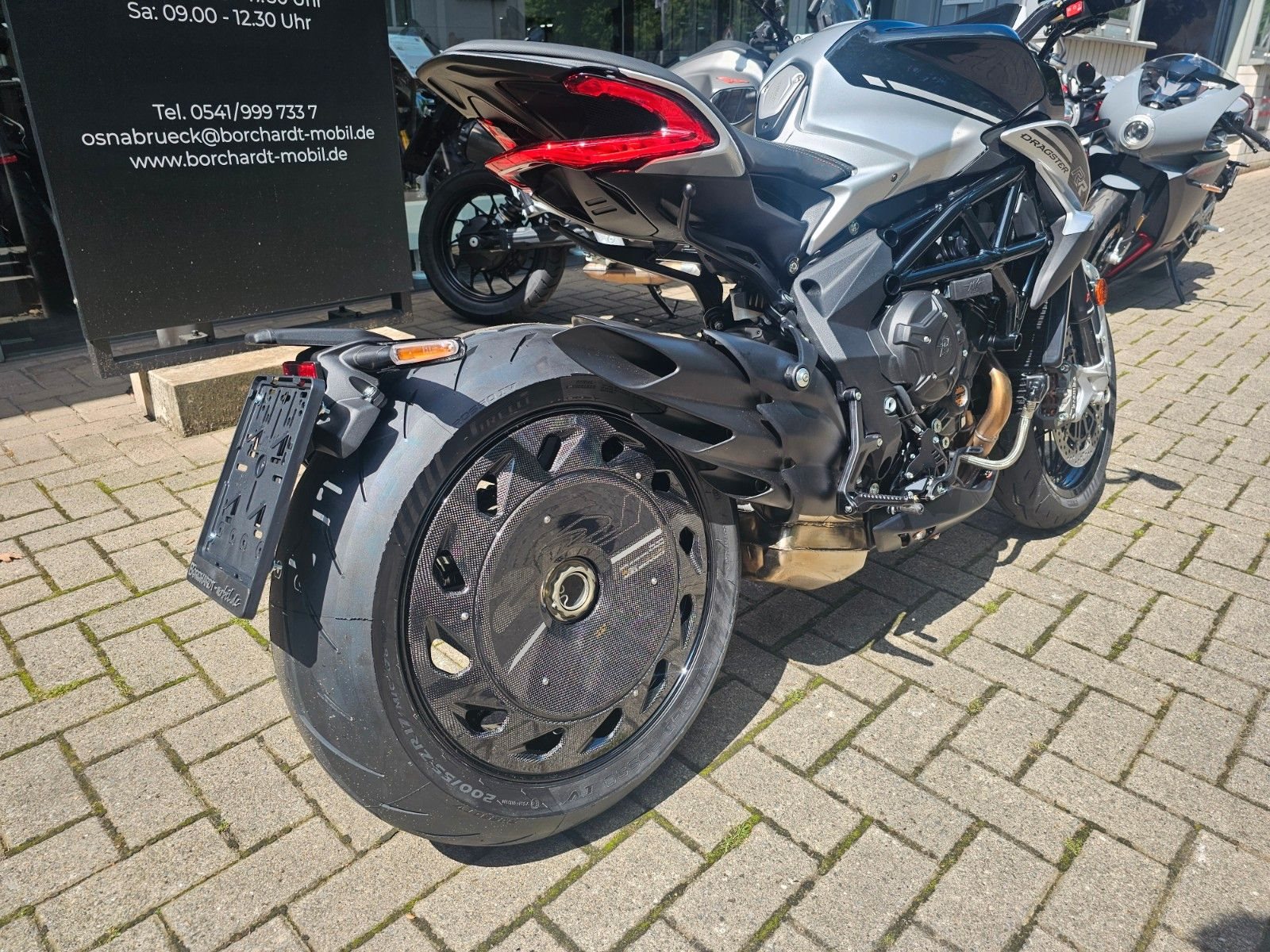 - REINER MV AGUSTA-SOUND Der 140 PS starke, Euro5+ homologierte Dreizylinder der Dragster RR SCS verschlägt einem den Atem dank seiner unmittelbaren und präzisen Reaktion auf den Gasgriff. Mit dem SCS-System bietet er eine außergewöhnliche Beschleunigung. Die vom Rennsport inspirierte gegenläufige Kurbelwelle wurde entwickelt, um die Trägheit bei Richtungswechseln zu verringern. Darüber hinaus verfügt er jetzt über eine neue 9-Scheiben-Antihopping-Kupplung mit Drehmomentunterstützung, die einen um 50 % leichteren Kupplungshebelzug im Vergleich zu früheren Versionen bietet.