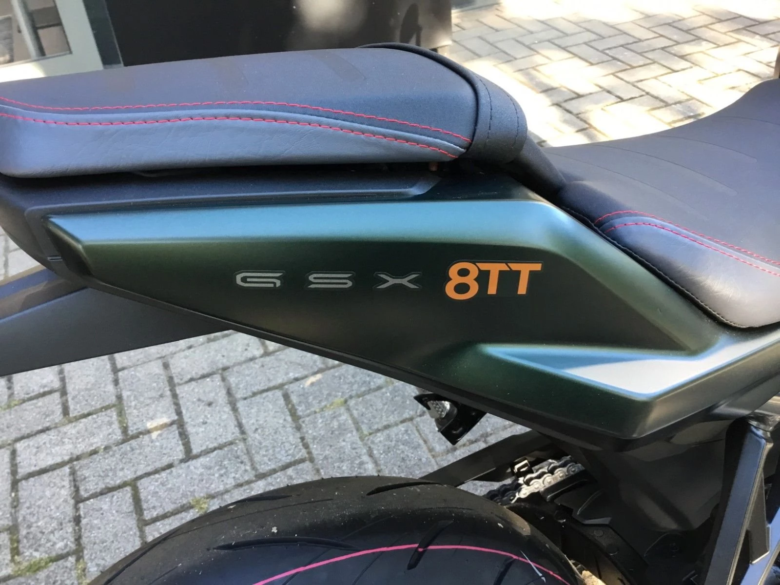 - Charmant, brillant, genau deinsSo stark im Look, dass man gerne schwach wird. Die GSX-8TT brilliert aber nicht nur optisch, sondern da, wo es wirklich darauf ankommt: mit dem top-getesteten Parallel-Twin-Motor, dem einfühlsamen Fahrwerk mit KYB-Gabel und Leichtmetall-Schwinge, mit allem, was dir Spaß macht.
