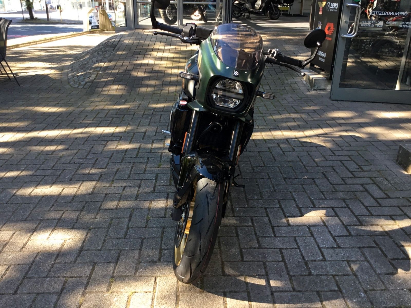- Mono-Rundscheinwerfer, inspiriert vom flachen Scheinwerferdesign früherer Suzuki Modelle, LED-Blinker, LED-Positionslichter und LED-Rücklicht