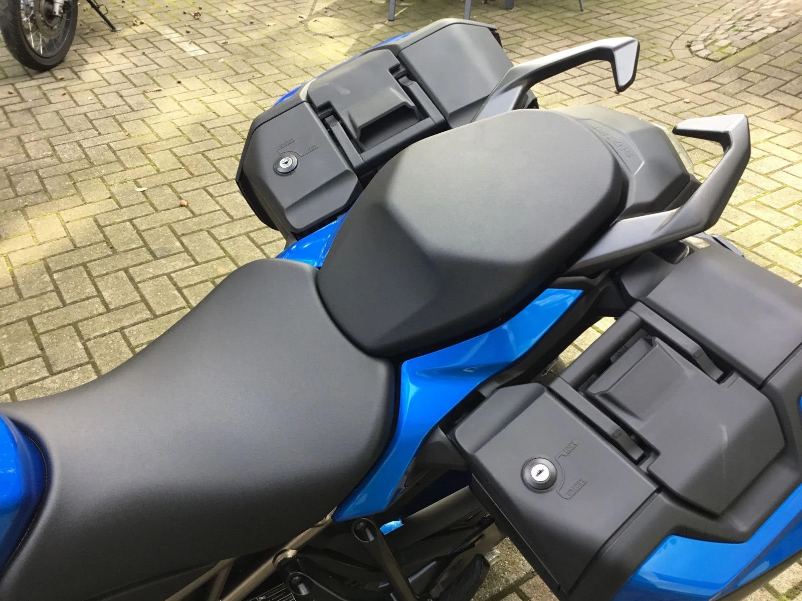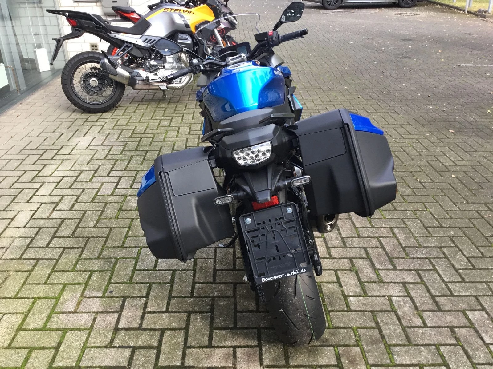 Auch ein Hingucker: das harmonisch in die Designlinie integrierte Koffersystem. Absolut wasserdicht und mit jeweils 36 Litern Fassungsvermögen packt es Eure Integralhelme und mehr locker weg. Per Schnellverschluss kannst Du es für einen Zwischensprint auch demontieren.
