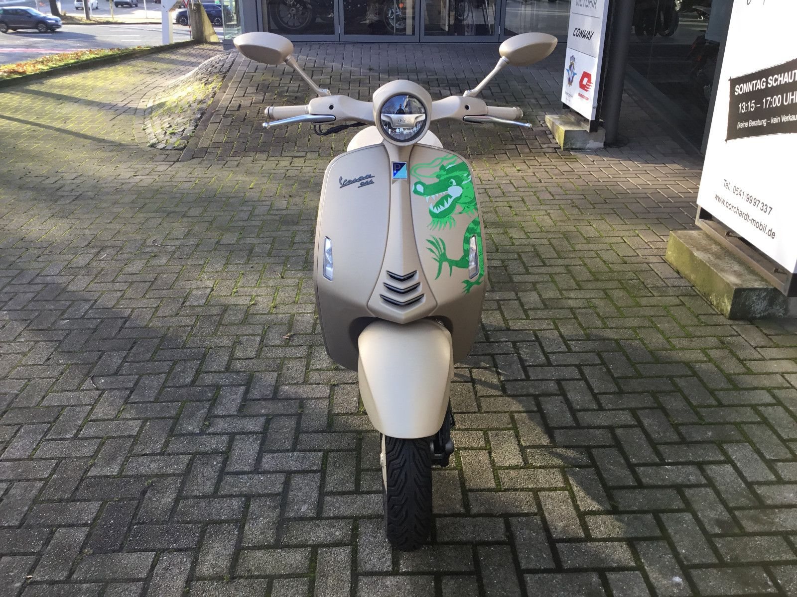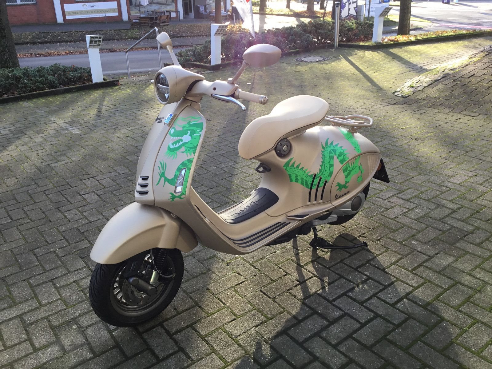- Die Vespa 946 Dragon ist eine Hommage an das majestätische, mächtige Tier, nach dem sie benannt ist, und an den Mondkalender. Sie ist in einer limitierten Auflage von 1888 nummerierten Vespa erhältlich und dazu bestimmt, ein Sammlerstück zu werden. Jede einzelne Dragon wird in Italien von Hand gefertigt und interpretiert die ikonischsten Elemente der ersten Vespa-Prototypen in einer zeitgemäßen Form neu, die den Archetyp der Vespa der Zukunft darstellt.