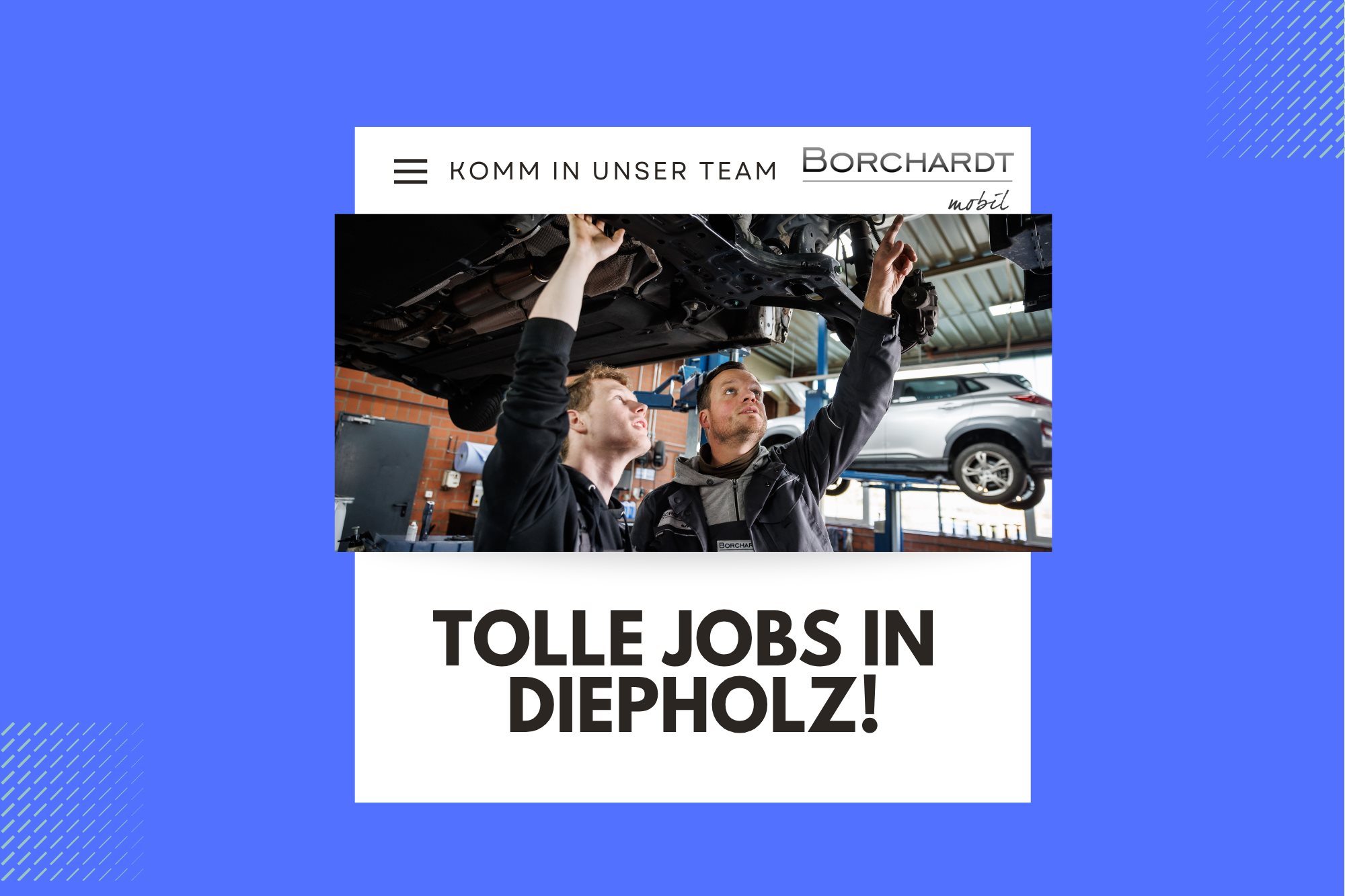 Wir freuen uns auf Ihre Bewerbung. Bitte senden Sie Ihre Unterlagen (Lebenslauf, Zeugnisse, Gehaltsvorstellung) per E-Mail an Jörg Borchardt j.borchardt@borchardt-mobil.de oder kommen Sie persönlich vorbei.