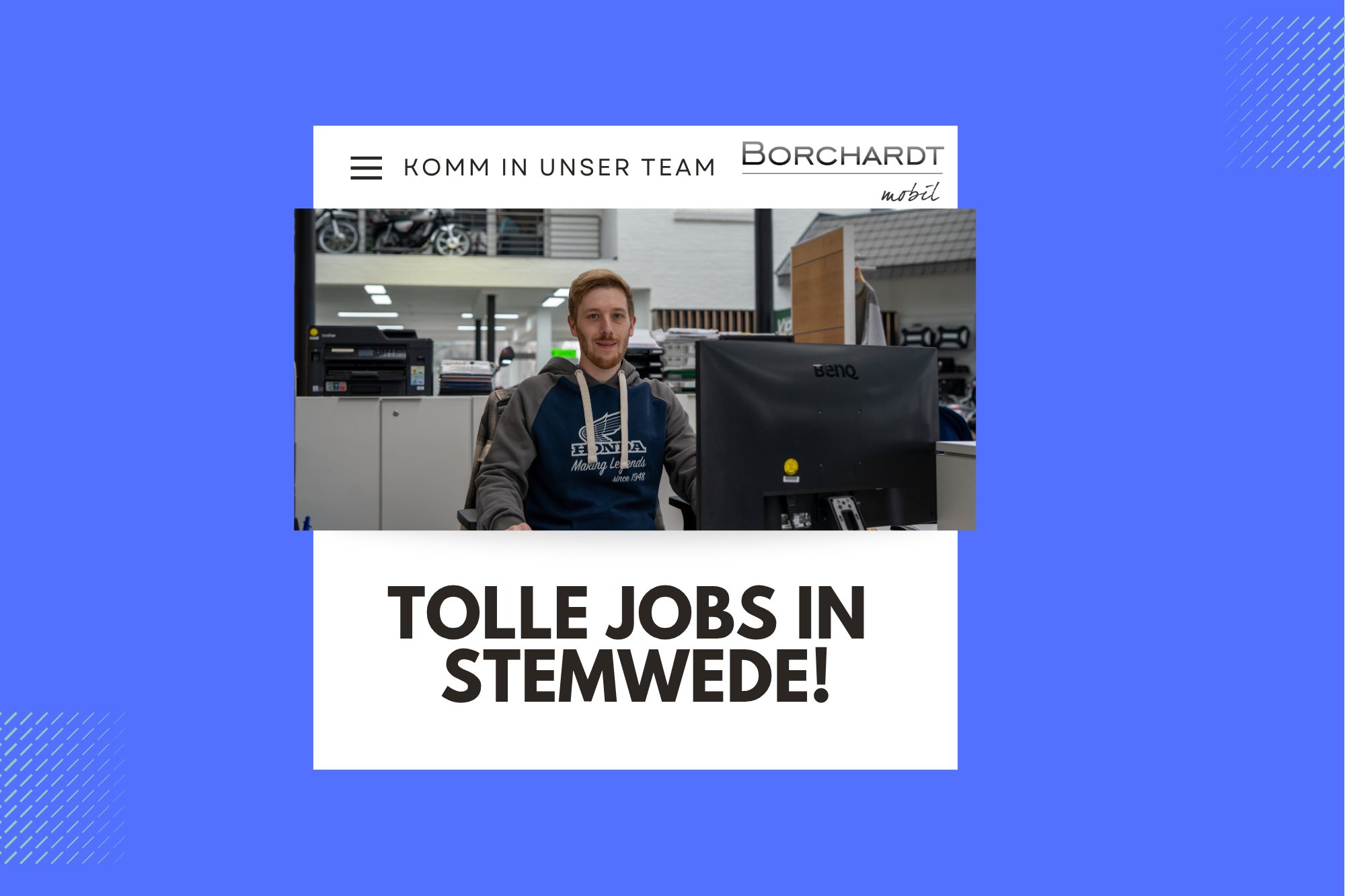 Ihre Bewerbung senden Sie bitte mit Gehaltsvorstellung per Post oder E-Mail an Jörg Borchardt bzw. j.borchardt@borchardt-mobil.de oder kommen einfach vorbei und stellen sich persönlich vor.