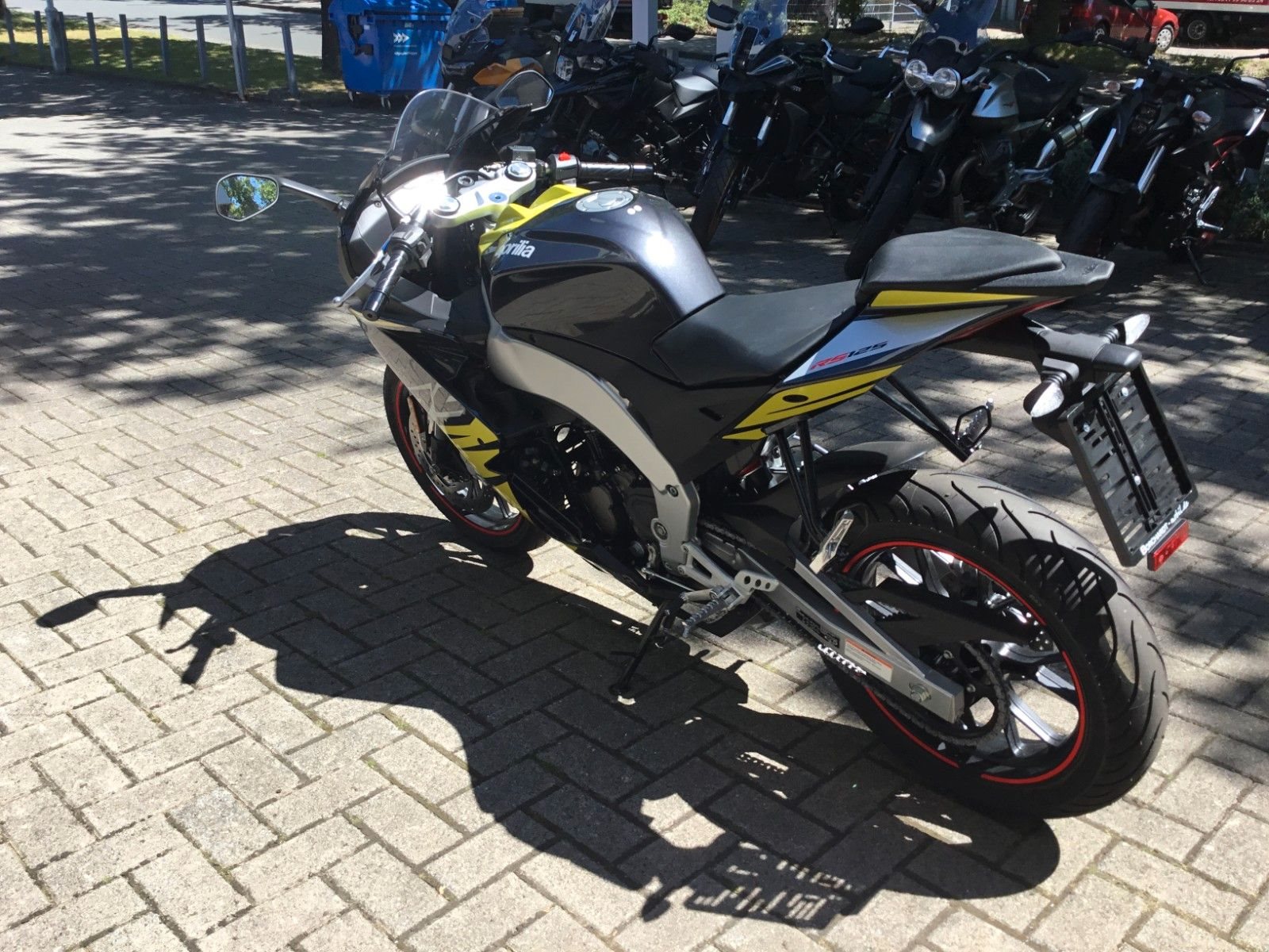 - Maximale Alltagstauglichkeit und Reichweite. Die Sportlichkeit der Aprilia RS 125 geht nicht auf Kosten der Alltagstauglichkeit: Das geräumige Staufach unter der Sitzbank bietet Platz für ein Smartphone, das über einen optional erhältlichen USB-Anschluss aufgeladen werden kann. Der 14,5-Liter-Tank sorgt für eine konkurrenzlose Reichweite.