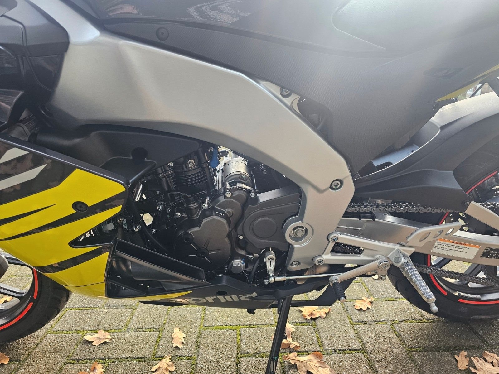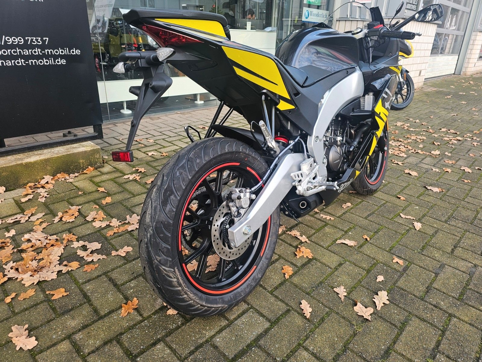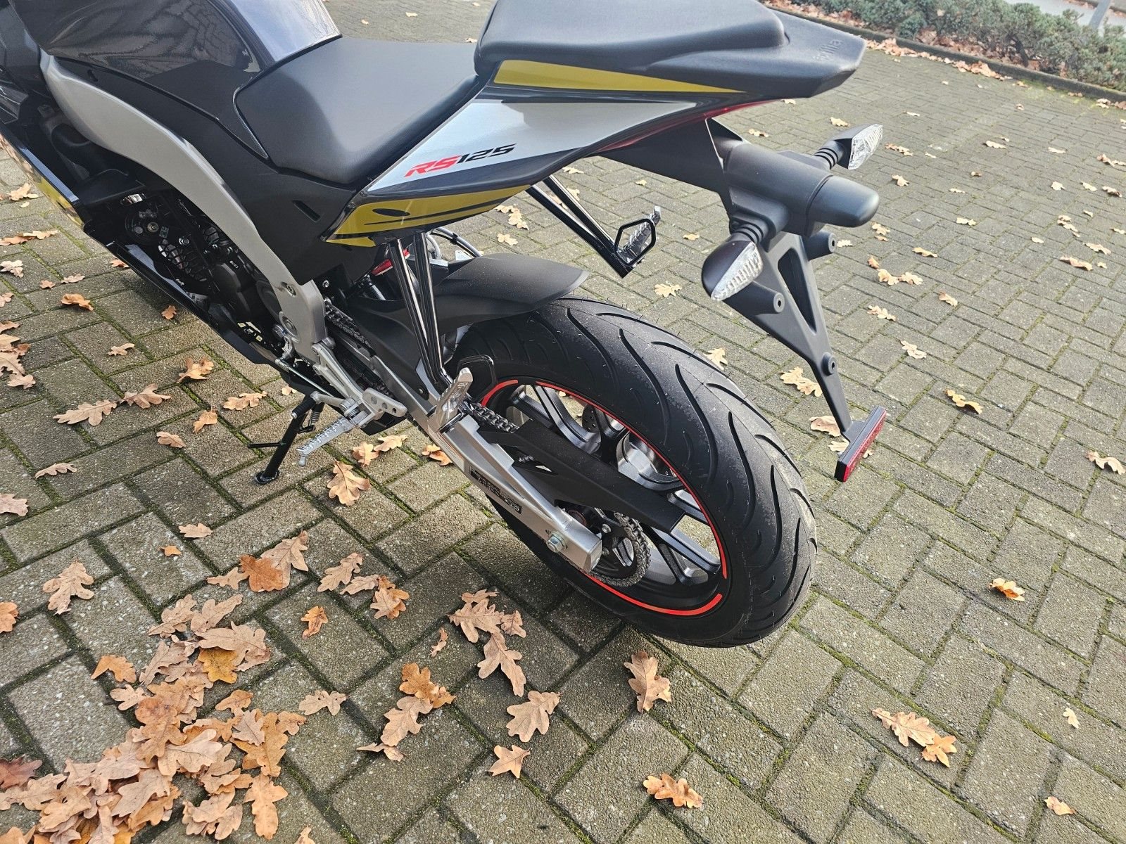 - 125 cm3 Euro 5+ Motor.Der Motor der Aprilia RS 125 ist ein Einzylinder mit Vierventil-Technik, Flüssigkeitskühlung und Euro 5+. Er wurde entwickelt, um in seiner Klasse die maximale Leistung zu liefern. Die Spitzenleistung beträgt 15 PS, kombiniert mit einem beeindruckenden Drehmoment - eine brillante Performance, die Adrenalin und volle Kontrolle in jeder Kurve garantiert.