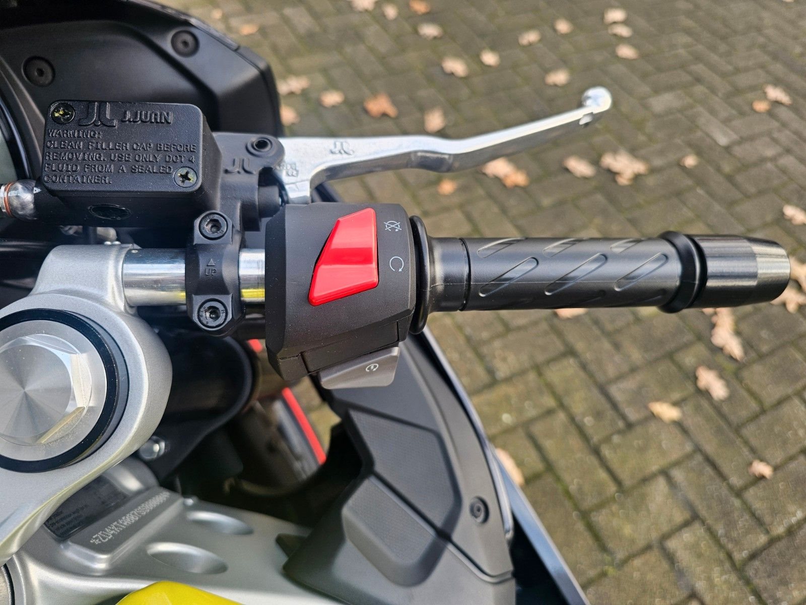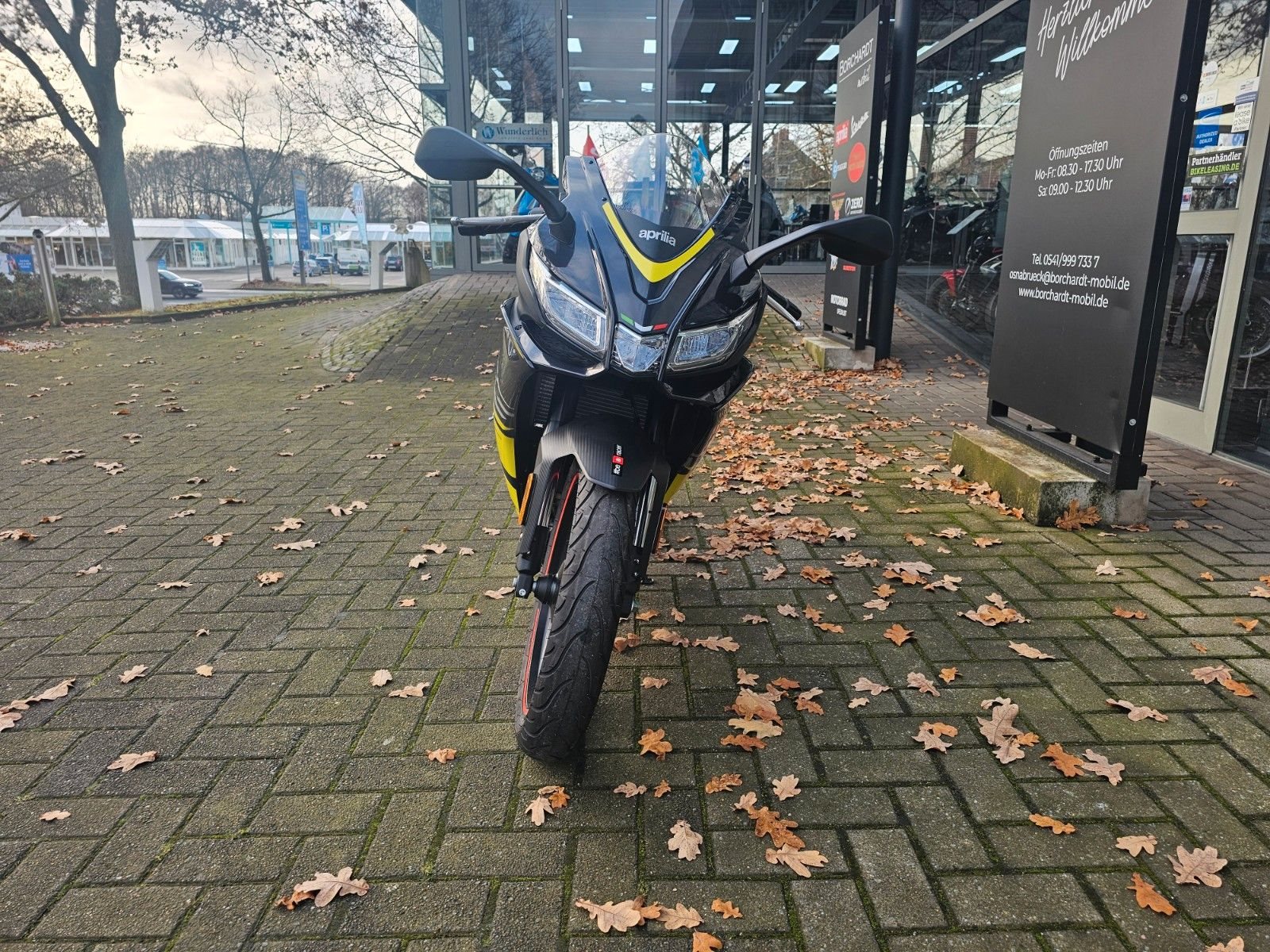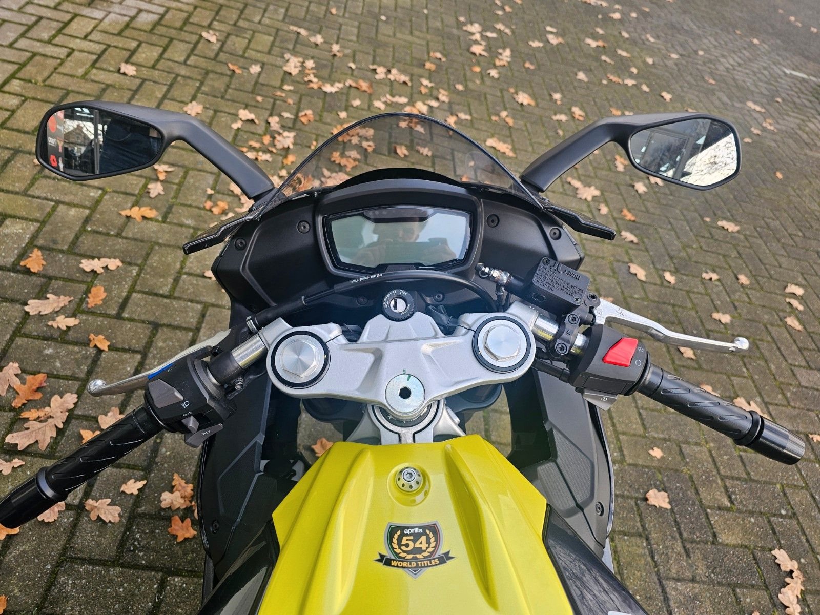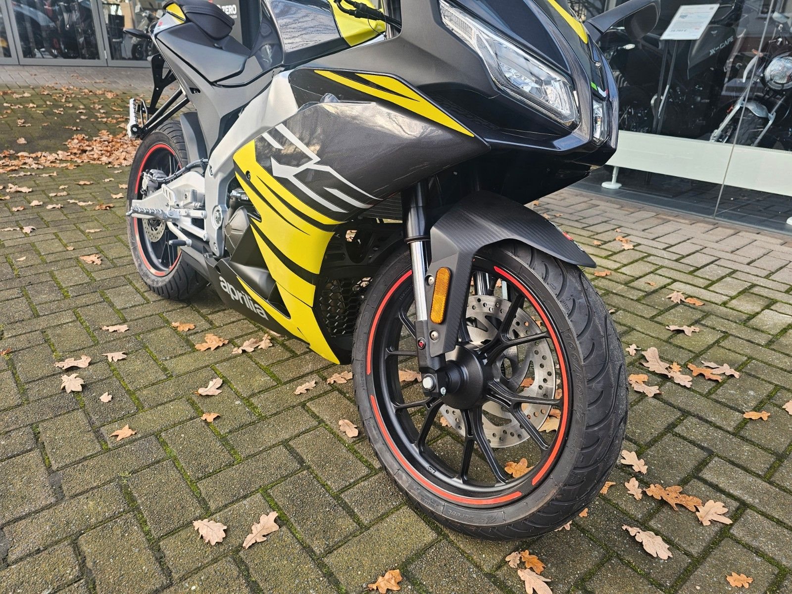 - 125 cm3 Euro 5+ Motor.Der Motor der Aprilia RS 125 ist ein Einzylinder mit Vierventil-Technik, Flüssigkeitskühlung und Euro 5+. Er wurde entwickelt, um in seiner Klasse die maximale Leistung zu liefern. Die Spitzenleistung beträgt 15 PS, kombiniert mit einem beeindruckenden Drehmoment - eine brillante Performance, die Adrenalin und volle Kontrolle in jeder Kurve garantiert.