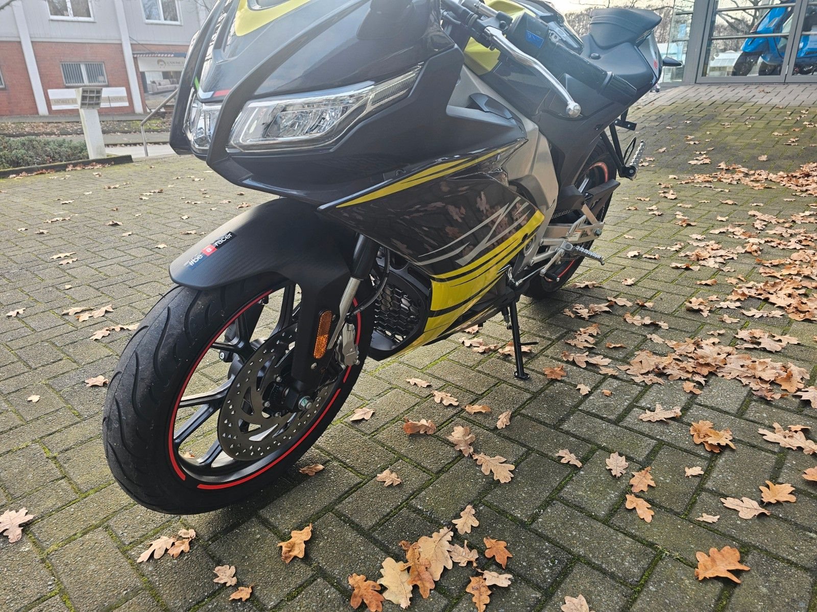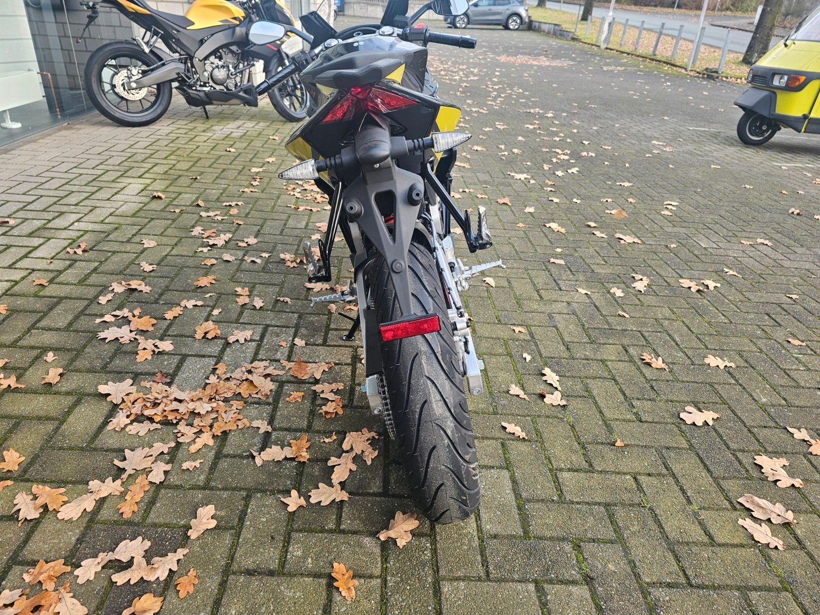 - Sportlichkeit für jeden Tag. Das Design der Aprilia RS 125 ist inspiriert von den aggressiven Linien der großen Schwester RS 660 - einer Ikone einer neuen Art der Sportlichkeit auf zwei Rädern, mit einem Look, der bis ins kleinste Detail durchdacht ist. Stabilität und Handling werden durch den raffinierten Aluminiumrahmen garantiert, der entwickelt wurde, um die Leistung auf ein neues Niveau zu heben. Der dreiteilige Full-LED-Scheinwerfer unterstreicht noch stärker die sportliche Seele dieses Adrenalinkicks 'Made in Italy'. Perfekt für alle, die sich jeden Tag von der Masse abheben wollen.