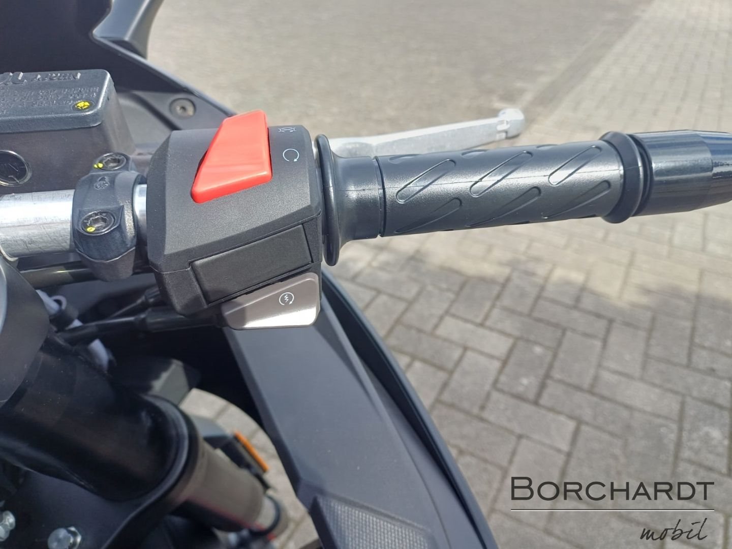 Es ist auch für die Aprilia MIA Multimedia-Funktion (als Zubehör erhältlich) vorbereitet, mit der du ganz einfach Anrufe, Nachrichten, Musik und Reiseinfos checken kannst - für ein noch besser vernetztes und technikaffines Fahrerlebnis.