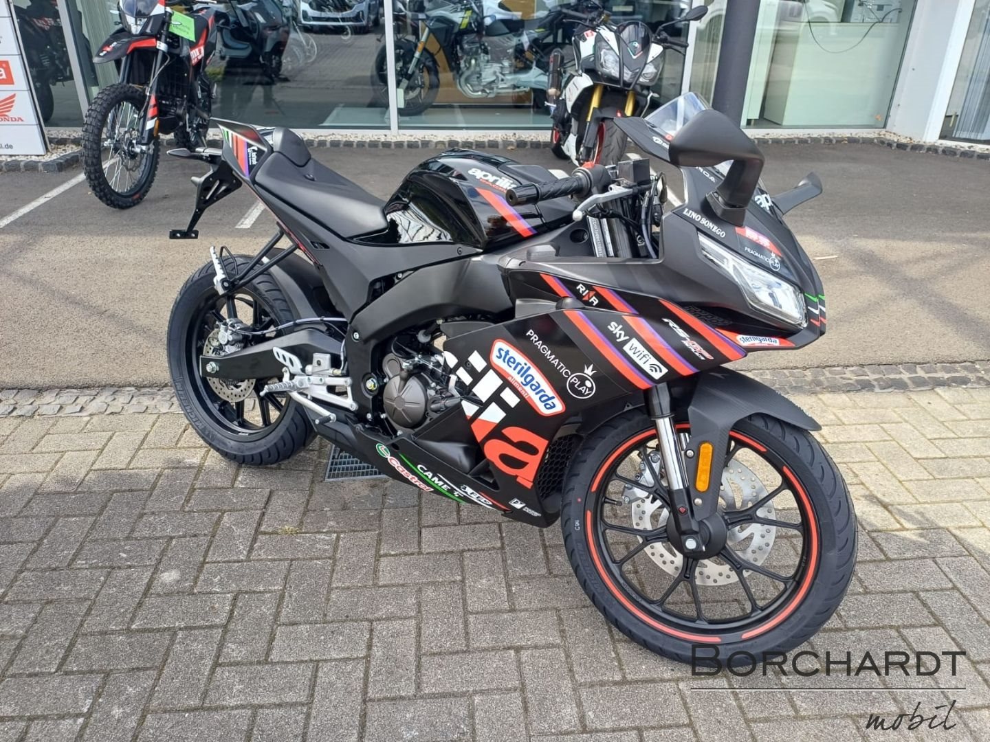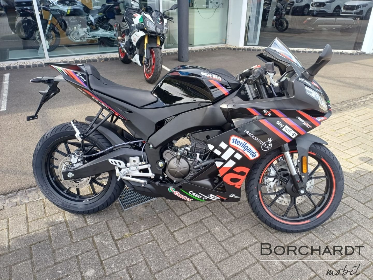 Mit der coolen Lackierung, die an die aktuelle Aprilia RS-GP25 aus der MotoGP erinnert, ist die Aprilia RS 125 GP Replica für alle, die richtig Gas geben wollen. Neben dem exklusiven Look mit der Beifahrersitzabdeckung hat sie einen Quick Shifter, der für präzise und blitzschnelle Gangwechsel sorgt.