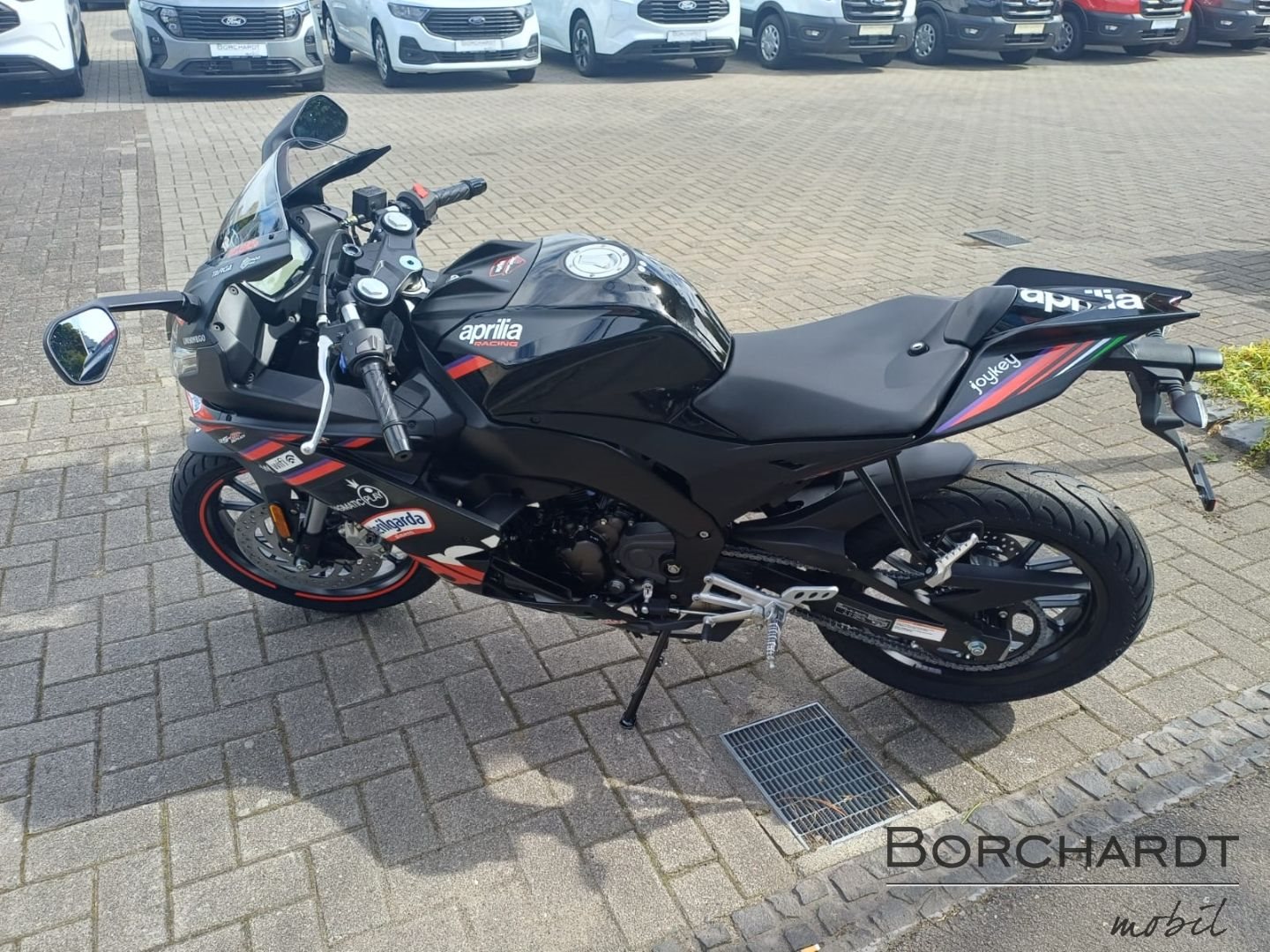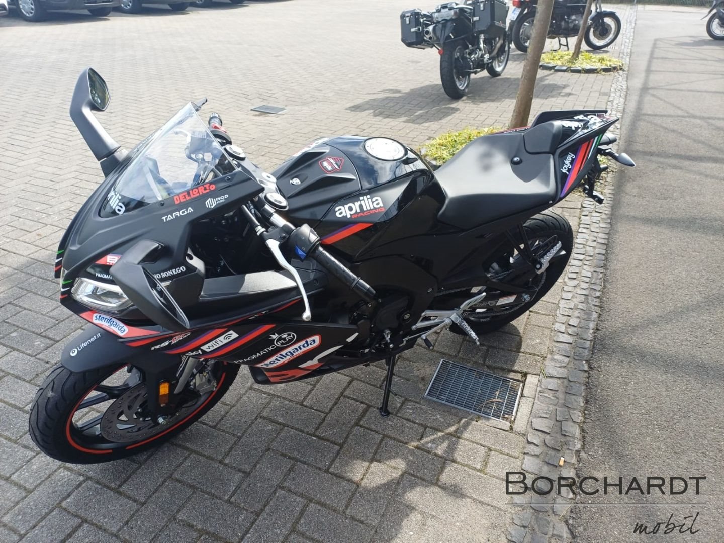 Ein bisschen AdrenalinDie Aprilia RS 125 GP Replica bringt technische Raffinesse mit echtem Sportcharakter zusammen. Das Herzstück ist ein Euro 5+ konformer, flüssigkeitsgekühlter Einzylinder-Viertaktmotor mit vier Ventilen, der bei jedem Gasgeben für echten Nervenkitzel sorgt. Der serienmäßige Quick Shifter ermöglicht ultraschnelle Gangwechsel, während die Traktionskontrolle (deaktivierbar) und das Zweikanal-ABS von Bosch mit Anti-Überschlag-Funktion für maximale Kontrolle und Sicherheit sorgen.