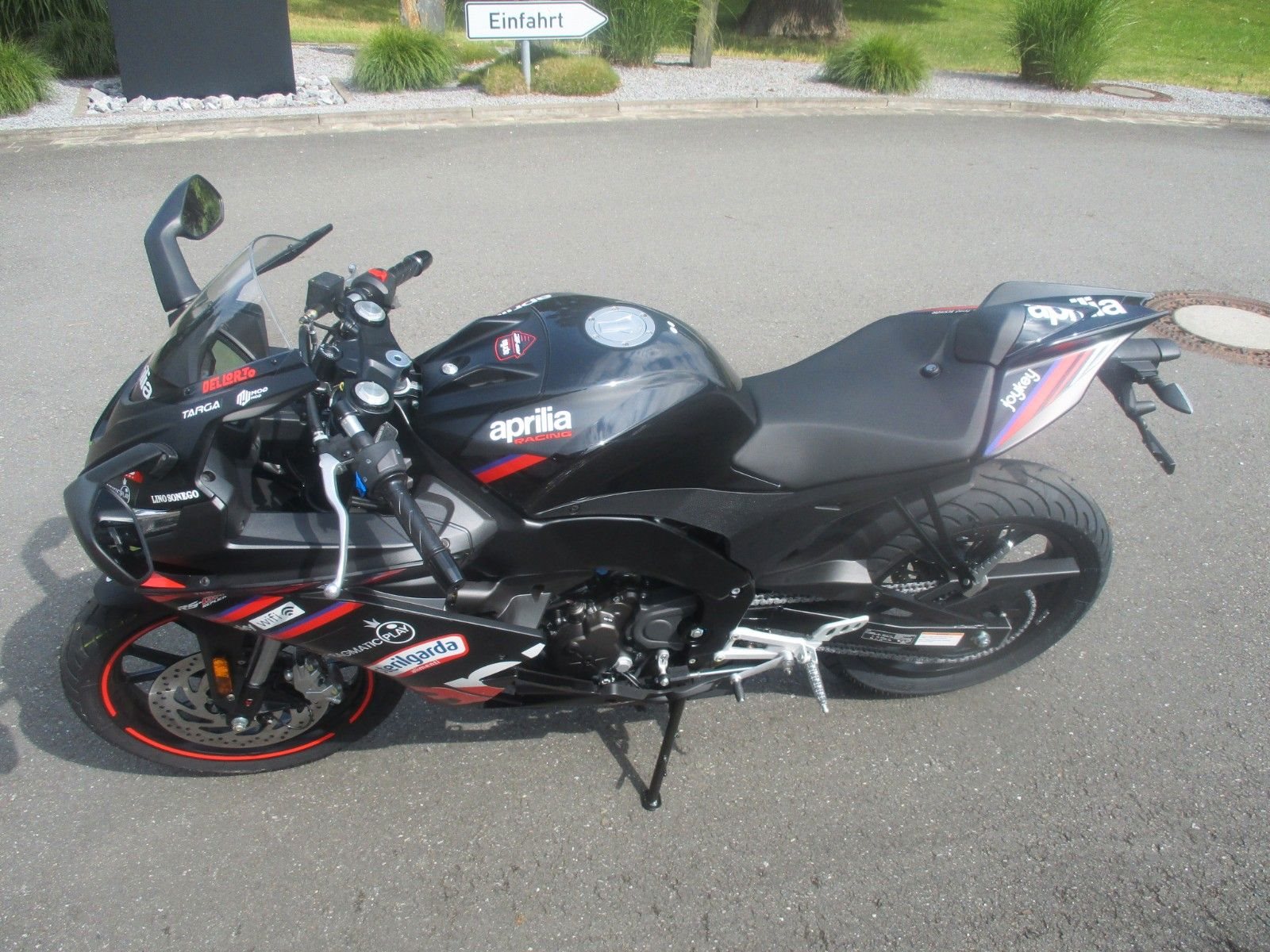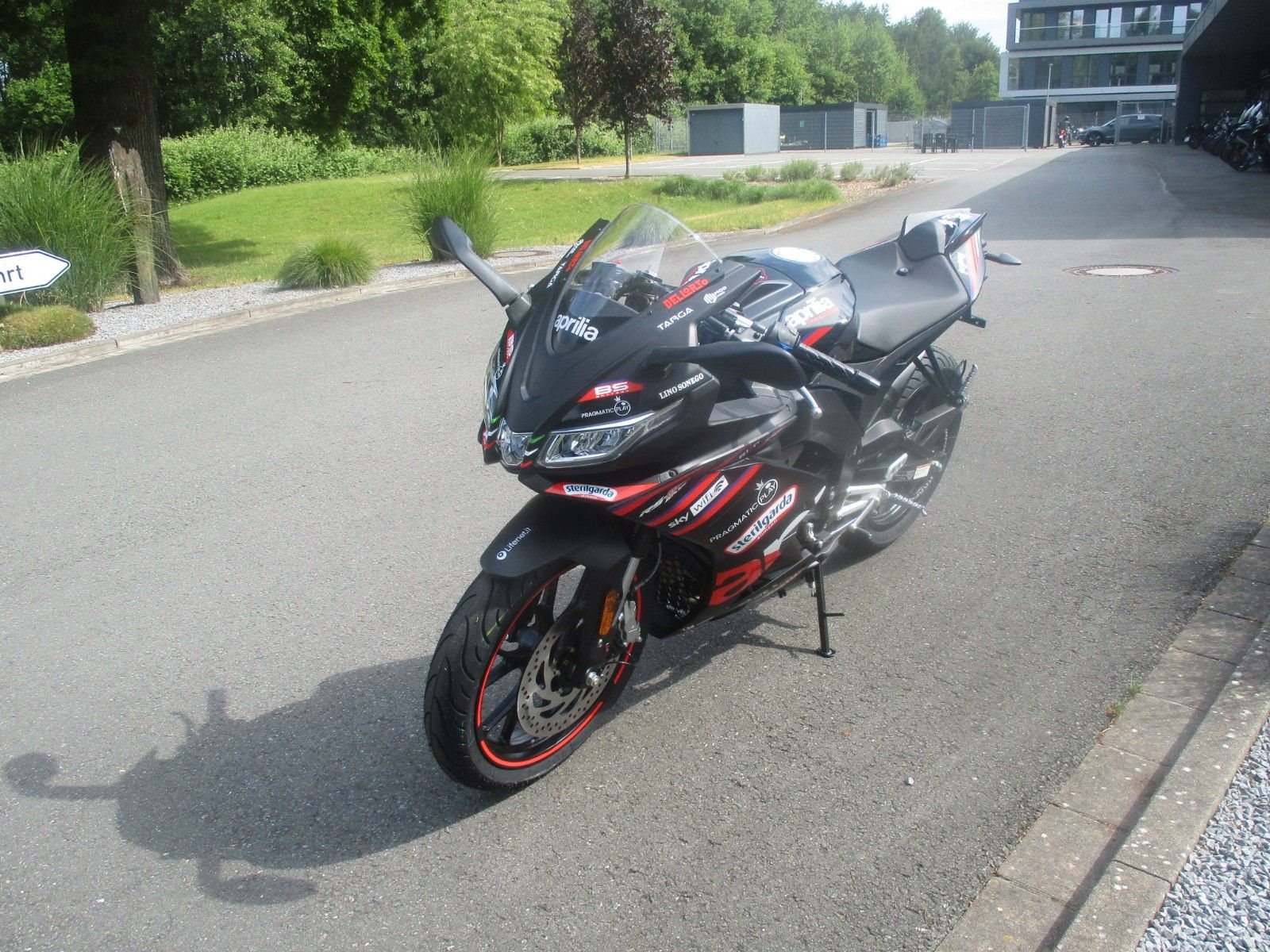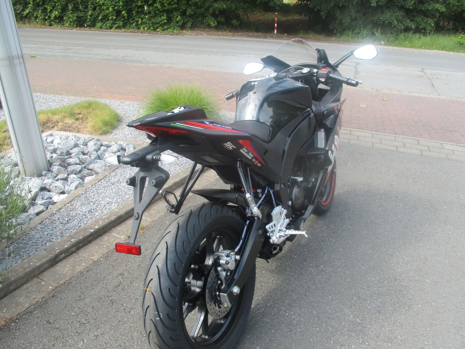 Das Design der Aprilia RS 125 ist inspiriert von den aggressiven Linien der großen Schwester RS 660 - einer Ikone einer neuen Art der Sportlichkeit auf zwei Rädern, mit einem Look, der bis ins kleinste Detail durchdacht ist. Stabilität und Handling werden durch den raffinierten Aluminiumrahmen garantiert, der entwickelt wurde, um die Leistung auf ein neues Niveau zu heben. Der dreiteilige Full-LED-Scheinwerfer unterstreicht noch stärker die sportliche Seele dieses Adrenalinkicks 'Made in Italy'. Perfekt für alle, die sich jeden Tag von der Masse abheben wollen.