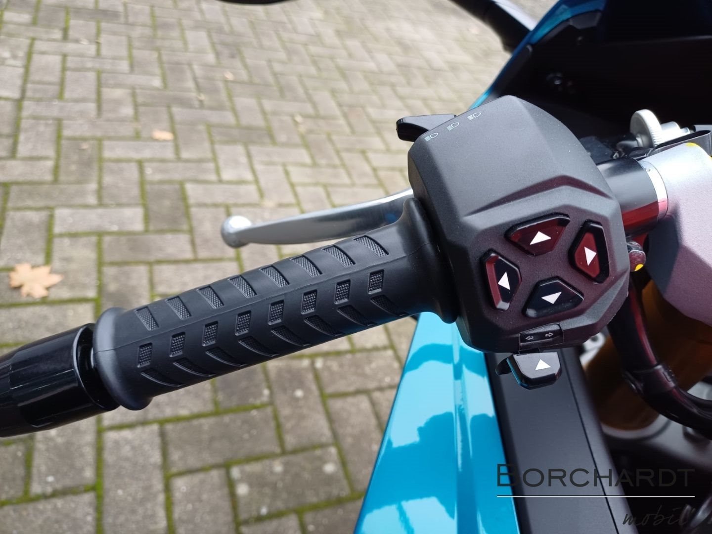 Innovation und fortschrittliche KontrolleDie Aprilia RS 660 hebt sich in ihrem Segment dank eines fortschrittlichen Elektronikpakets wie der APRC (Aprilia Performance Ride Control) ab, um ein Höchstmaß an Leistung und persönlichen Einstellungen zu bieten und um jederzeit ein präzises und engagiertes Fahrverhalten zu garantieren. Das 5-Zoll-TFT-Display und die hintergrundbeleuchteten Bedienelemente ermöglichen eine sofortige Kontrolle. Die RS 660 ermöglicht es, da eigene Fahrpotenzial in jeder Situation zu maximieren und absoluten Racing Spirit zu entfesseln.