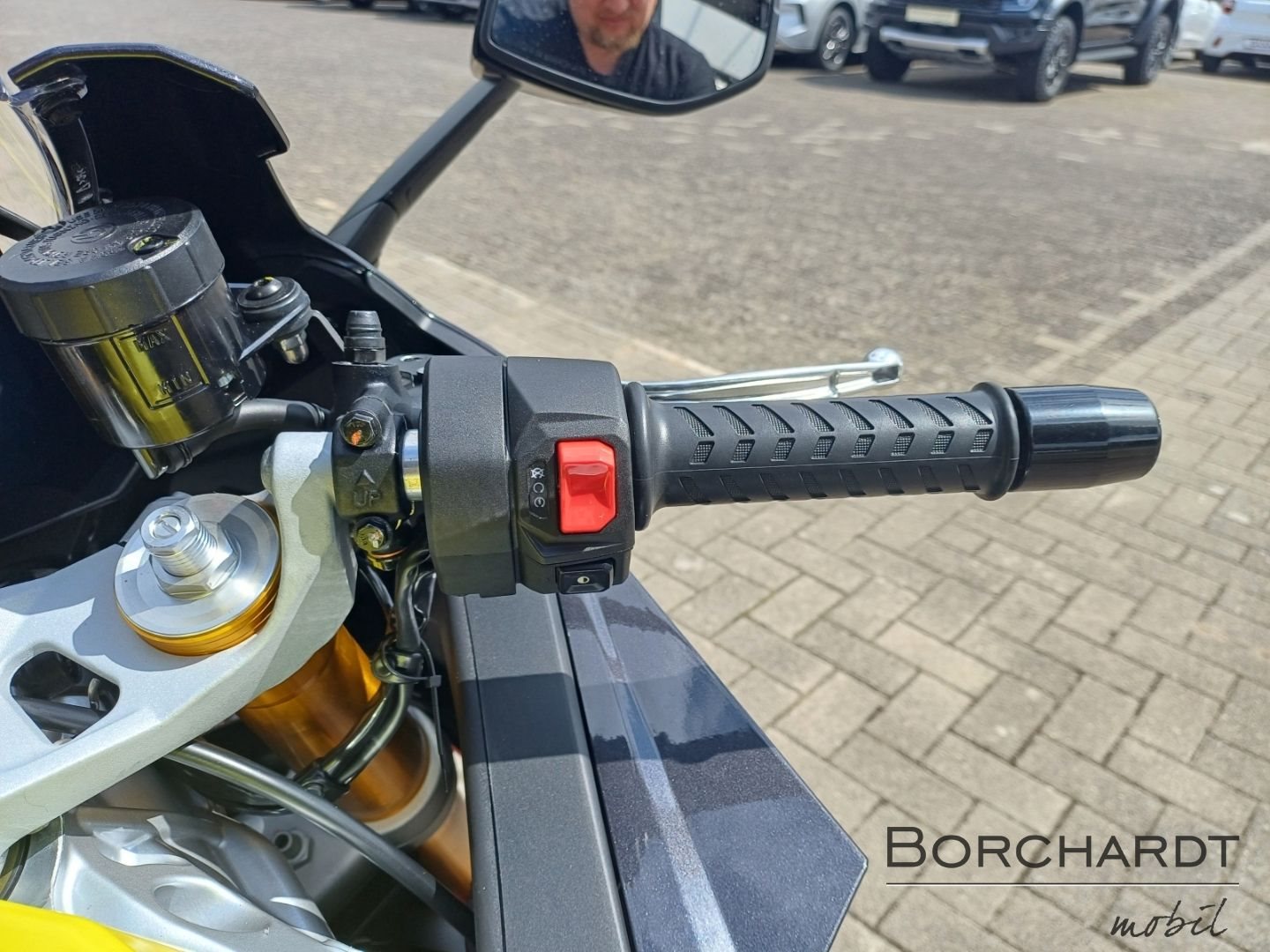 Innovation und fortschrittliche KontrolleDie Aprilia RS 660 hebt sich in ihrem Segment dank eines fortschrittlichen Elektronikpakets wie der APRC (Aprilia Performance Ride Control) ab, um ein Höchstmaß an Leistung und persönlichen Einstellungen zu bieten und um jederzeit ein präzises und engagiertes Fahrverhalten zu garantieren. Das 5-Zoll-TFT-Display und die hintergrundbeleuchteten Bedienelemente ermöglichen eine sofortige Kontrolle. Die RS 660 ermöglicht es, da eigene Fahrpotenzial in jeder Situation zu maximieren und absoluten Racing Spirit zu entfesseln.