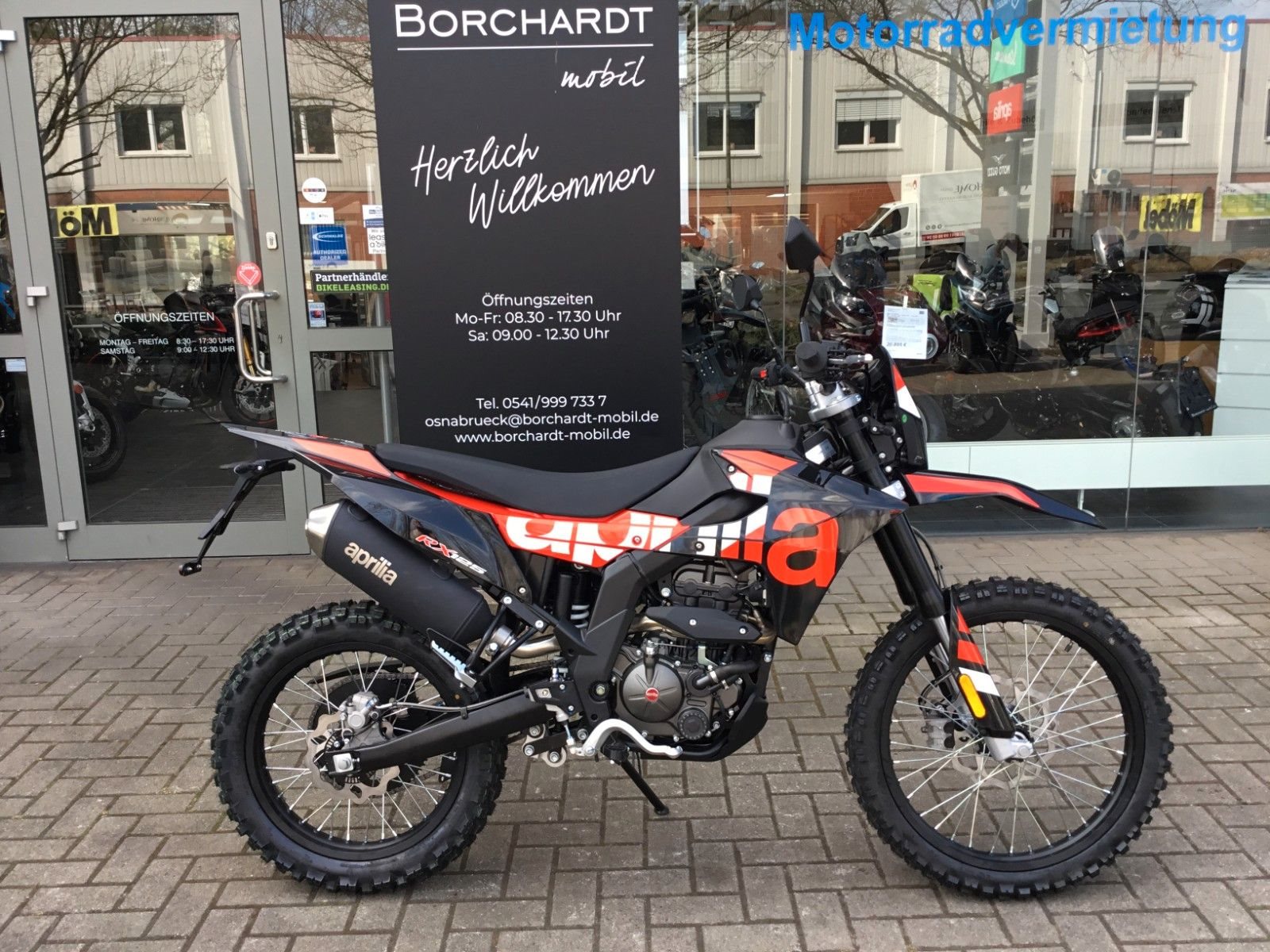 - OFFROAD BIKE MIT GEWINNER-DNA Die Aprilia RX 125 treibt dich zu Abenteuern an, sie ist wendig auf der Straße und unaufhaltsam im Gelände. Sie ist in der Offroad-Tradition von Aprilia verwurzelt und hat die triumphalen Siege des Aprilia Tuareg Rally in seiner DNA. Dank raffinierter technischer Lösungen und eines modernen, Euro 5+ konformen Motors ist die RX 125 bereit, sich jeder täglichen Herausforderung zu stellen.