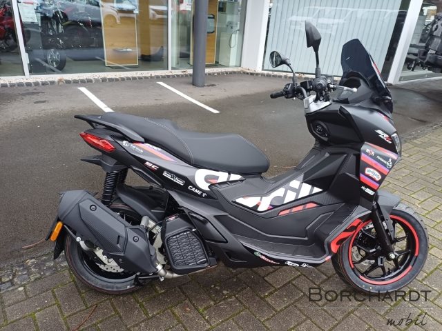 MotoGP-StilDie Sonderedition Replica zeigt stolz ihre vom Rennsport inspirierten Referenzen. Mit seiner auffälligen Optik, die sich durch eine mattschwarze Verkleidung mit roten und violetten Grafikelementen auszeichnet, macht der SR GT keinen Hehl daraus, dass er von der RS-GP25 inspiriert ist. Der Soziusgriff und der Spoiler sind ebenfalls in Mattschwarz gehalten, während das ikonische Aprilia Logo an der Seite prangt.