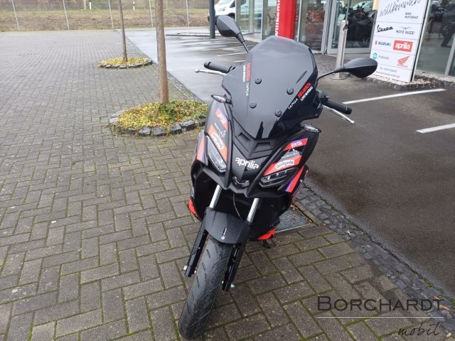 Beschleunige den SpaßErgänzt wird das robuste Fahrwerk der Aprilia SR GT Replica durch Reifen mit sportlichem Straßenprofil und schwarzen Felgen, wobei die vordere Felge mit roten Decals verziert ist. Ein Roller, der dafür gemacht ist, den Rhythmus der Stadt voll auszukosten.