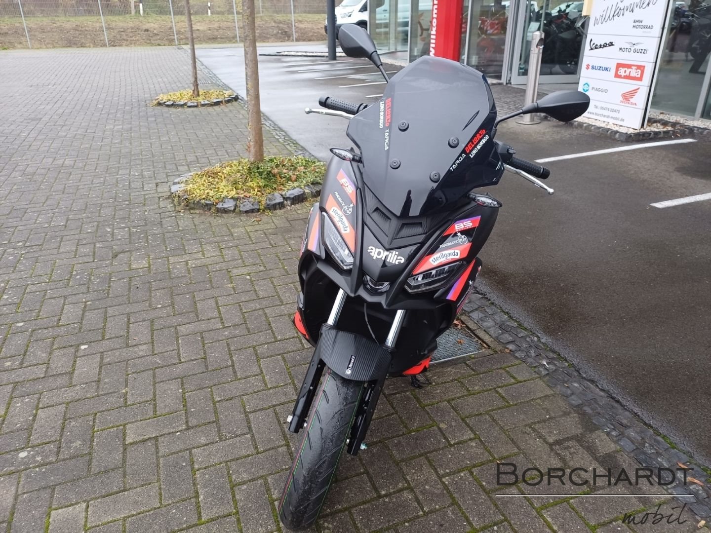 MotoGP-StilDie Sonderedition Replica zeigt stolz ihre vom Rennsport inspirierten Referenzen. Mit seiner auffälligen Optik, die sich durch eine mattschwarze Verkleidung mit roten und violetten Grafikelementen auszeichnet, macht der SR GT keinen Hehl daraus, dass er von der RS-GP25 inspiriert ist. Der Soziusgriff und der Spoiler sind ebenfalls in Mattschwarz gehalten, während das ikonische Aprilia Logo an der Seite prangt.