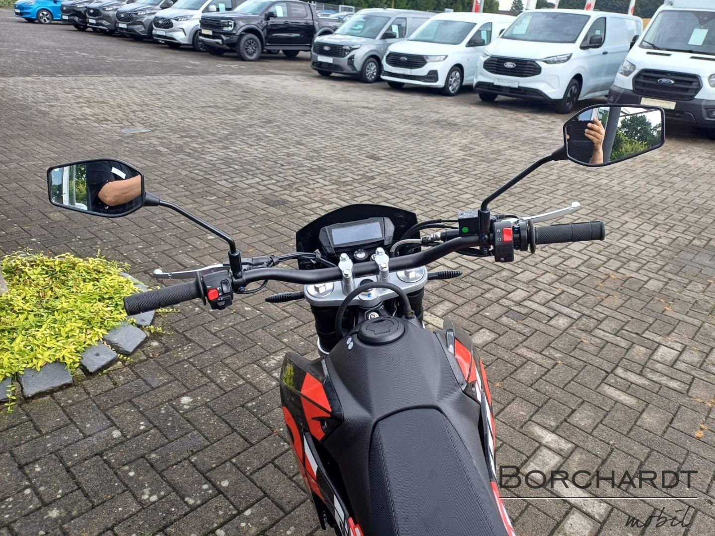 Unschlagbar auf der IdeallinieDie SX 125 ist leicht und präzise in der Handhabung und wird von einem modernen Einzylinder-Motor mit vier Ventilen und Euro 5+ Norm angetrieben, der über alle Drehzahlbereiche hinweg ein hervorragendes Drehmoment und eine hervorragende Leistung bietet. Präzision und Sicherheit in Kurven werden durch eine Dämpfung mit langem Federweg und ein Bosch-ABS mit Anti-Überschlag-Funktion gewährleistet, das beim Bremsen auf das Vorderrad einwirkt, um das Anheben des Hinterrads zu regulieren. Das Bremssystem verfügt über zwei schwimmend gelagerte Bremssättel: Der vordere mit zwei Kolben greift auf eine 300 mm Scheibe zu, während der hintere auf eine 218 mm Scheibe wirkt.