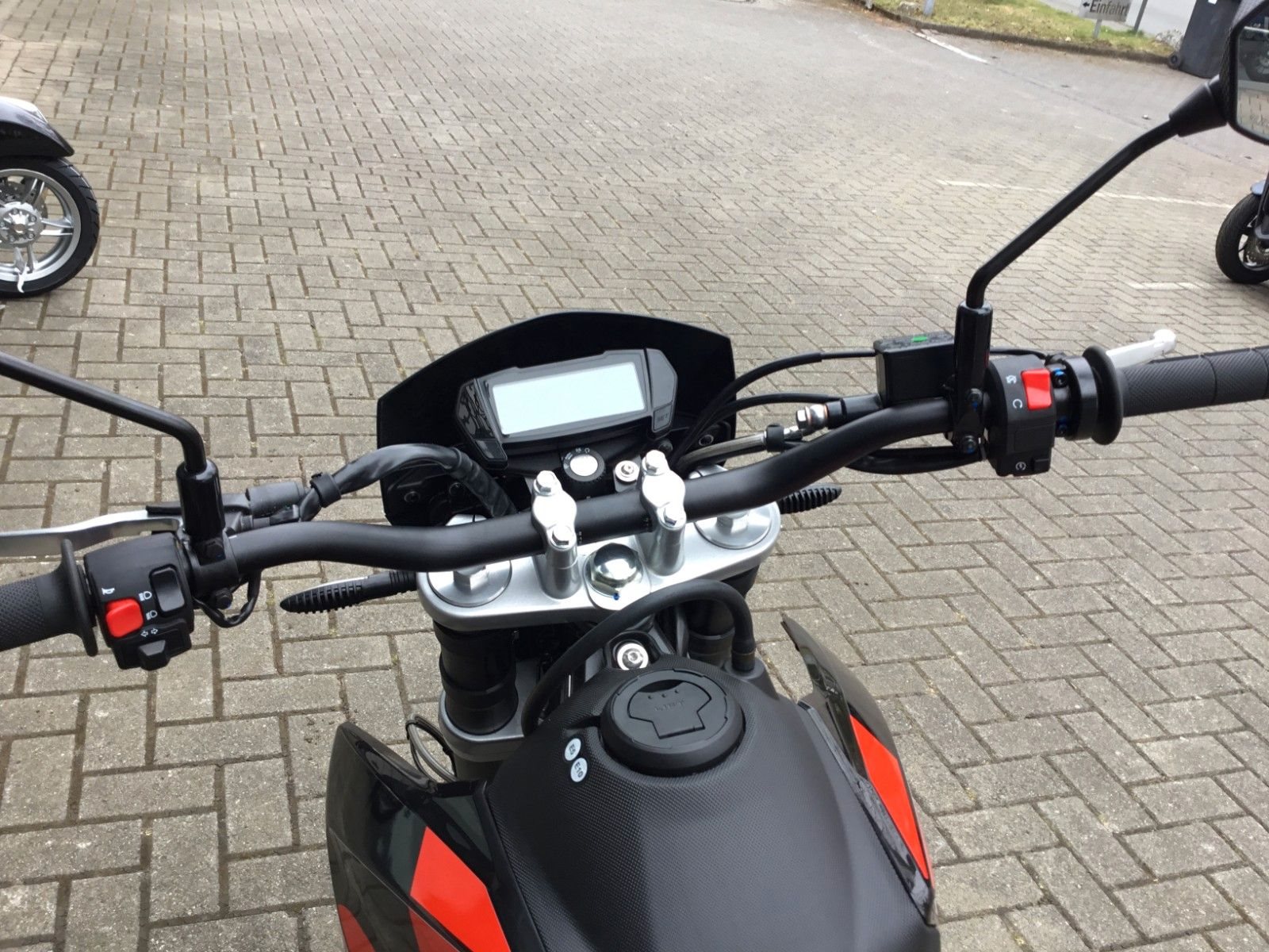 - Mutig und intuitiv Das kompakte, digitale Farb-Display liefert während der Fahrt klare und detaillierte Daten über dein Motorrad. Die Front zeigt den unverkennbaren Aprilia Look mit einer dreifachen LED-Lichteinheit, die dem urbanen Motard-Stil entspricht. Das geräumige Fach unter der Sitzbank ist für einen USB-Anschluss (als optionales Extra erhältlich) ausgelegt, sodass du dein Smartphone immer aufladen können.
