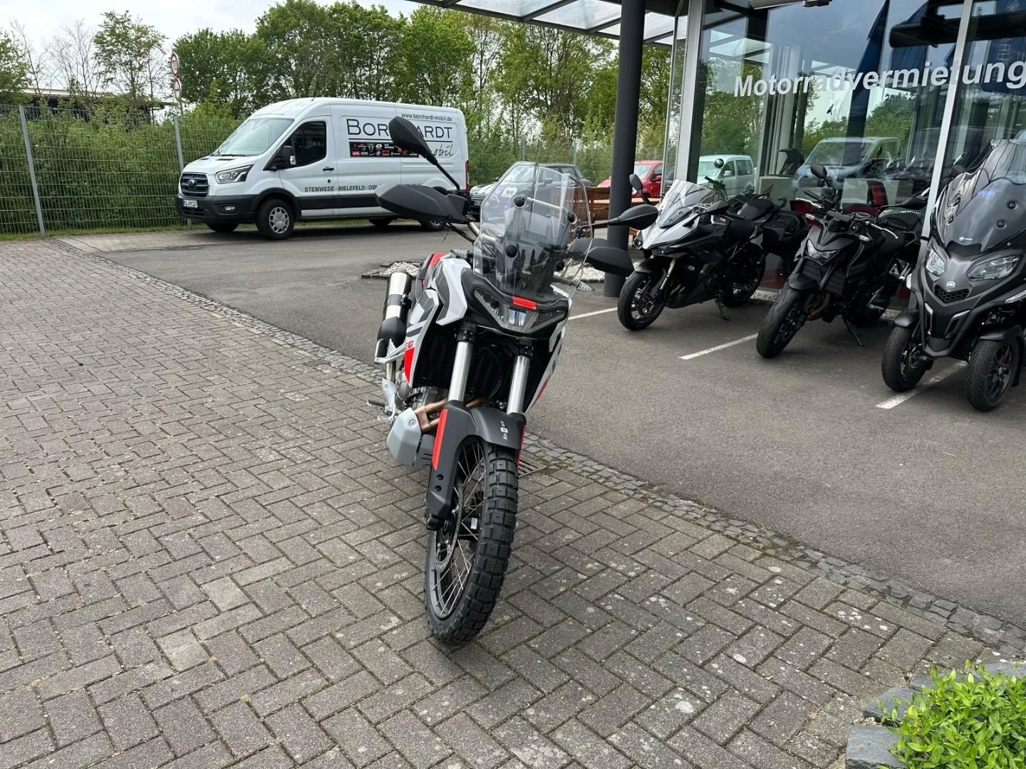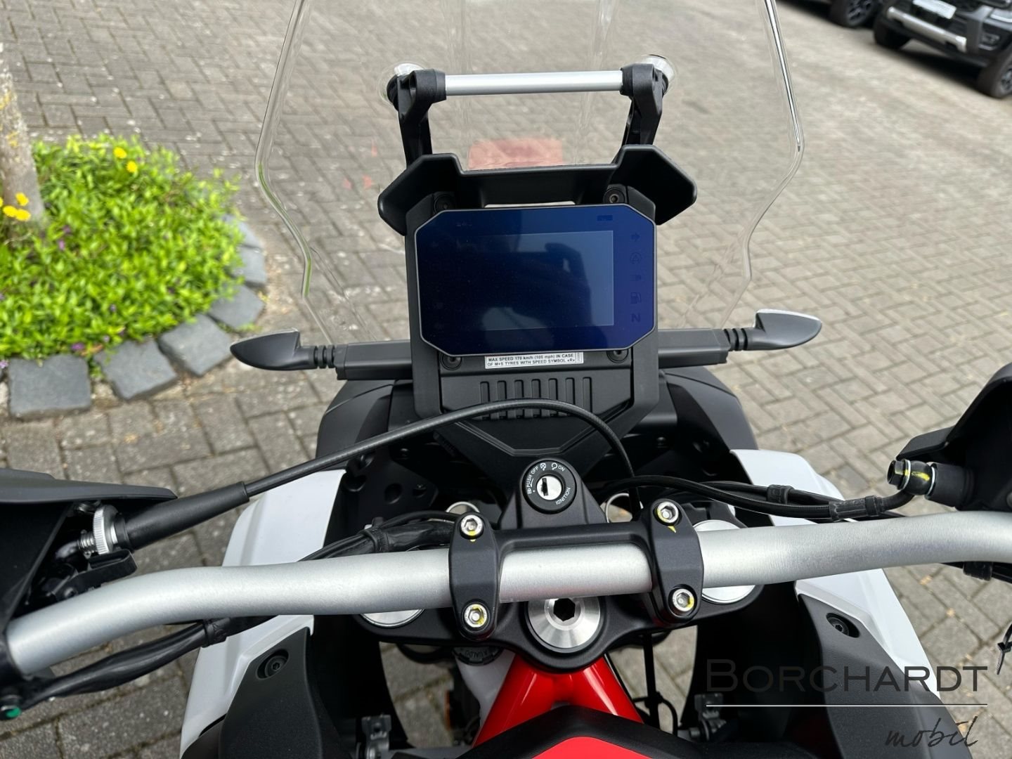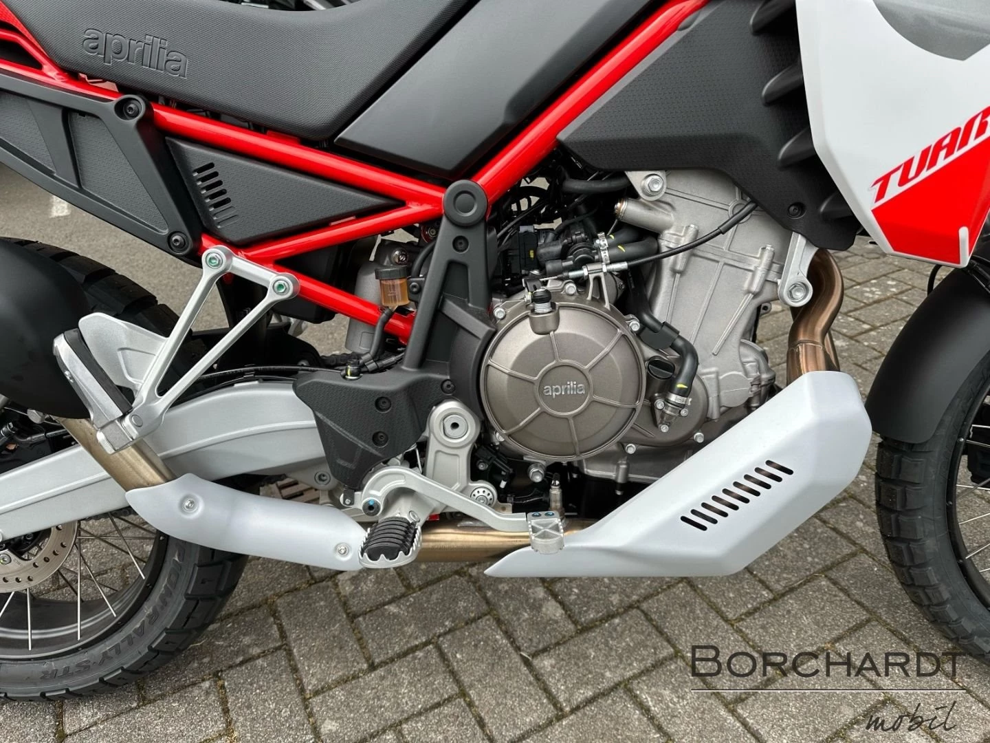 Unbegrenzte EinstellmöglichkeitenDie Elektronik der Aprilia Tuareg kombiniert Kontrolle und Leistung. Das APRC-Paket, das für Asphalt und Gelände ausgelegt ist, enthält überarbeitete Motor Mappings, die Laufruhe und Ansprechverhalten der Gasannahme verbessern. Dank des intuitiven 5-Zoll-TFT-Displays, das die Helligkeit automatisch an die Umgebung anpasst, ist jeder Parameter unter Kontrolle. Die Integration des Aprilia MIA-Zubehörs verwandelt das Display in ein echtes Kommunikationszentrum, mit dem Navigation, Anrufe und Musik immer zur Hand sind, ohne vom Fahren abzulenken.