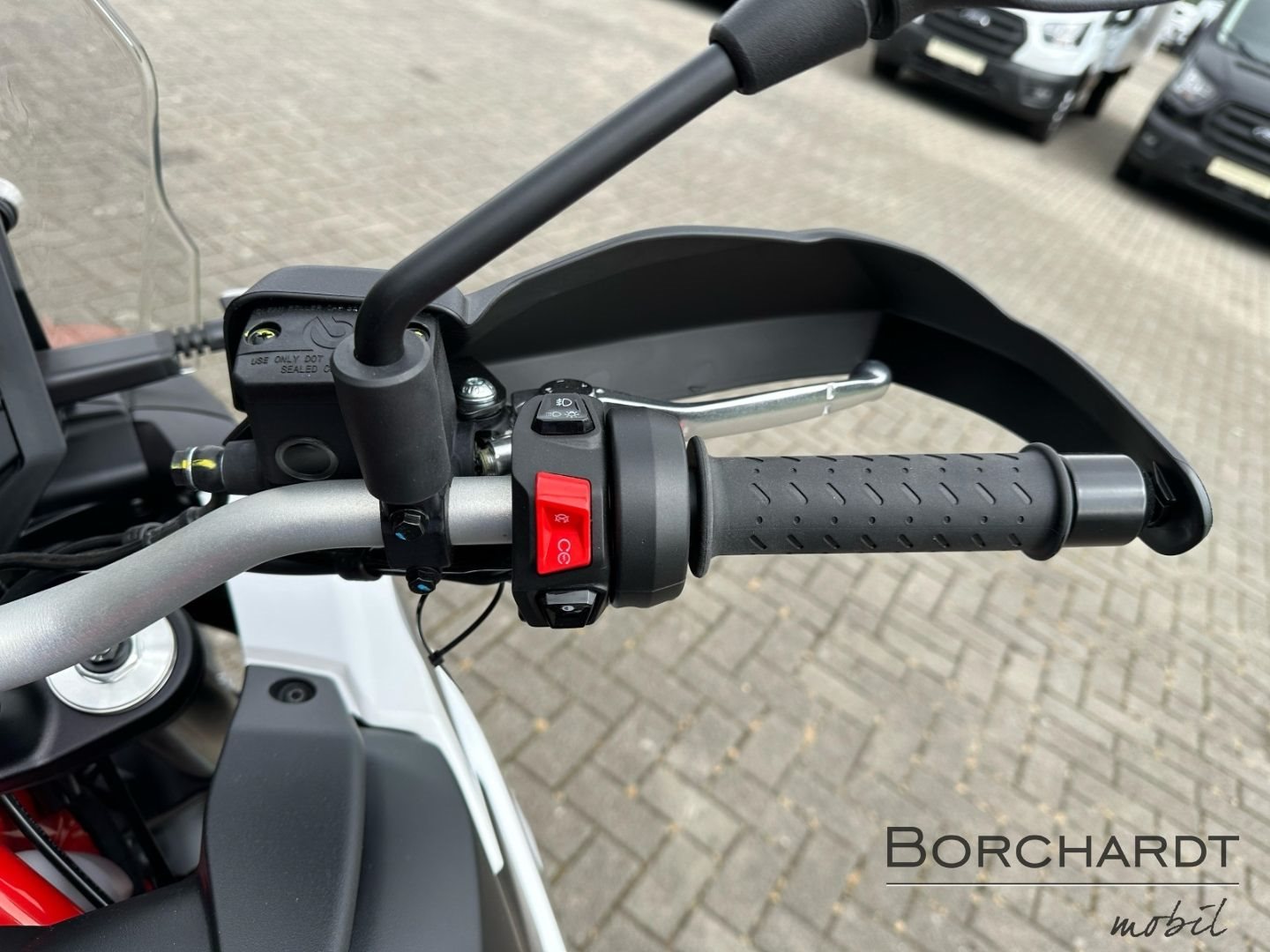 Unaufhaltbare ReaktivitätDer flüssigkeitsgekühlte, Euro 5+ homologierte 4-Takt-Parallel-Twin-Motor leistet 80 PS bei 9.200 U/min und sorgt für ein perfektes Gleichgewicht zwischen Leistung und Kontrolle auf jedem Terrain. Die 52-mm-Drosselklappen garantieren Leistung bei jeder Drehzahl, während die Lichtmaschine mit seltenen Erden die Trägheit reduziert, das Ansprechverhalten verbessert und eine sofortige und entschlossene Beschleunigung gewährleistet.