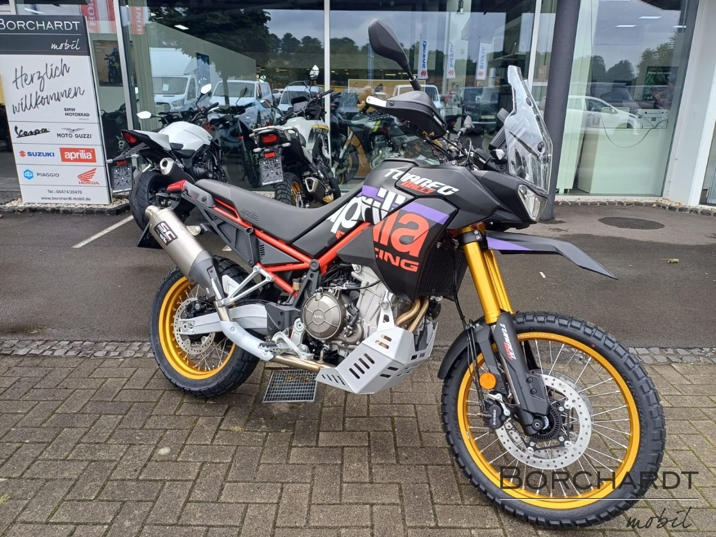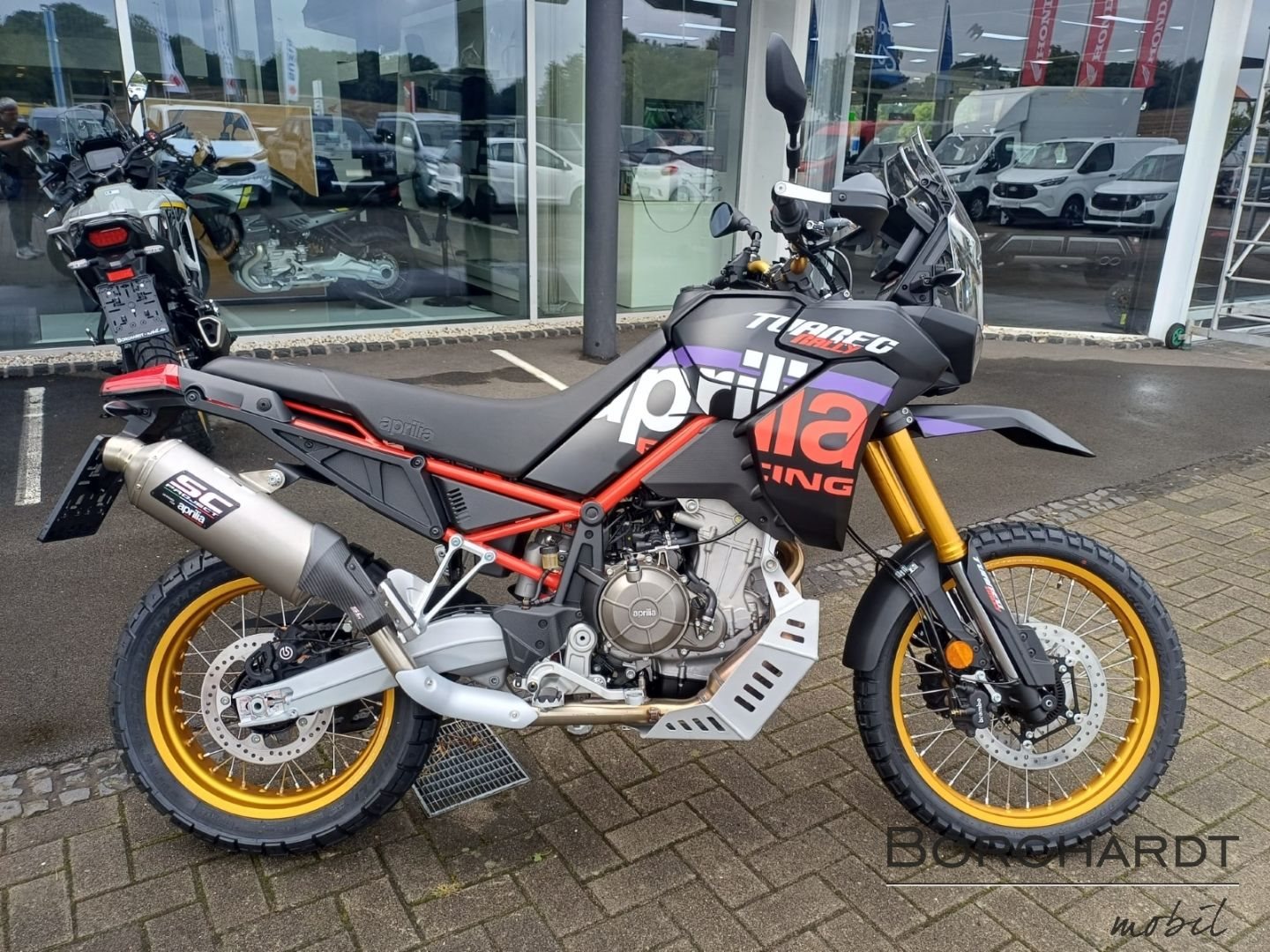 Für Offroad gemachtAusgestattet mit einem aktualisierten Motor Mapping bietet die Aprilia Tuareg Rally eine dynamischere, reaktionsschnellere Gasannahme. Dieses Setup sorgt für optimale Kontrolle beim Überwinden von Hindernissen und ermöglicht ein präzises Handling auf den anspruchsvollsten Offroad-Passagen. Der SC Project Abgasanlage, die speziell für die Rally entwickelt wurde, ist aus Titan gefertigt und verfügt über einen Racing Style-Endkappe mit einem 60 mm Auslass, um Leistung und Sound zu verbessern. Das Gesamtgewicht des Motorrads wurde insgesamt auf nur 199 kg reduziert. Dank der vier Fahrmodi Urban, Explore, Off-Road und Individual ist es möglich, alle wichtigen Parameter der APRC-Elektronik individuell einzustellen, um sowohl maximale Fahrpräzision als auch maximale Leistungsabgabe zu erreichen.
