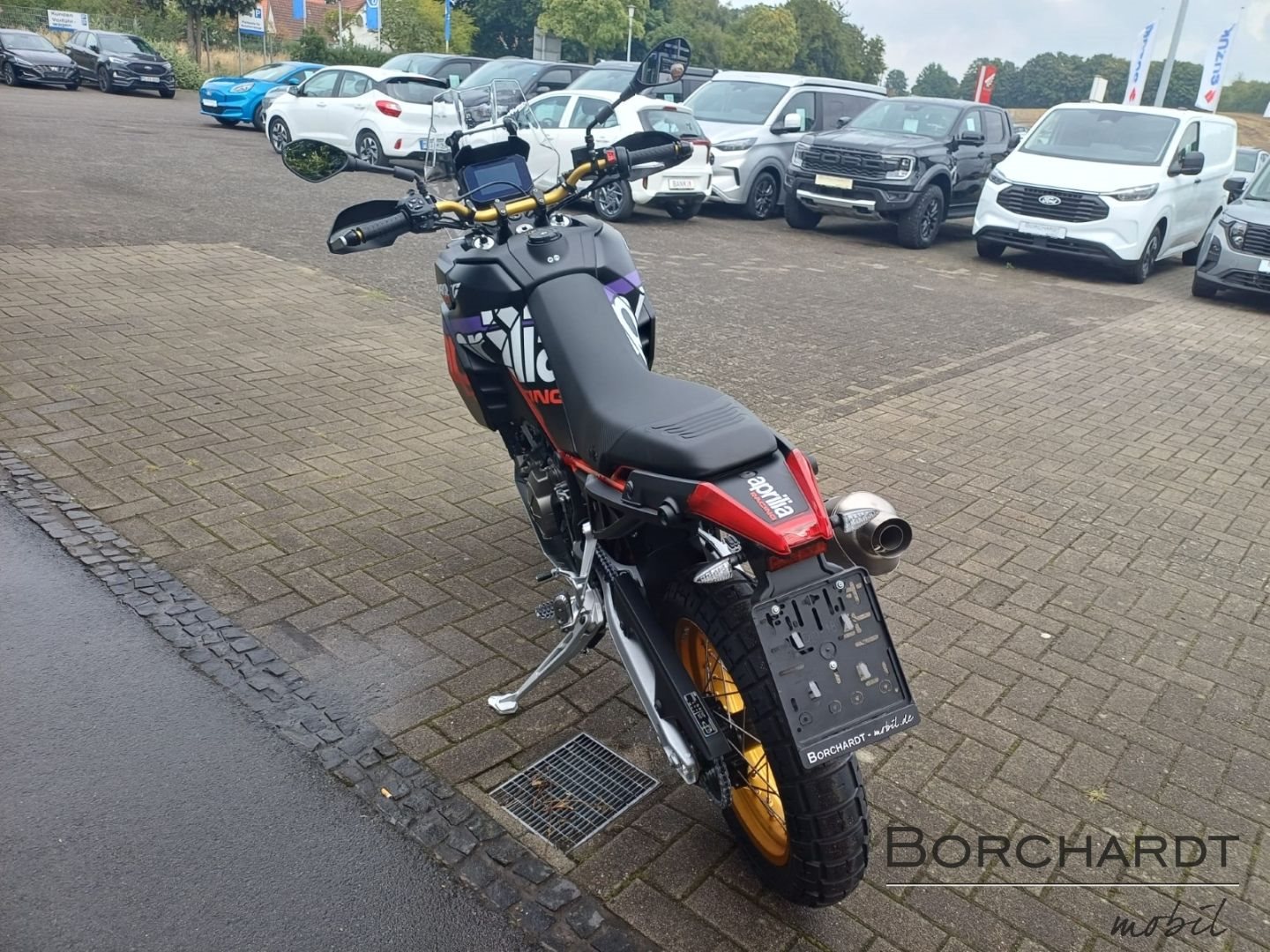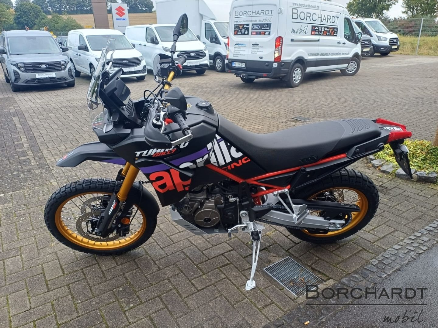 Rally replicaDie Aprilia Tuareg Rally ist in demselben unverwechselbaren Rally Race Replica-Look erhältlich, der auch das Motorrad von Jacopo Cerutti geziert hat, als er im Januar 2024 die legendäre Dakar-Ziellinie als Erster überquerte. Die Gabel, die Felgen und der Lenker sind in sportlichem Gold eloxiert. Die Kettenführung, der extrem robuste Motorschutz aus Aluminium, die verstärkten Handprotektoren und der neue hohe vordere Fender unterstreichen den kompromisslosen Offroad-Charakter dieses Motorrads. Der höhere Sitz und der erhöhte Lenker bieten auf besonders extremen Strecken eine bessere Kontrolle beim Fahren im Stehen.
