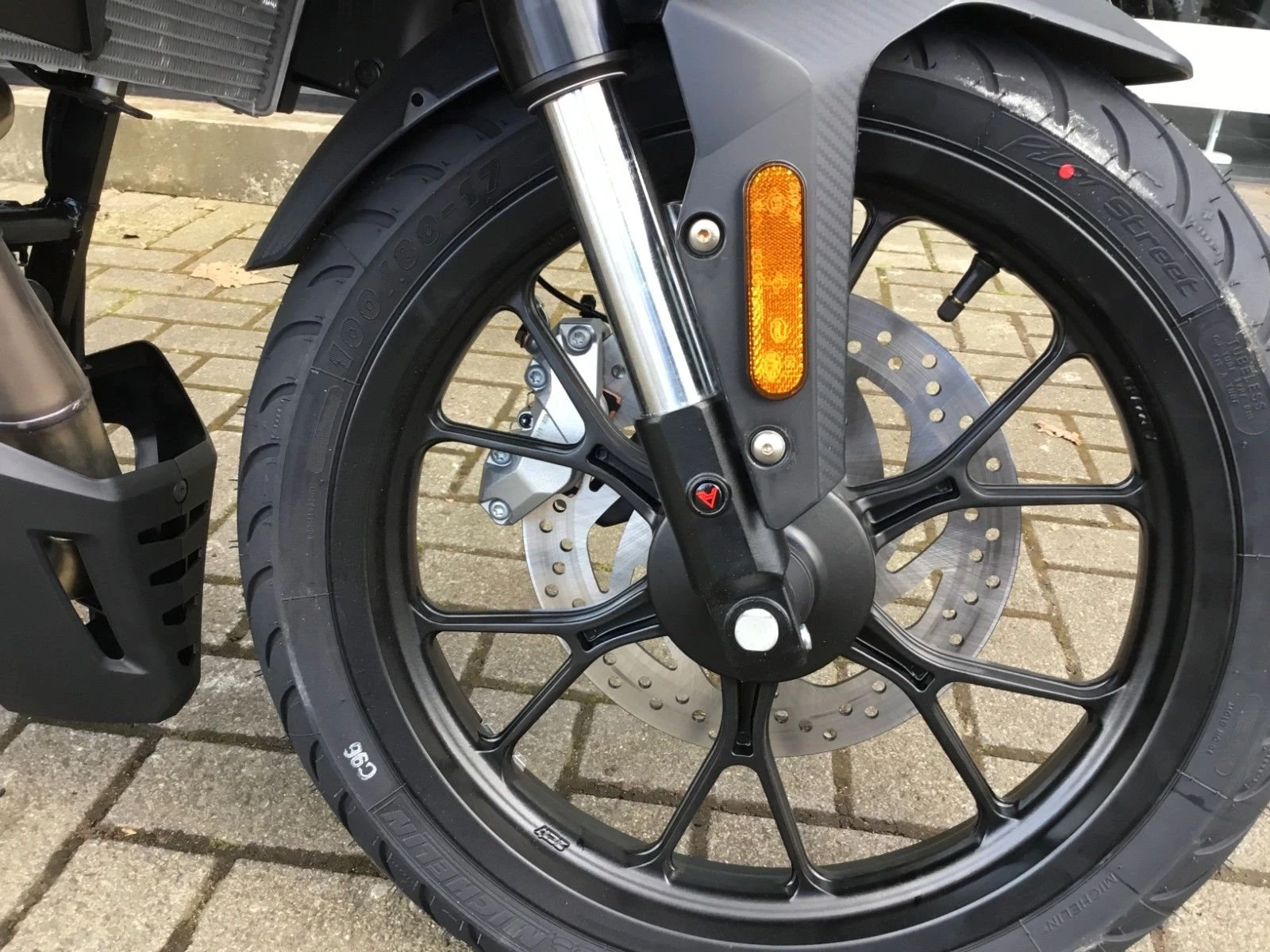 - Elektrisierendes Fahrgefühl Die Aprilia Tuono 125 sorgt für sofortigen Vortrieb - dank des flüssigkeitsgekühlten Euro-5+-Einzylindermotors mit Vierventiltechnik, der 11 kW bei 10.500 U/min und 11,4 Nm bei 8.500 U/min liefert. Die Motorleistung trifft auf ein präzises Bremssystem mit Zweikanal-ABS - entwickelt in Zusammenarbeit mit Bosch - sowie eine (abschaltbare) Traktionskontrolle, das für maximale Sicherheit und Stabilität sorgt. Für noch schnellere Gangwechsel ist die Tuono 125 bereits für den optionalen elektronischen Quickshifter vorbereitet.