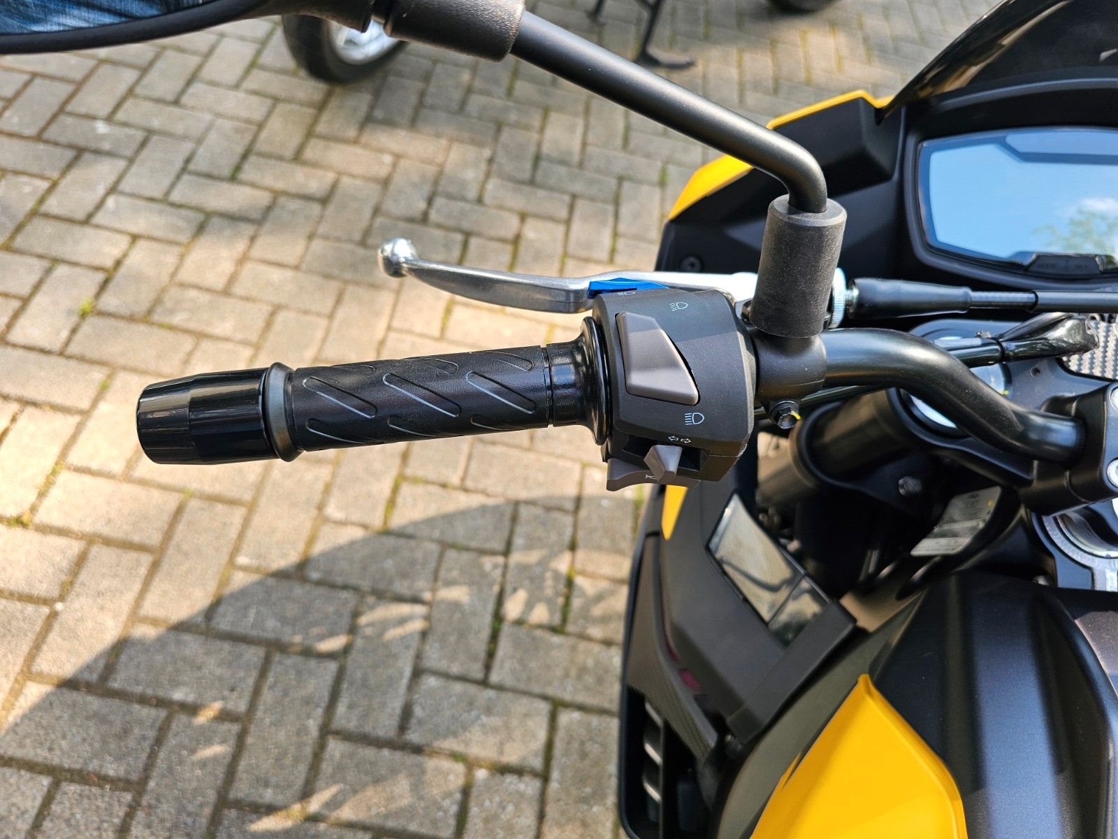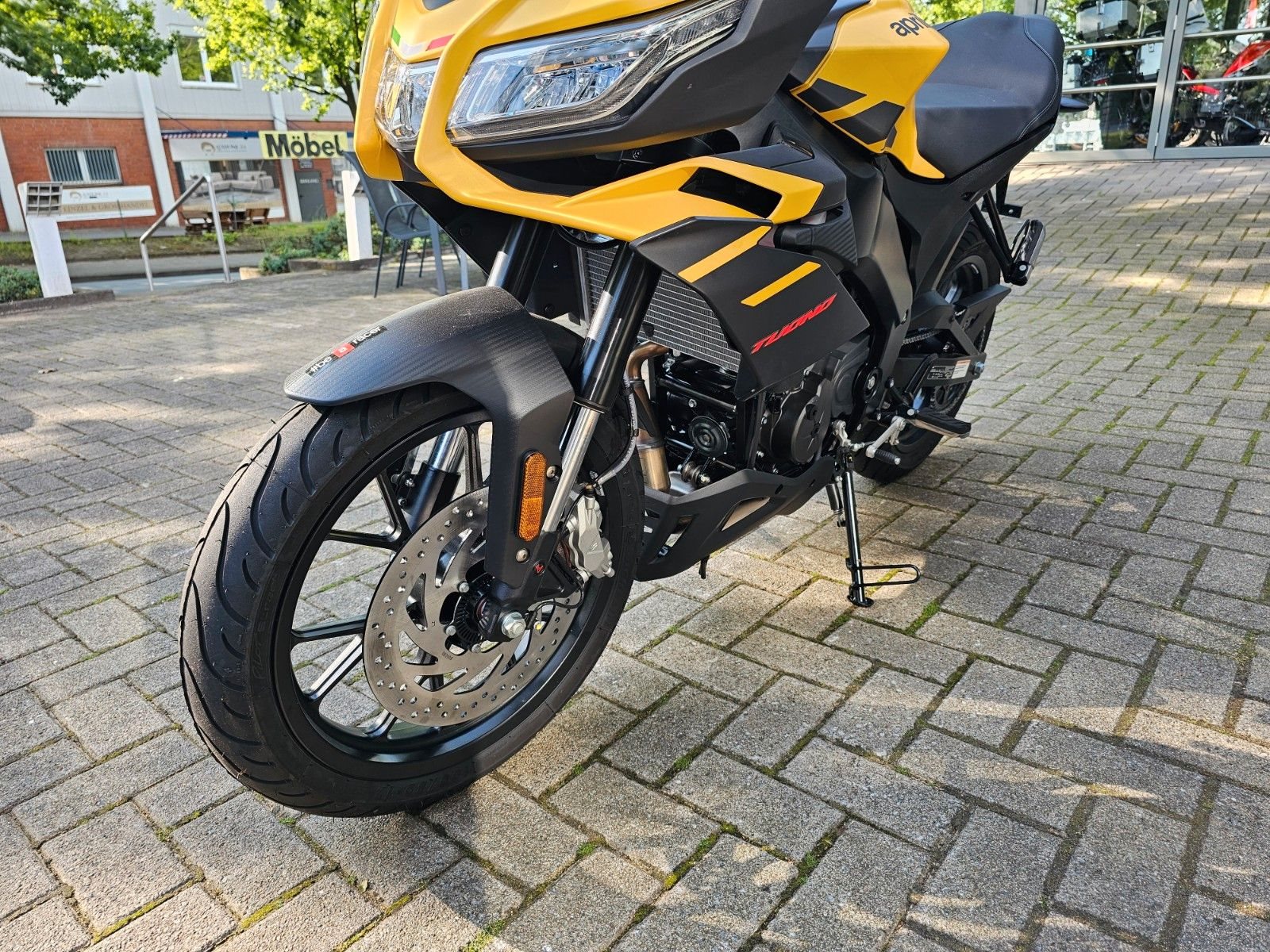- Elektrisierendes Fahrgefühl Die Aprilia Tuono 125 sorgt für sofortigen Vortrieb - dank des flüssigkeitsgekühlten Euro-5+-Einzylindermotors mit Vierventiltechnik, der 11 kW bei 10.500 U/min und 11,4 Nm bei 8.500 U/min liefert. Die Motorleistung trifft auf ein präzises Bremssystem mit Zweikanal-ABS - entwickelt in Zusammenarbeit mit Bosch - sowie eine (abschaltbare) Traktionskontrolle, das für maximale Sicherheit und Stabilität sorgt. Für noch schnellere Gangwechsel ist die Tuono 125 bereits für den optionalen elektronischen Quickshifter vorbereitet.