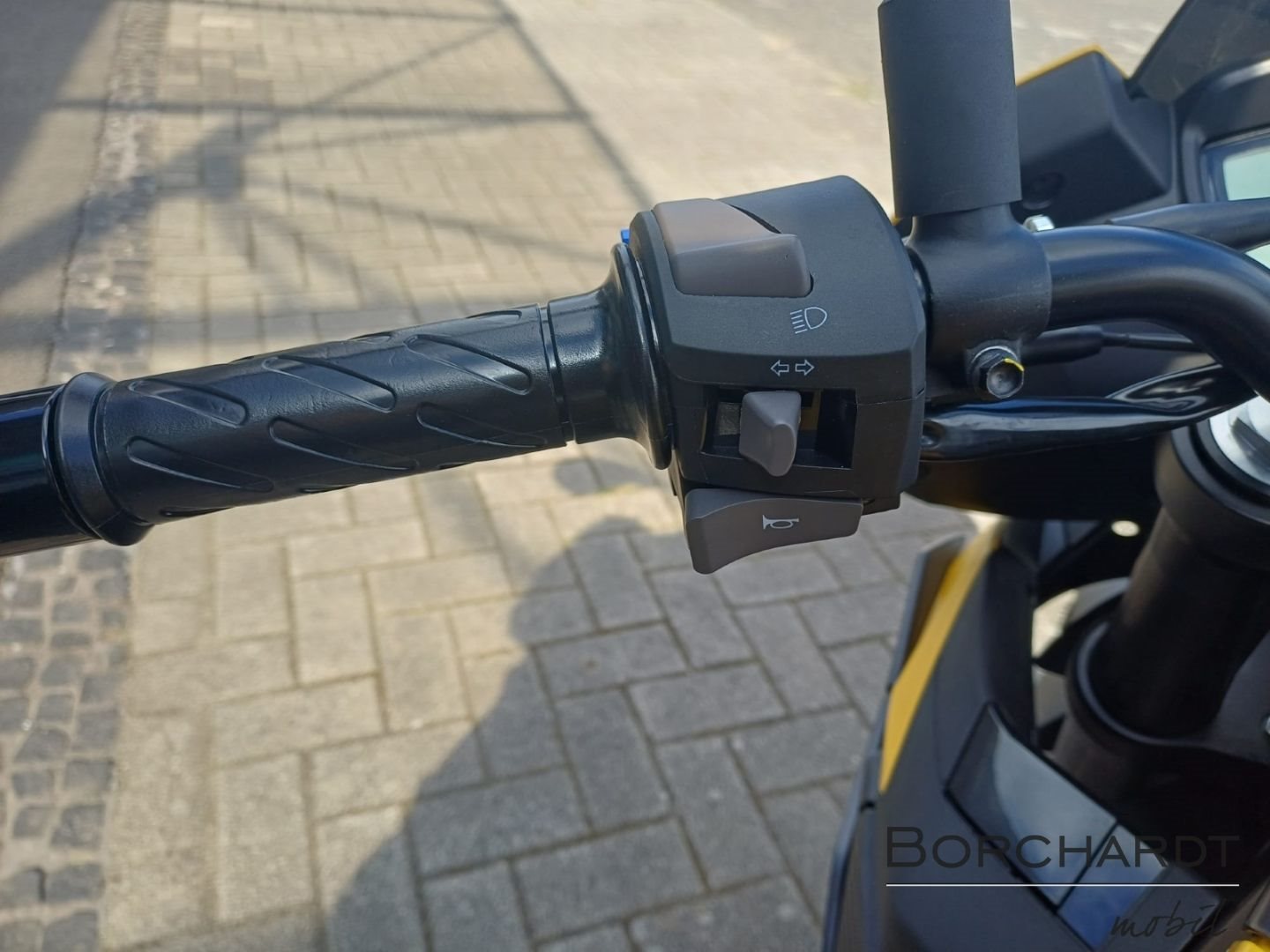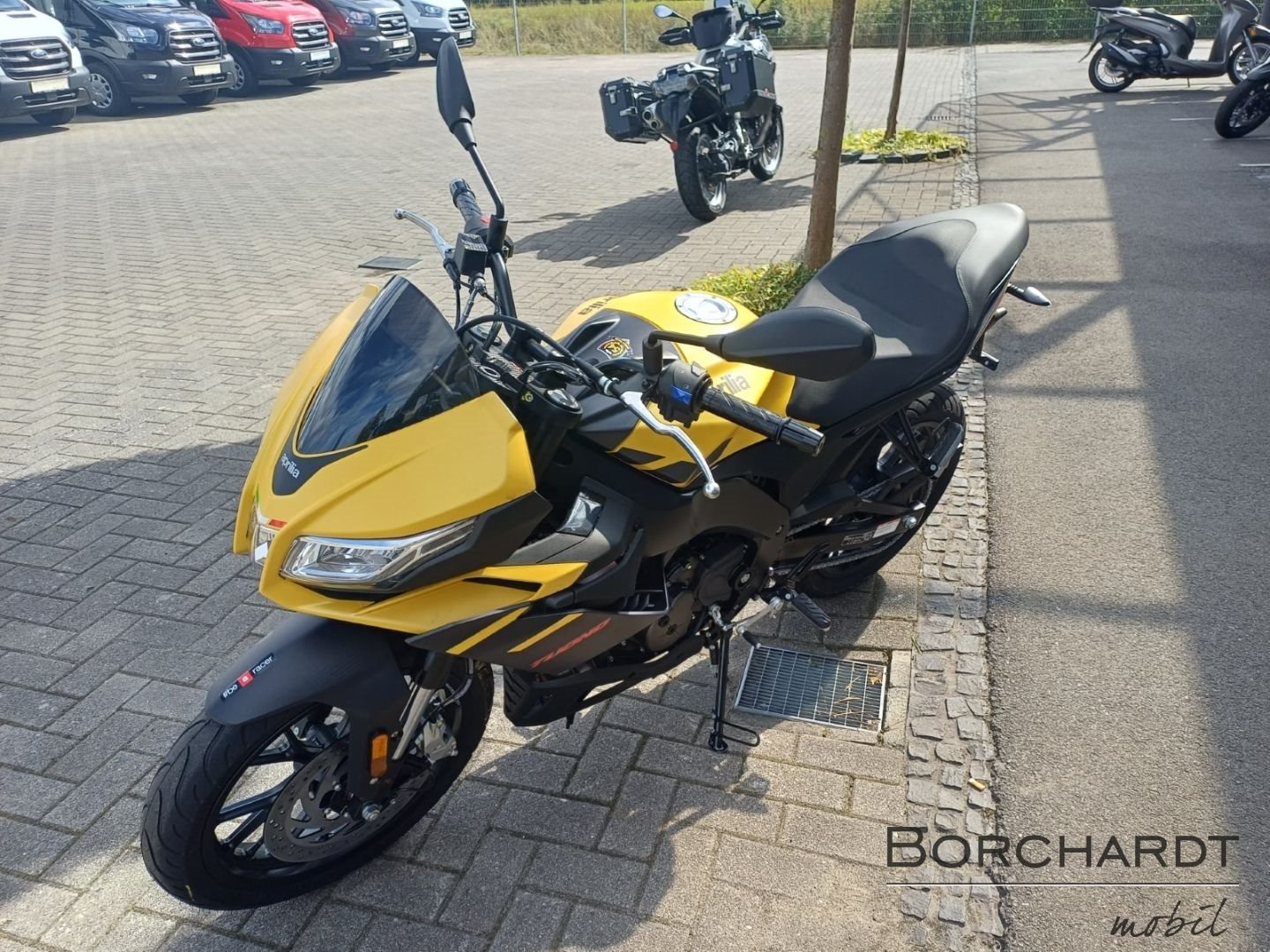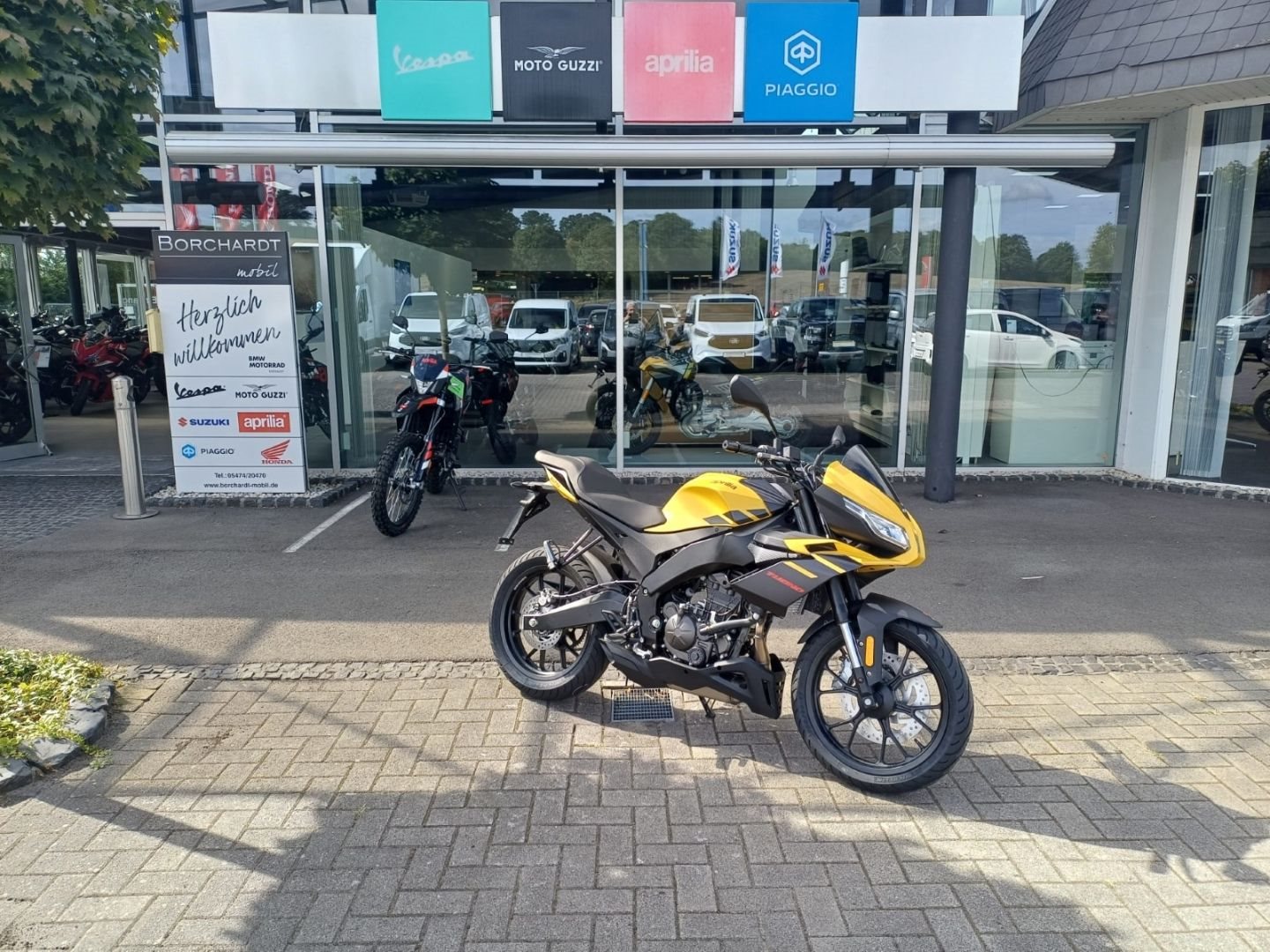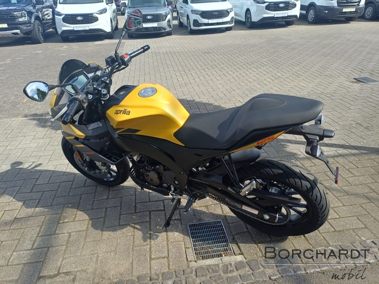 Leistung und KontrolleDynamisch, agil und leicht - die Tuono 125 teilt denselben Geist wie die hochklassigen Aprilia Modelle: serienmäßige (abschaltbare) Traktionskontrolle, Zweikanal-ABS von Bosch und ein flüssigkeitsgekühlter Einzylindermotor mit Vierventiltechnik. Dieser Euro-5+ konforme Motor ist bereit, junge Fahrer mit jeder Fahrt zu begeistern. Dank des großzügigen 14,5-Liter-Tanks überzeugt sie zudem mit hoher Reichweite und Effizienz.