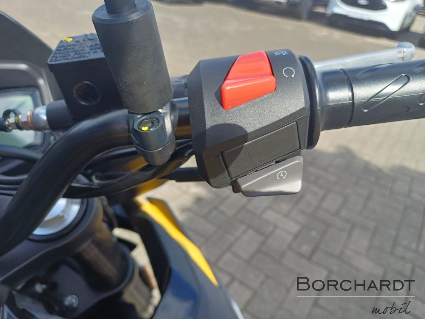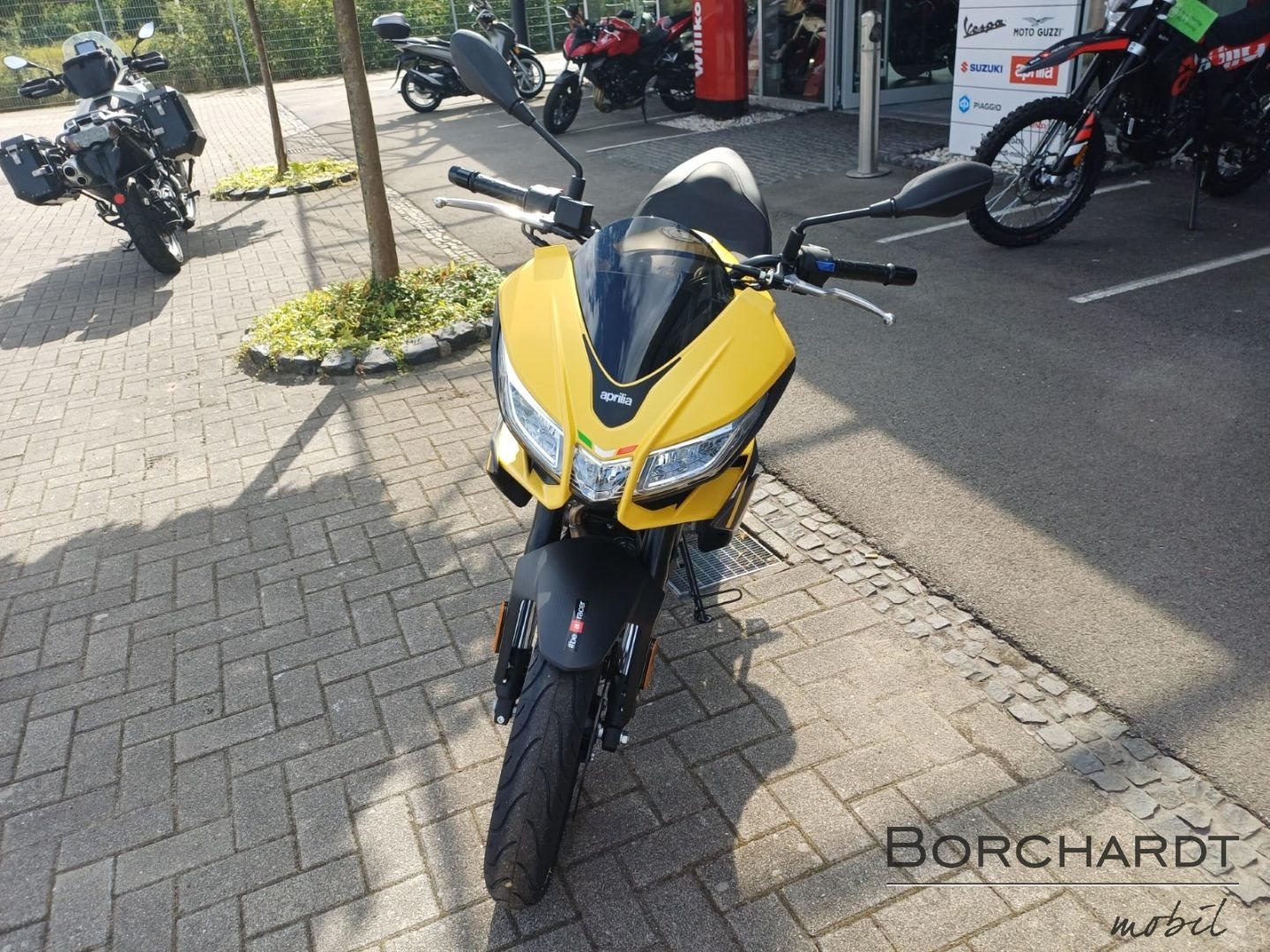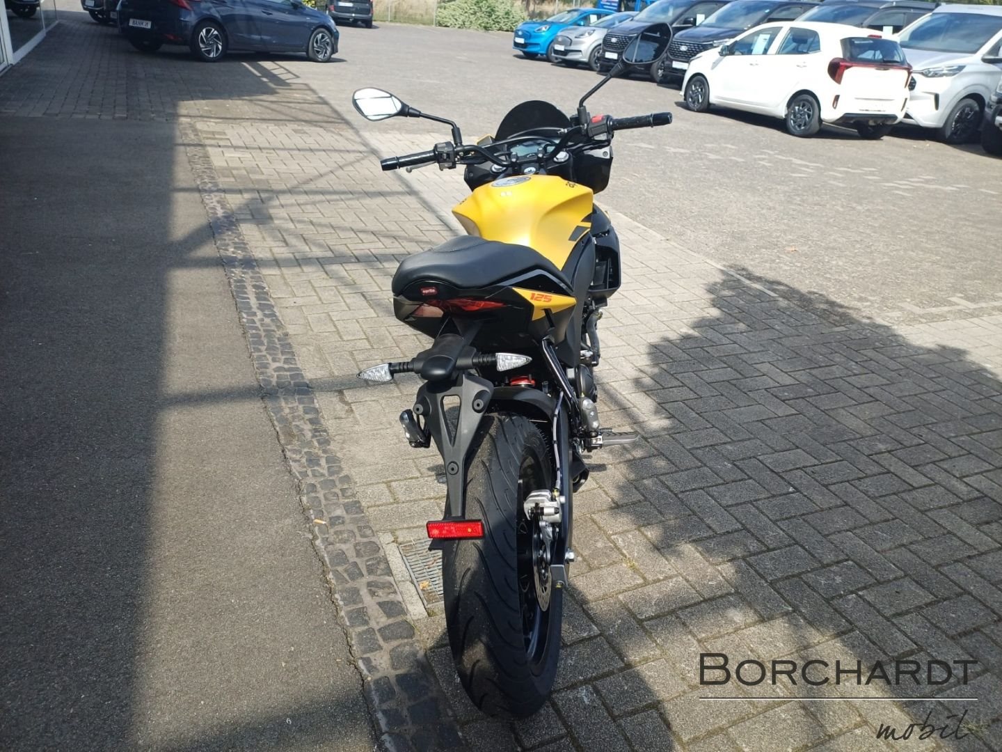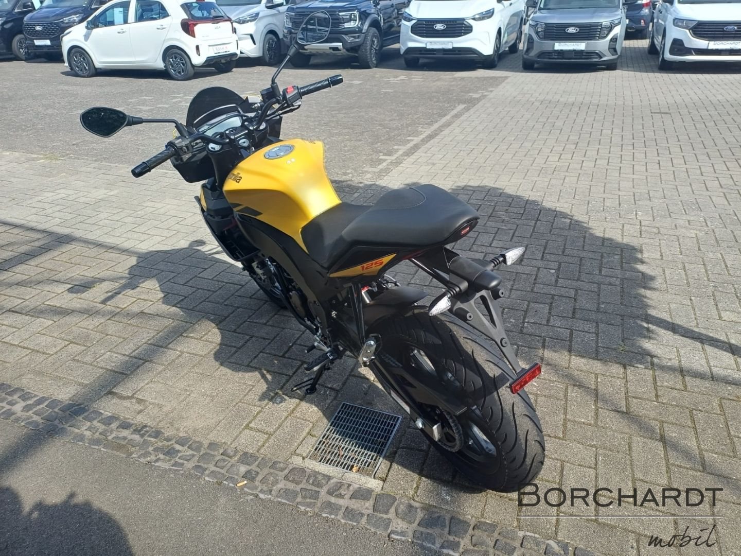 Leistung und KontrolleDynamisch, agil und leicht - die Tuono 125 teilt denselben Geist wie die hochklassigen Aprilia Modelle: serienmäßige (abschaltbare) Traktionskontrolle, Zweikanal-ABS von Bosch und ein flüssigkeitsgekühlter Einzylindermotor mit Vierventiltechnik. Dieser Euro-5+ konforme Motor ist bereit, junge Fahrer mit jeder Fahrt zu begeistern. Dank des großzügigen 14,5-Liter-Tanks überzeugt sie zudem mit hoher Reichweite und Effizienz.