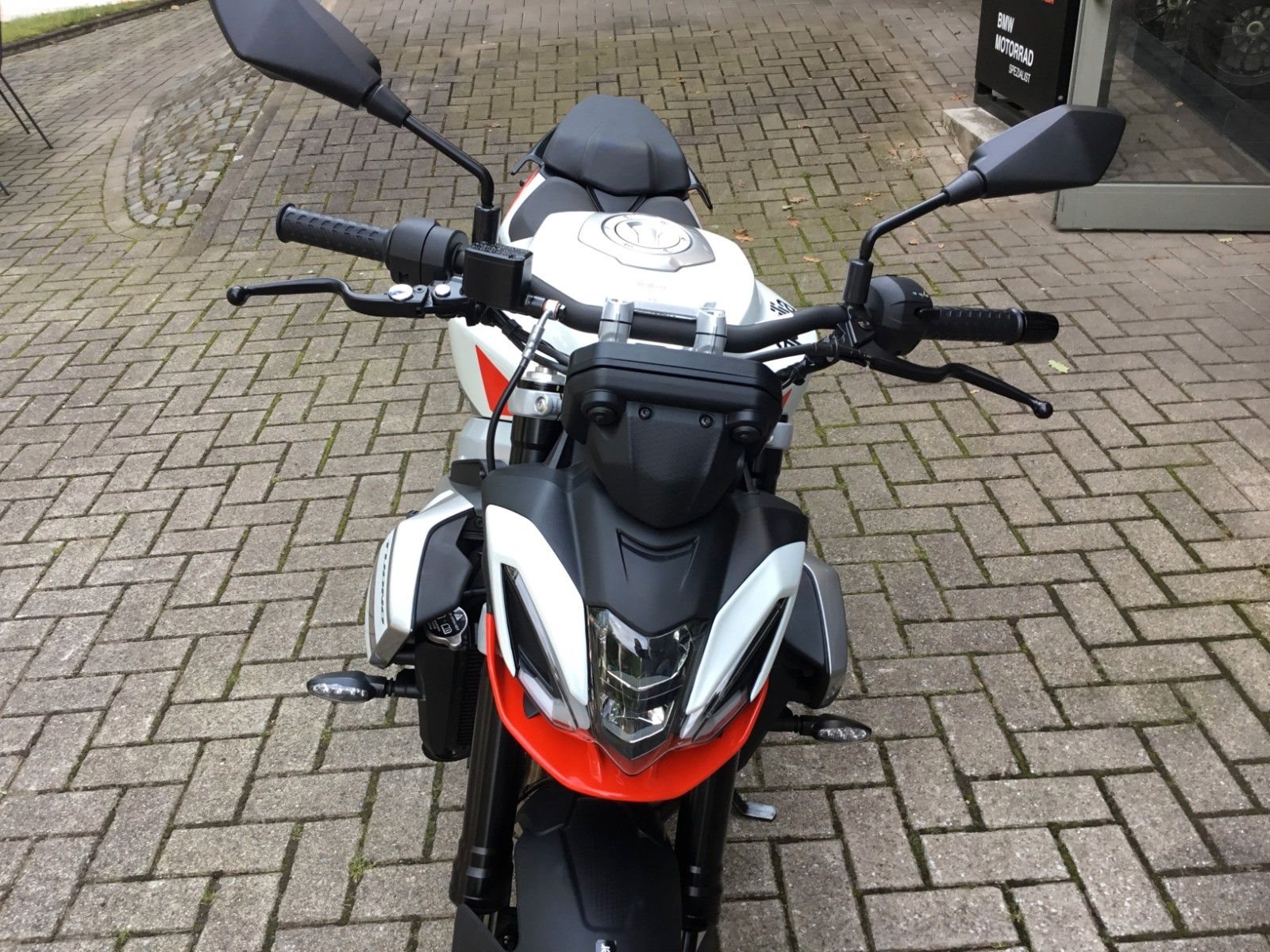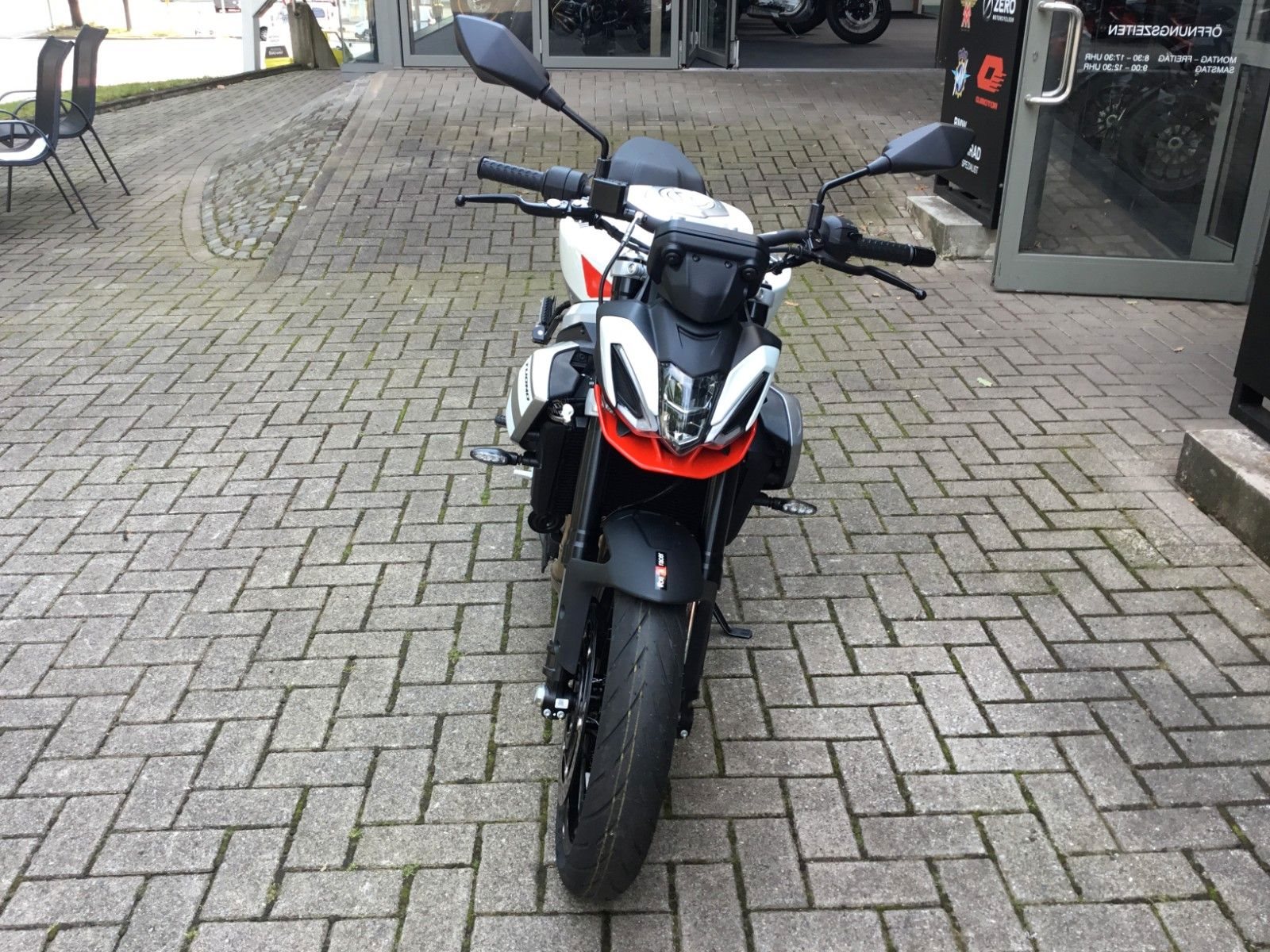 - Motor und Technologie, um Grenzen zu verschieben Die Aprilia Tuono 457 wird von einem modernen 457 cm3 Zweizylindermotor mit tragender Funktion angetrieben - ein echtes Technologiejuwel aus dem Hause Aprilia, bewusst offen sichtbar gelassen. Das hochmoderne, flüssigkeitsgekühlte Triebwerk liefert eine maximale Leistung von 35 kW (47,6 PS) bei 9.400 U/min - das Maximum, das mit A2-Führerschein gefahren werden darf. Rekordverdächtige Performance für einen Parallel-Twin dieser Hubraumklasse, unterstützt durch Premium-Elektronik mit Ride-by-Wire und drei Riding Modes (ECO, SPORT und RAIN), die Leistung, Drehmoment und Traktionskontrolle optimieren - letztere ist sogar während der Fahrt in drei Stufen einstellbar.