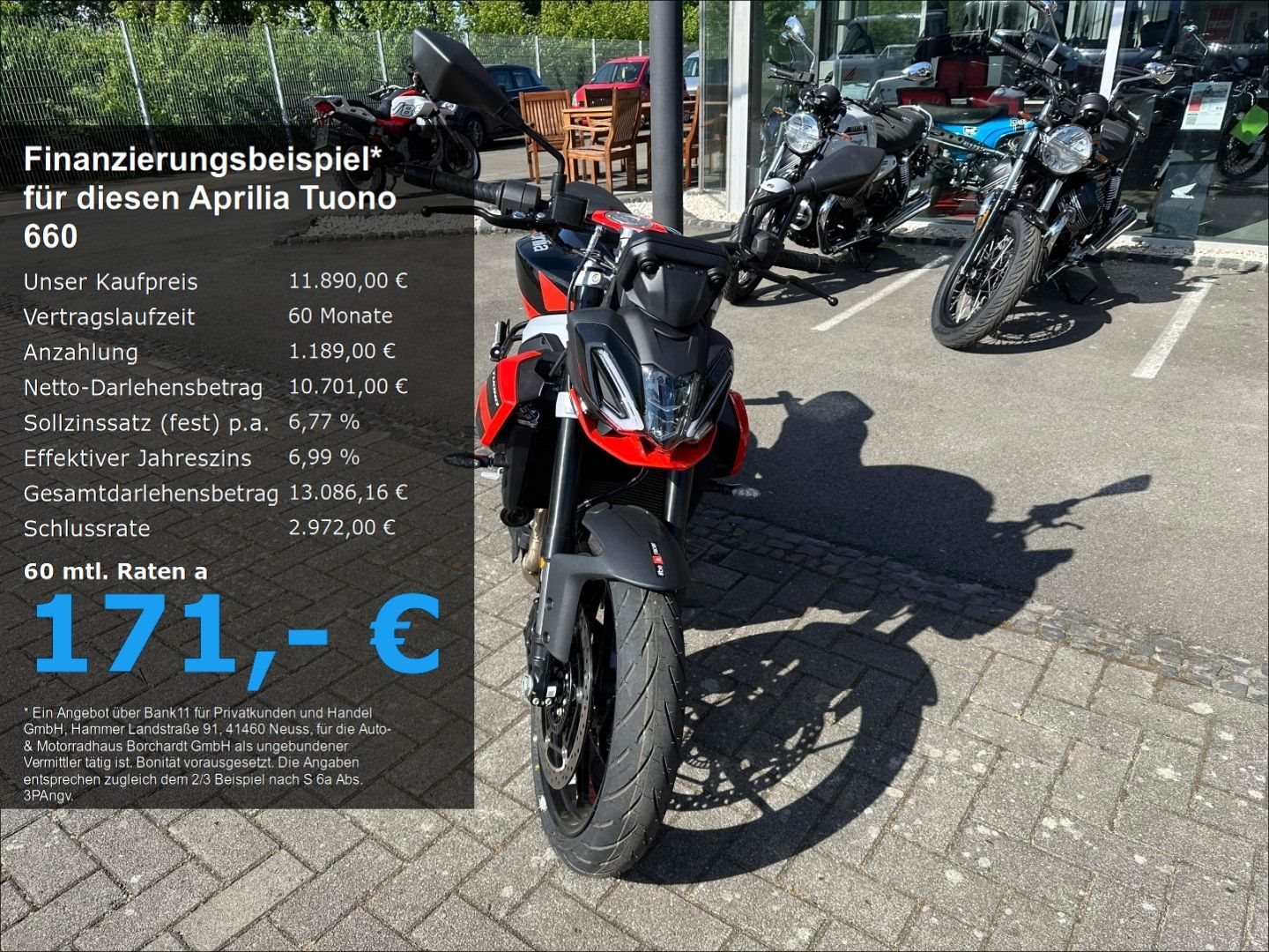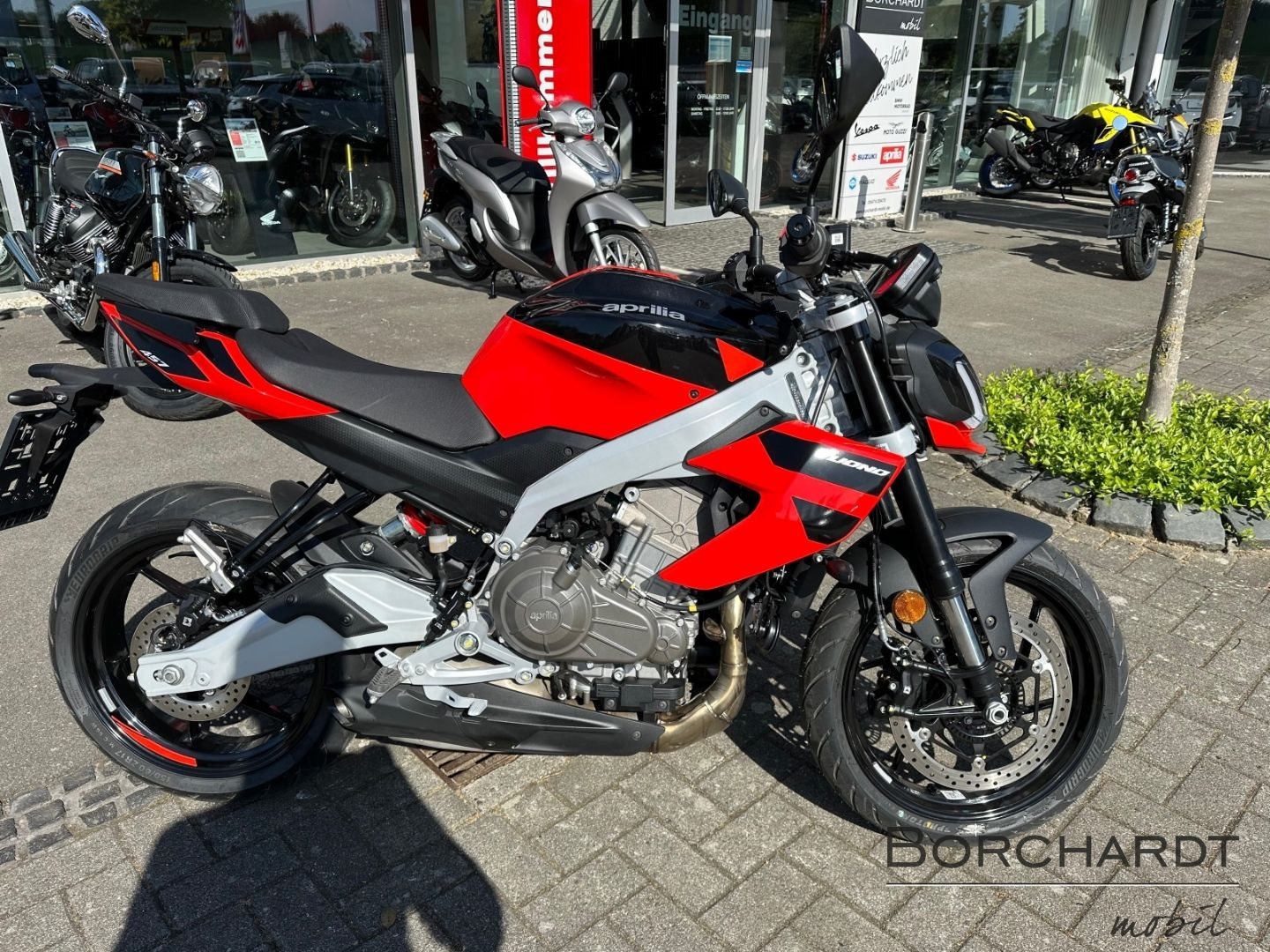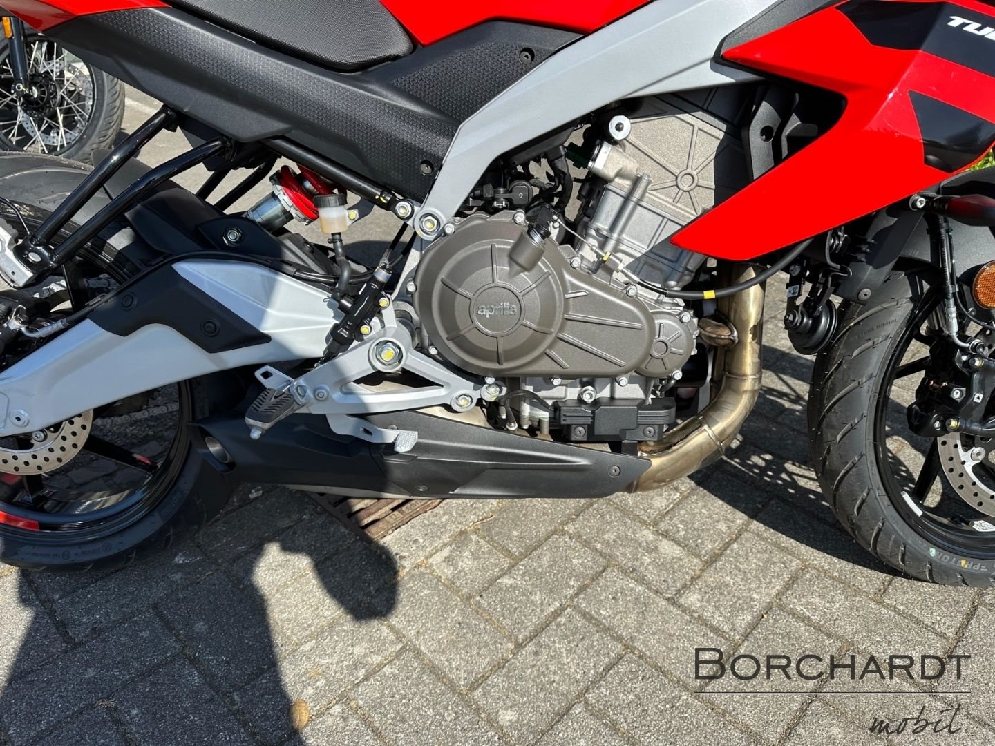 - Änderungen, Zwischenverkauf und Irrtümer vorbehalten. Der Tuono Fahrspaß, fortschrittliche Technologie und ein aggressiver Look. Nur zu, erfreu deine Augen und genieß ein Motorrad, das gleichermaßen aggressiv und funktional ist. Die Tuono 660 Factory zeichnet sich durch ihre ausgefeilte Aerodynamik aus, die ihr Stabilität bei hoher Geschwindigkeit verleiht und optimalen Schutz vor dem Fahrtwind bietet. Ihr Charakter wird durch kräftige Farben und Grafikelemente betont, während ein überraschender Kontrast zwischen matten und glänzenden Oberflächen ihren sportlichen Charakter und ihre Silhouette hervorhebt.