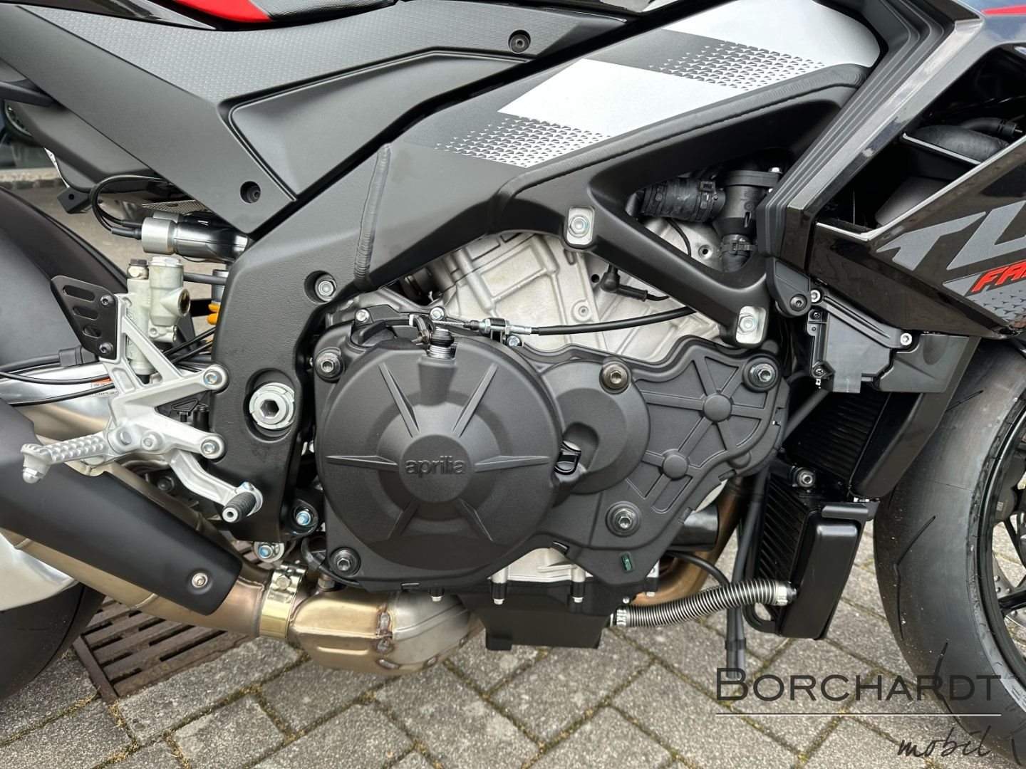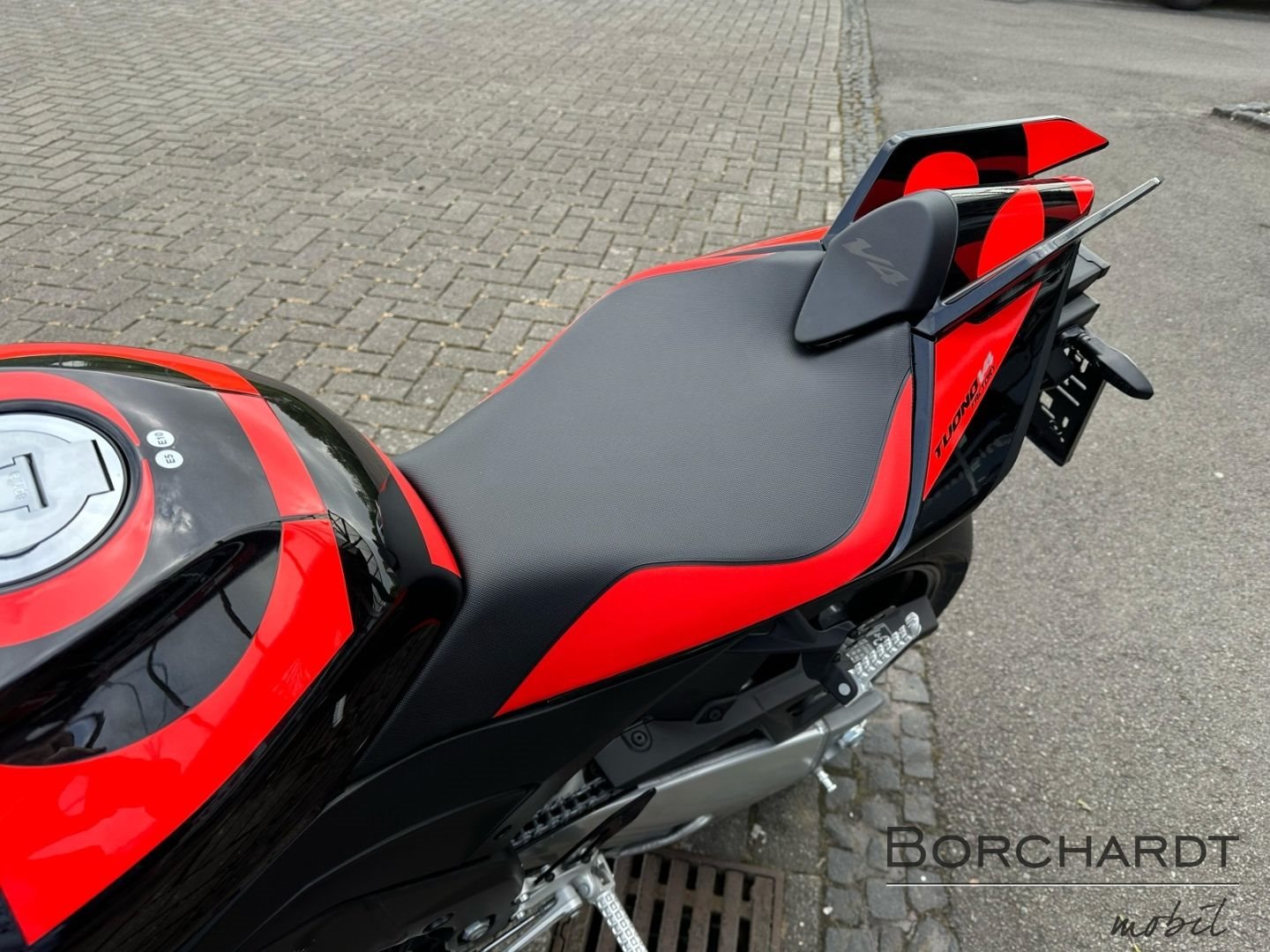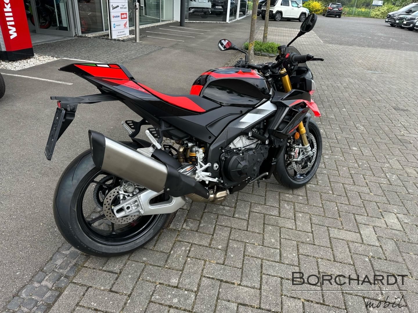 - Änderungen, Zwischenverkauf und Irrtümer vorbehalten. Die Aprilia Tuono V4 ist das unverwechselbare Hyper-Naked-Bike, eine Maschine, die Rennsport-Performance in pure Adrenalinausschüttung verwandelt. Sie zeigt sich frech auf der Straße und unschlagbar auf der Rennstrecke. Mit ihrem aggressiven Design, dem 180 PS starken V4-Motor mit E5+, aerodynamischen Winglets für verbesserte Stabilität und einem a-PRC-Elektronikpaket mit prädiktiver Logik passt sie sich deinem Fahrstil an und bietet ein kompromissloses Fahrerlebnis.