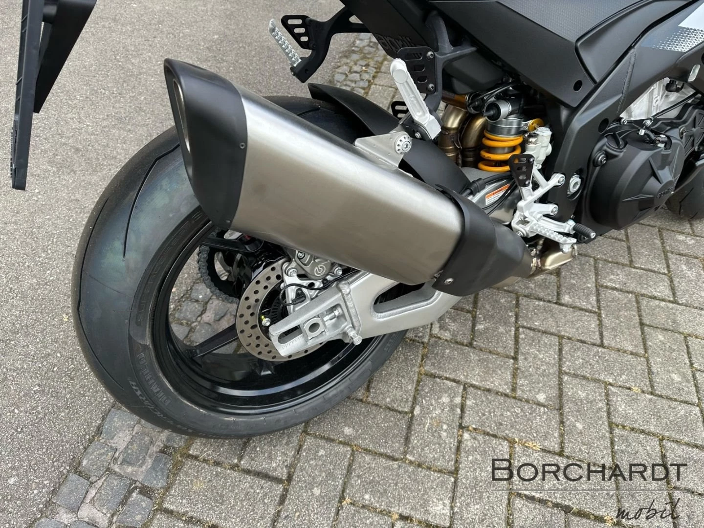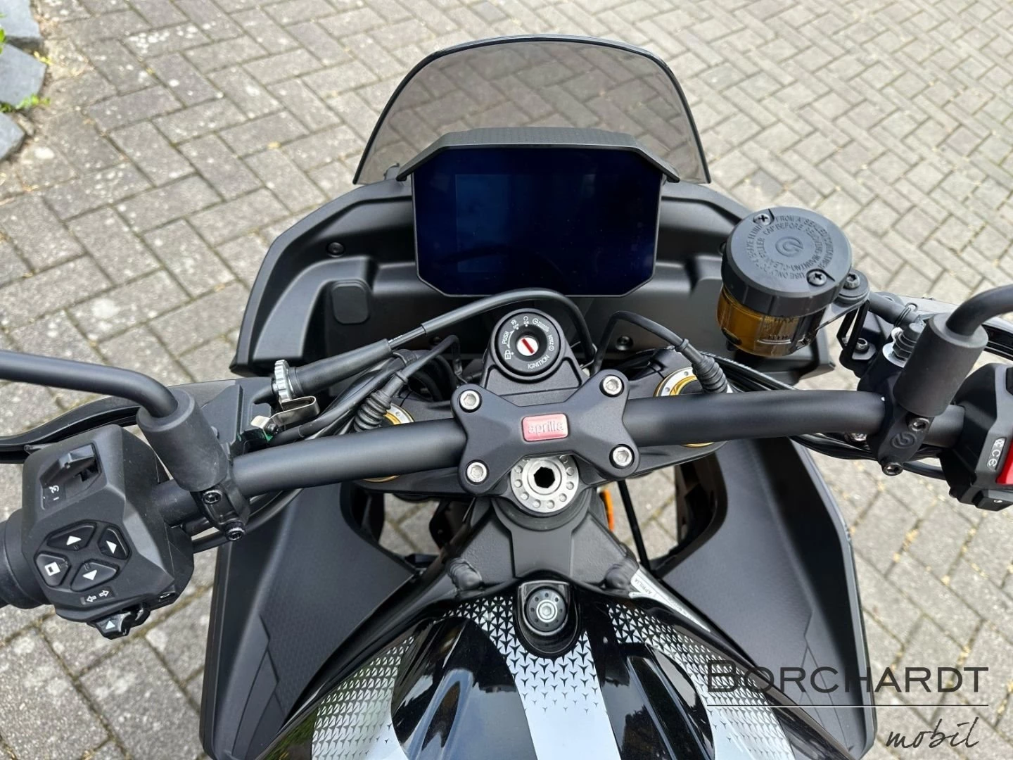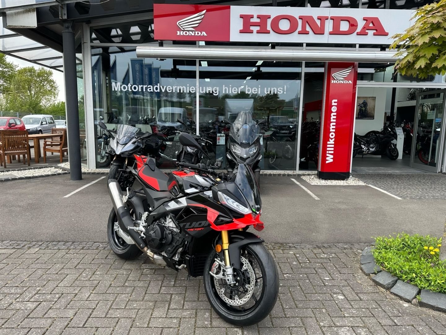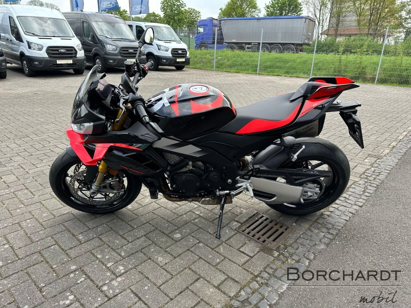- Änderungen, Zwischenverkauf und Irrtümer vorbehalten. Die Aprilia Tuono V4 ist das unverwechselbare Hyper-Naked-Bike, eine Maschine, die Rennsport-Performance in pure Adrenalinausschüttung verwandelt. Sie zeigt sich frech auf der Straße und unschlagbar auf der Rennstrecke. Mit ihrem aggressiven Design, dem 180 PS starken V4-Motor mit E5+, aerodynamischen Winglets für verbesserte Stabilität und einem a-PRC-Elektronikpaket mit prädiktiver Logik passt sie sich deinem Fahrstil an und bietet ein kompromissloses Fahrerlebnis.