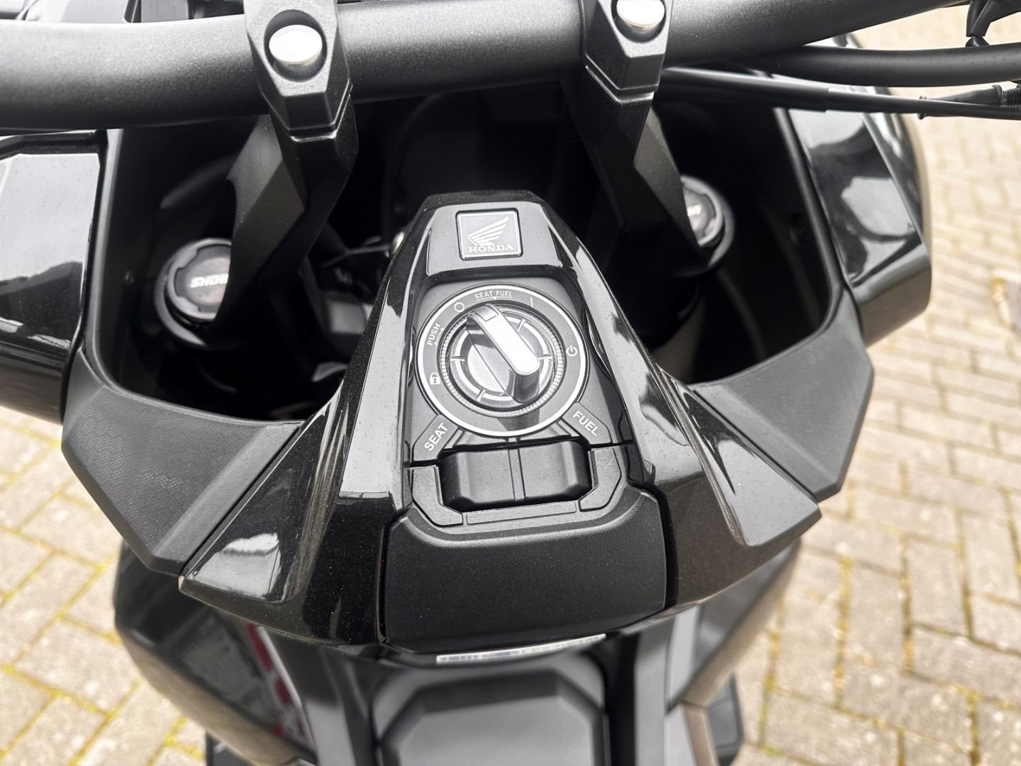 Kann es losgehen? Stecke einfach den Smart Key, mit dem sich die Zündung einschalten und das Staufach unter dem Sitz öffnen lassen, in die Tasche und fahre los. Der Schlüssel steuert auch das (auf Wunsch erhältliche) Smart Top Case: Wenn du dich in seiner Nähe aufhältst, ist es offen, und wenn du weggehst, wird es verriegelt. Selbstverständlich kannst du unterwegs in Kontakt bleiben. Das attraktive Negativ-LCD-Cockpit ist mit dem Honda RoadSync-System ausgestattet, das über die Honda RoadSync App eine Verbindung zu deinem AndroidT- oder iOST-Gerät herstellt, damit du Anrufe und Musik steuern kannst. Die gesamte Beleuchtung ist in LED-Technik ausgeführt - von den markanten Doppelscheinwerfern bis hin zum Notbremssignal (ESS), das nachfolgende Verkehrsteilnehmer durch Ein- und Ausschalten der hinteren Blinker bei Vollbremsungen warnt.