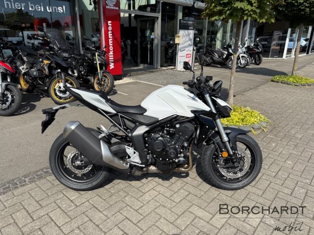 Die Hornet-Familie ist jetzt vollständig und unser Topmodell sticht heraus. Die neue CB1000 Hornet mit ihrem Vierzylindermotor ist ein erstklassiges Naked Bike, das den Asphalt zum Glühen bringt. Throttle By Wire sorgt für präzise Kontrolle, während das Fahrwerk mit der einstellbaren SHOWA 41mm SFF-BP Upside-Down-Gabel und dem Pro-Link-Federbein ausgestattet ist. Die unverfälschte, aggressive Streetfighter-Attitüde wird durch einen markanten LED-Doppelscheinwerfer unterstrichen. Das 5-Zoll TFT-Farbdisplay und die Honda RoadSync-Konnektivität sorgen für die nötigen Informationen. Kann es losgehen?