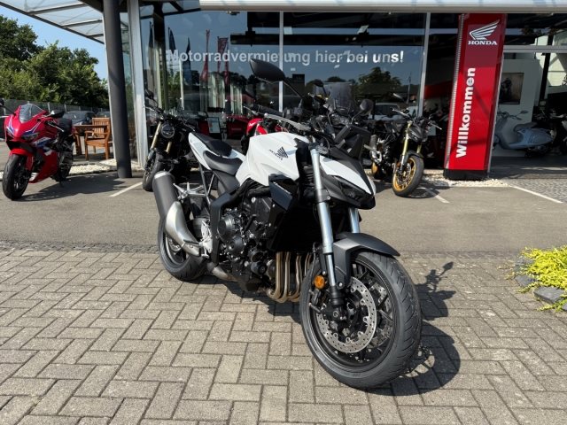 Die Hornet-Familie ist jetzt vollständig und unser Topmodell sticht heraus. Die neue CB1000 Hornet mit ihrem Vierzylindermotor ist ein erstklassiges Naked Bike, das den Asphalt zum Glühen bringt. Throttle By Wire sorgt für präzise Kontrolle, während das Fahrwerk mit der einstellbaren SHOWA 41mm SFF-BP Upside-Down-Gabel und dem Pro-Link-Federbein ausgestattet ist. Die unverfälschte, aggressive Streetfighter-Attitüde wird durch einen markanten LED-Doppelscheinwerfer unterstrichen. Das 5-Zoll TFT-Farbdisplay und die Honda RoadSync-Konnektivität sorgen für die nötigen Informationen. Kann es losgehen?