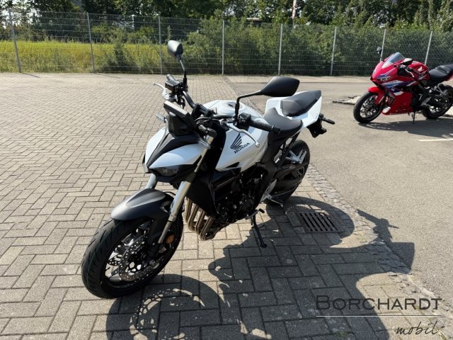 Die Hornet-Familie ist jetzt vollständig und unser Topmodell sticht heraus. Die neue CB1000 Hornet mit ihrem Vierzylindermotor ist ein erstklassiges Naked Bike, das den Asphalt zum Glühen bringt. Throttle By Wire sorgt für präzise Kontrolle, während das Fahrwerk mit der einstellbaren SHOWA 41mm SFF-BP Upside-Down-Gabel und dem Pro-Link-Federbein ausgestattet ist. Die unverfälschte, aggressive Streetfighter-Attitüde wird durch einen markanten LED-Doppelscheinwerfer unterstrichen. Das 5-Zoll TFT-Farbdisplay und die Honda RoadSync-Konnektivität sorgen für die nötigen Informationen. Kann es losgehen?