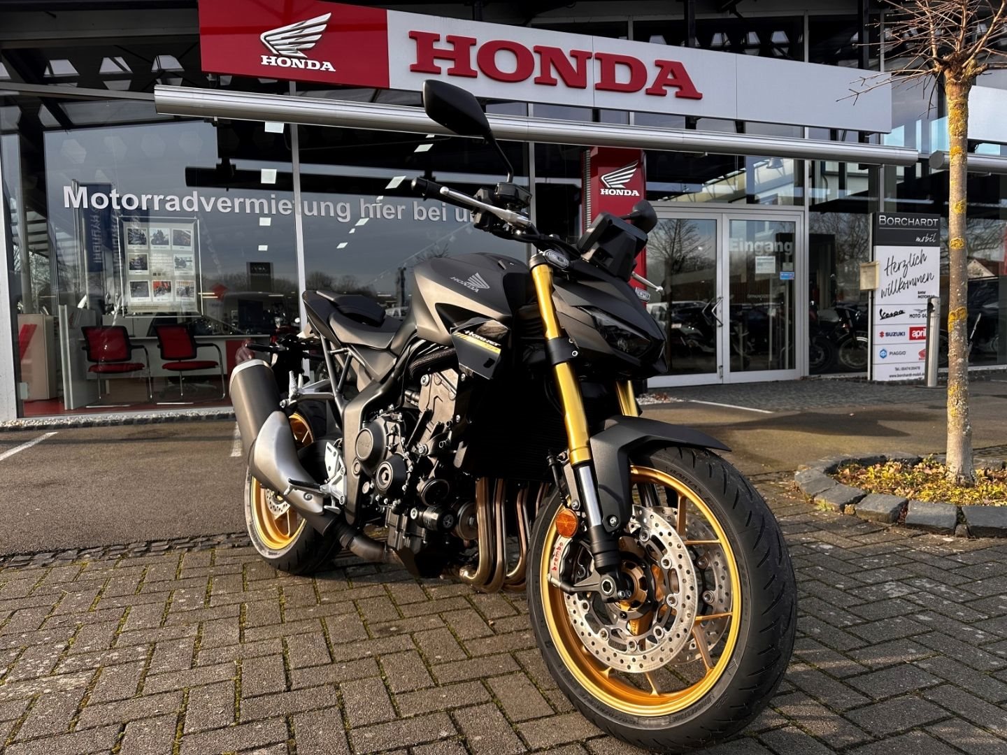 Die Hornet-Familie ist jetzt vollständig und unser Topmodell sticht heraus. Die neue CB1000 Hornet mit ihrem Vierzylindermotor ist ein erstklassiges Naked Bike, das den Asphalt zum Glühen bringt. Throttle By Wire sorgt für präzise Kontrolle, während das Fahrwerk mit der einstellbaren SHOWA 41mm SFF-BP Upside-Down-Gabel und dem Pro-Link-Federbein ausgestattet ist. Die unverfälschte, aggressive Streetfighter-Attitüde wird durch einen markanten LED-Doppelscheinwerfer unterstrichen. Das 5-Zoll TFT-Farbdisplay und die Honda RoadSync-Konnektivität sorgen für die nötigen Informationen. Kann es losgehen?