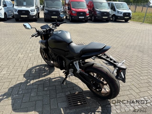 Du hast es in der Hand. Der DOHC-Vierzylinder-Reihenmotor leistet in der Spitze 70 kW (95,2 PS) der rote Bereich beginnt bei 12.000 U/min und bietet ein Drehmoment von 63 Nm. Honda Händler können das Bike für alle mit A2-Führerschein auf 35 kW drosseln und die Drosselung entfernen, sobald ein A-Führerschein vorgelegt werden kann. Da Leistung Kontrolle braucht, verhindert die Anti-Hopping-Kupplung das Blockieren des Hinterrads bei starkem Bremsen und Herunterschalten. Das Notbremssignal (ESS) wird bei Vollbremsungen aktiviert und sorgt so für bessere Sichtbarkeit auf der Straße.