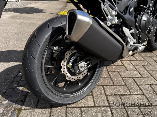 Die CB750 Hornet beeindruckt nicht zuletzt durch ihr Leistungsgewicht. Die CB750 Hornet ist mit einem Zweizylinder-Reihenmotor ausgestattet, bei dem die Strömungsoptimierung für eine höhere Ansaugleistung sorgt. Die Supersport-Zylinder zeichnen sich durch reduzierte Reibung aus. Dieser leistungsstarke Motor liefert eine Spitzenleistung von 67,5 kW bei 9.500 U/min und ein Drehmoment von 75 Nm bei 7.250 U/min, das schon im mittleren Drehzahlbereich für einen aufregenden Schub sorgt. Auch das Feeling und der Sound sind großartig, dank des charakteristischen Klangs im unteren Drehzahlbereich und eines aufregenden Auspuffsounds. Bei der Betätigung des Gasgriffs spürst du sofort das sanfte Ansprechverhalten beim Anfahren und dass die Fahrt bei niedrigen Geschwindigkeiten noch sanfter wird ganz ohne Leistungseinbußen. Ein derart starker Motor in einem so leichten Chassis bedeutet, dass für dich nur noch eins zu tun bleibt: festhalten und genießen!